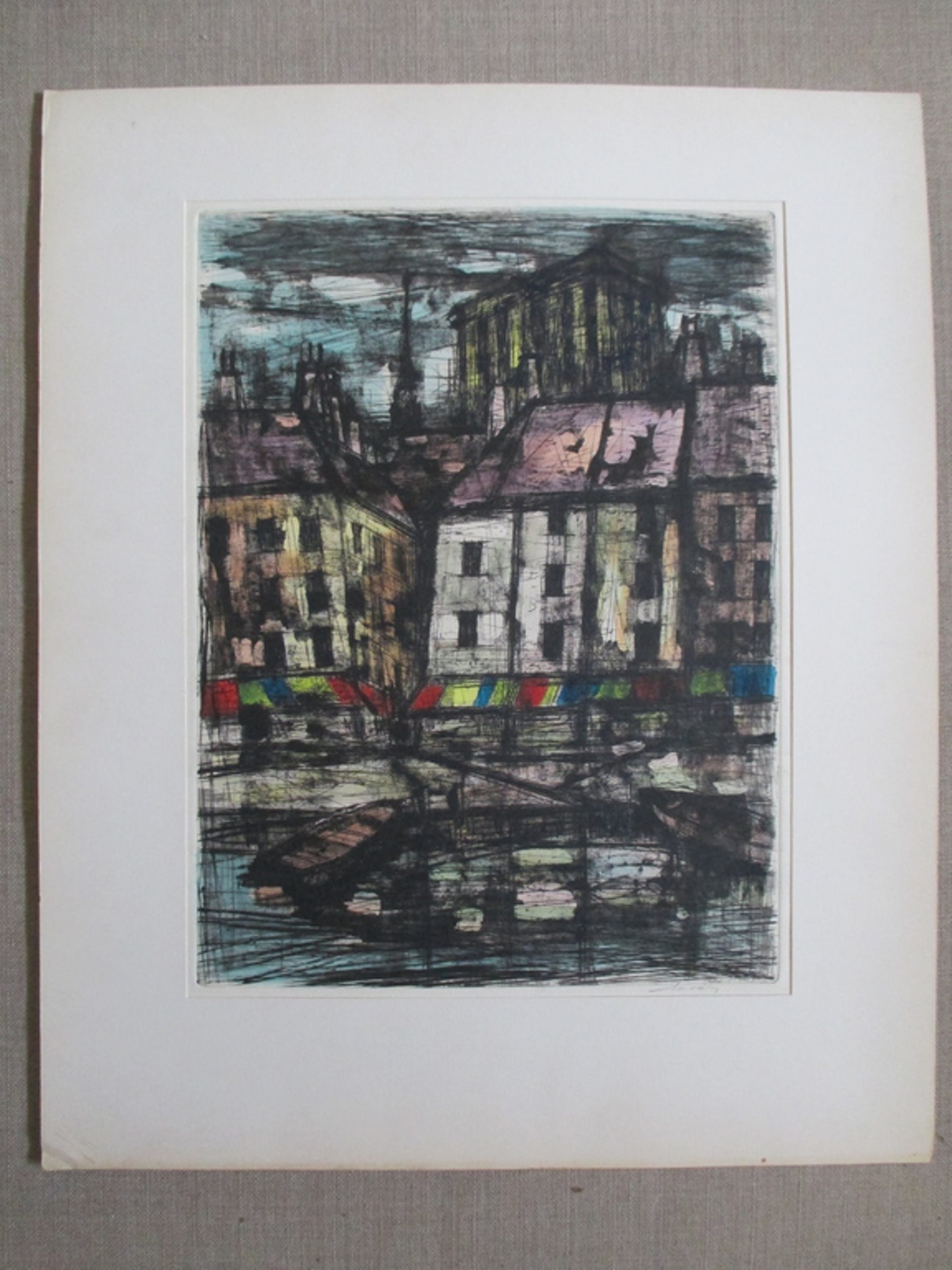Handgekleurde ets gedrukt op stevig geschept papier, r.o gesigneerd in potlood. Geplaatst in passepartout, afm. 46x56, blad 35x48 cm. Het blad is in uitstekende staat.
