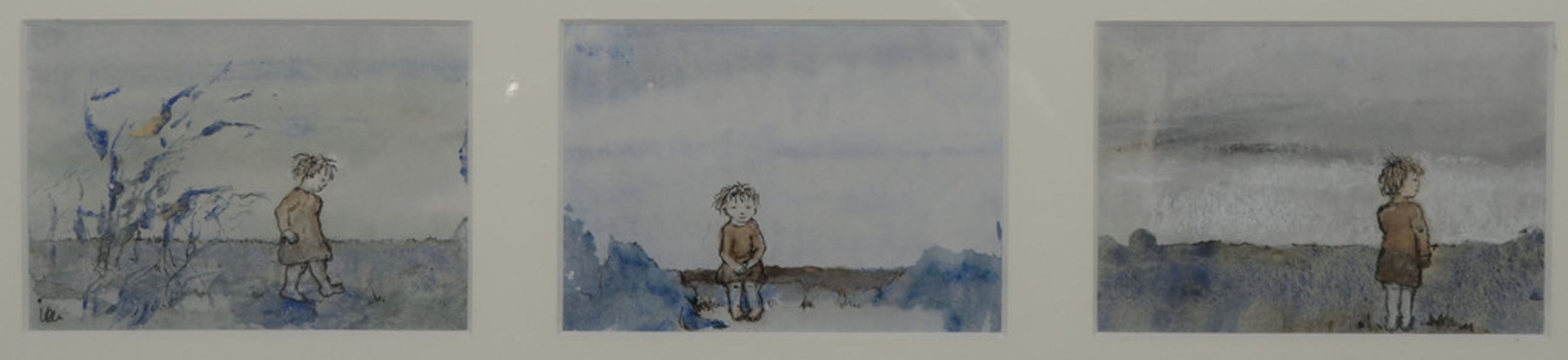 Lot met drie leuke aquarellen op papier van verschillende kunstenaars met voor ons een onbekende signatuur, waaronder: