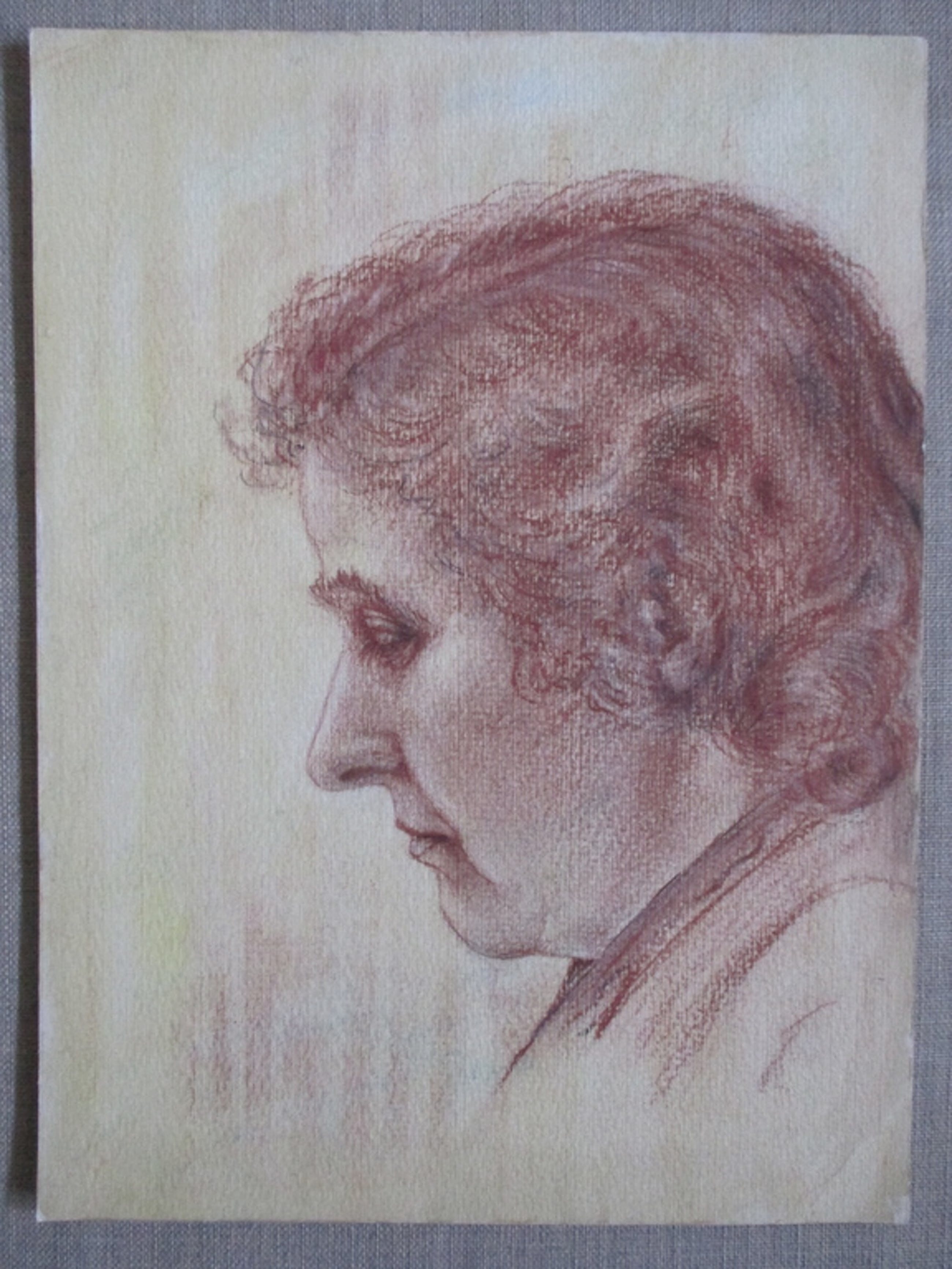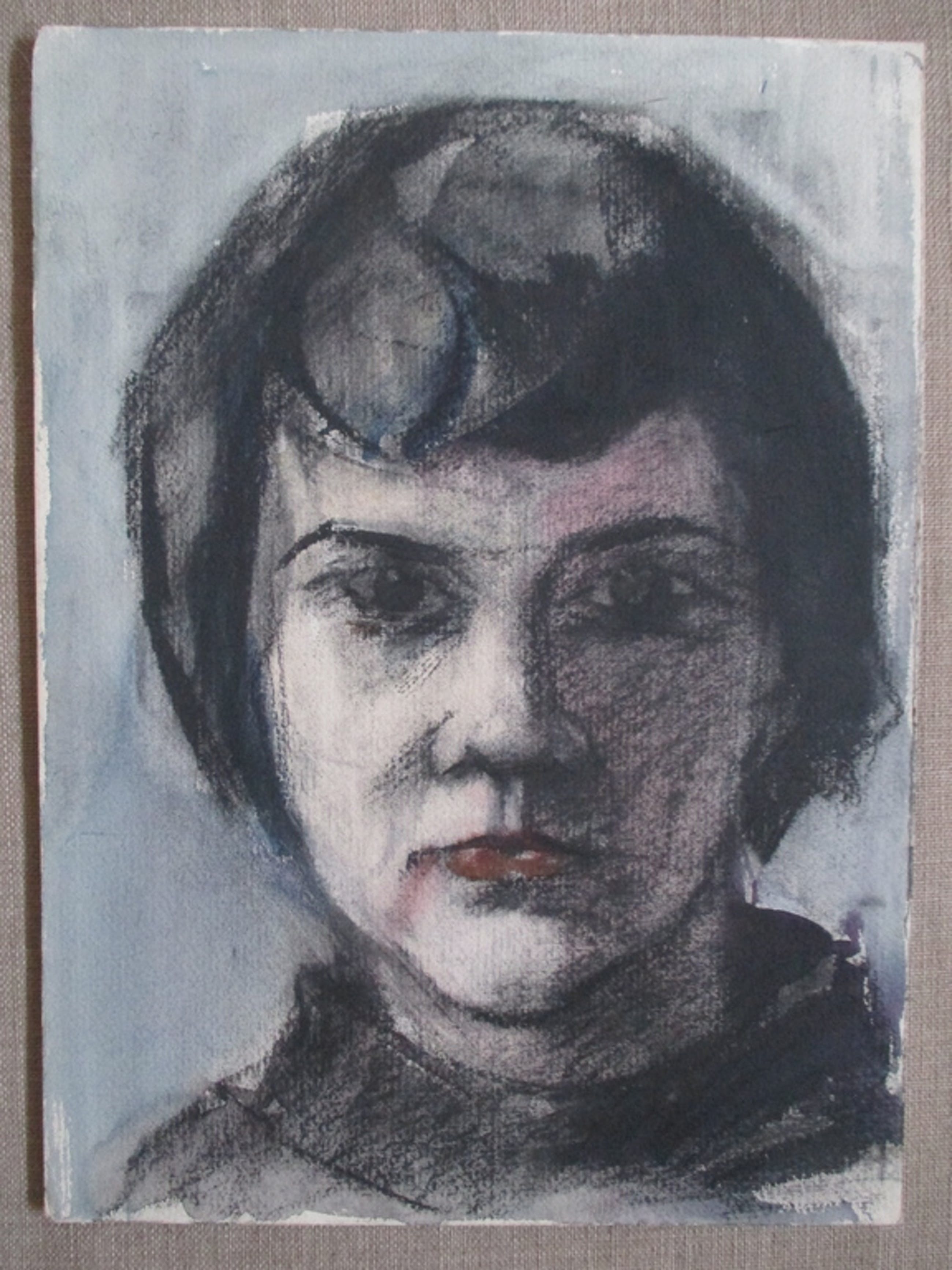 1. Krijttekening (vrouwsportret), ongesigneerd 27,7x37,5 cm, 2. aquarel (kan), r.b gesigneerd, 37x50,5 cm, 3. krijttekening(vrouwsportret)r.b gesigneerd 37,5x55,5 cm, 4. en 5. aquarel en gemengde techniek (meisjesportret) ongesigneerd 27,7x37,5 cm.