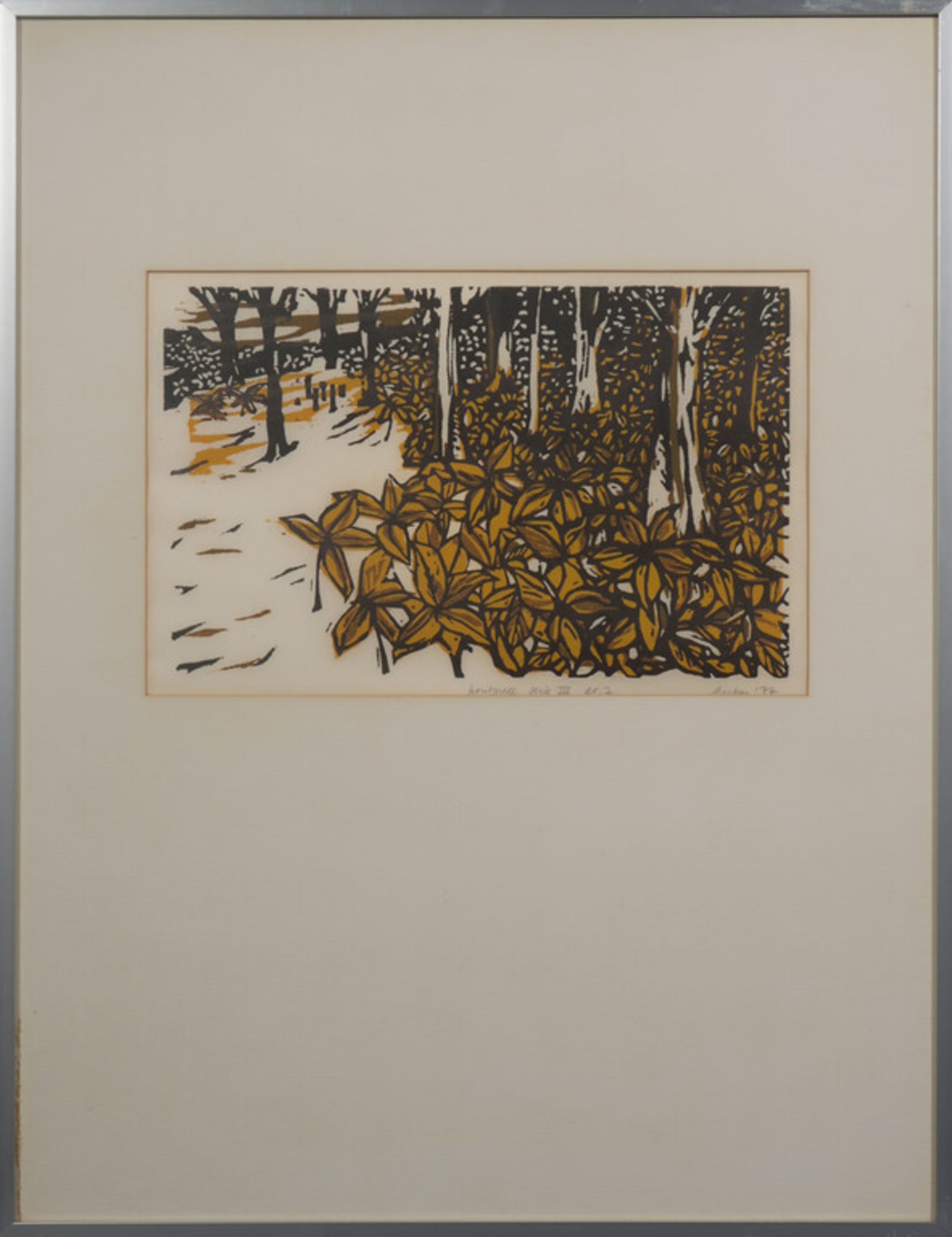 Conditie kunstwerk: In goede staat. Lichte vergeling in het blad zichtbaar. Langs de randen van het blad egaal vergeelde lijnen zichtbaar.