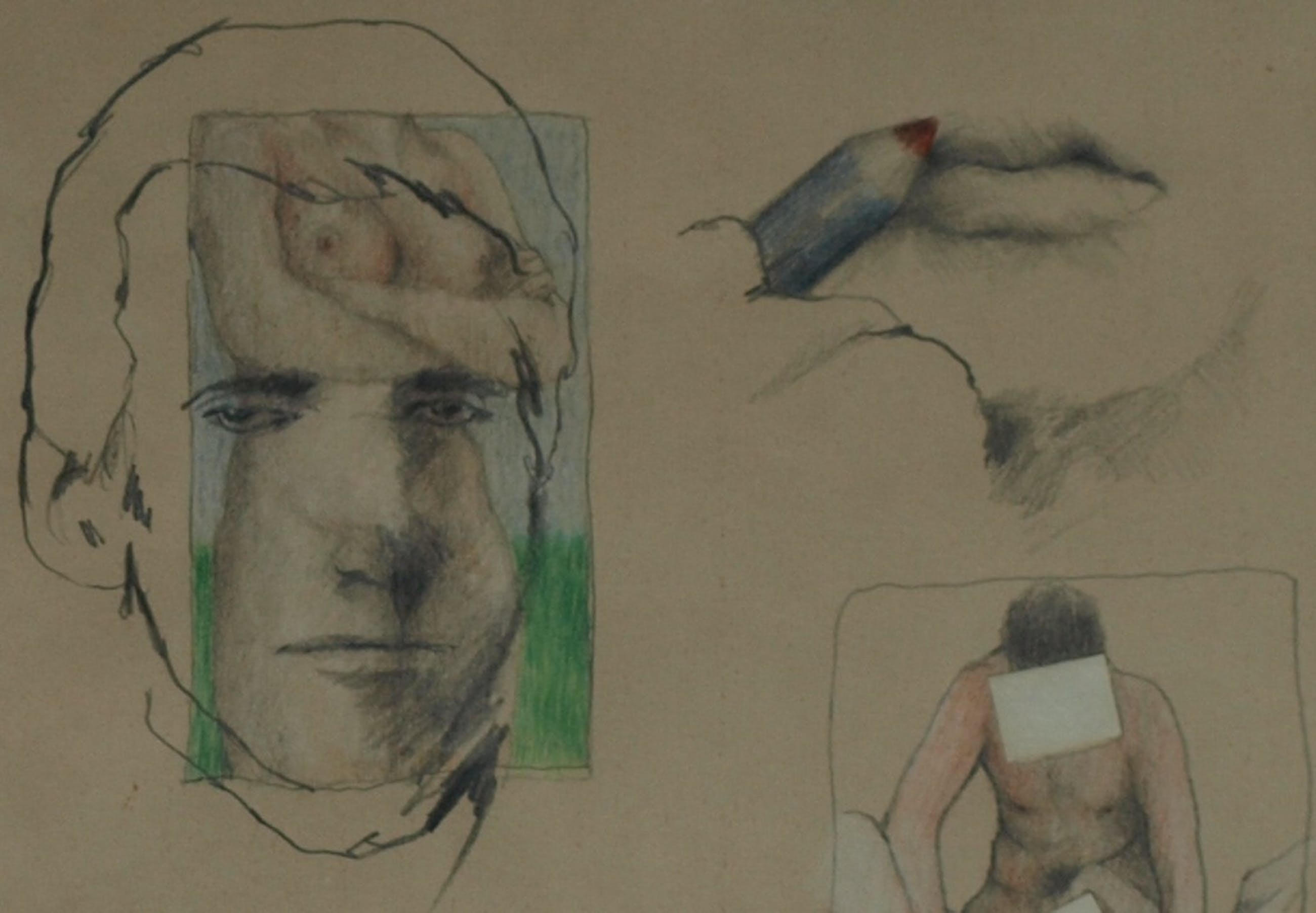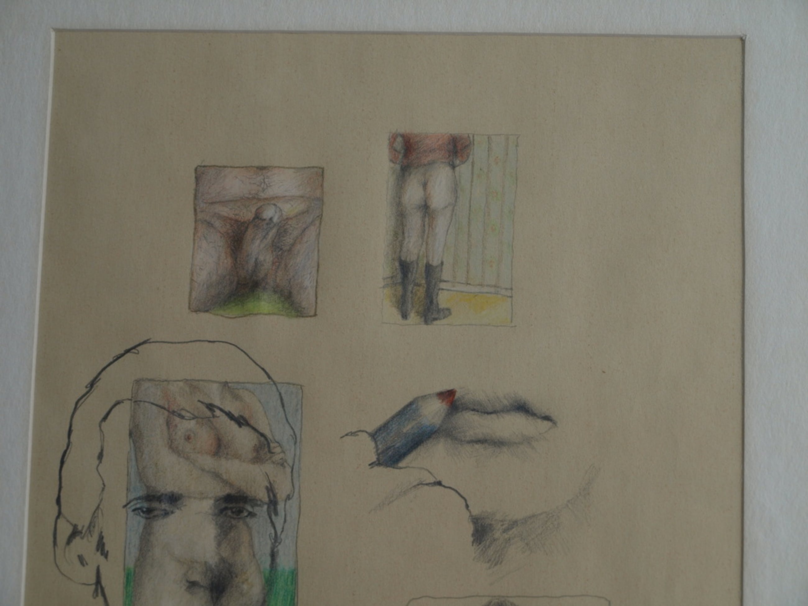 Een ingelijst werk met tekeningen van een ons onbekende kunstenaar.