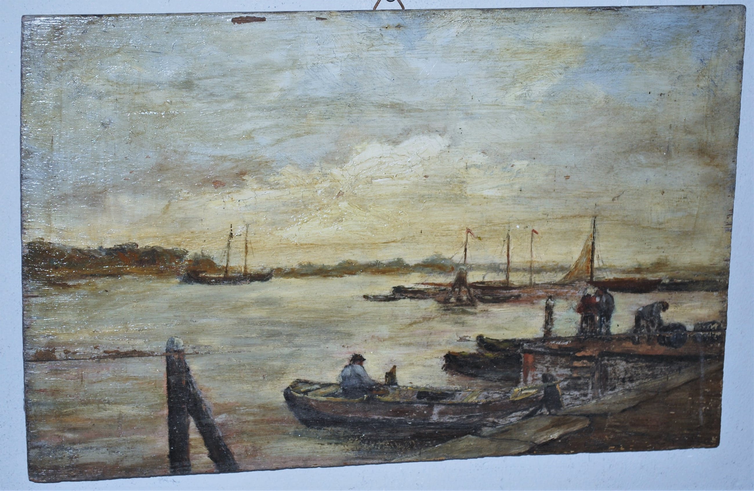 Niet of onleesbaar gesigneerd - onbekend havengezicht - olieverf op paneel kopen? Bied vanaf 1!