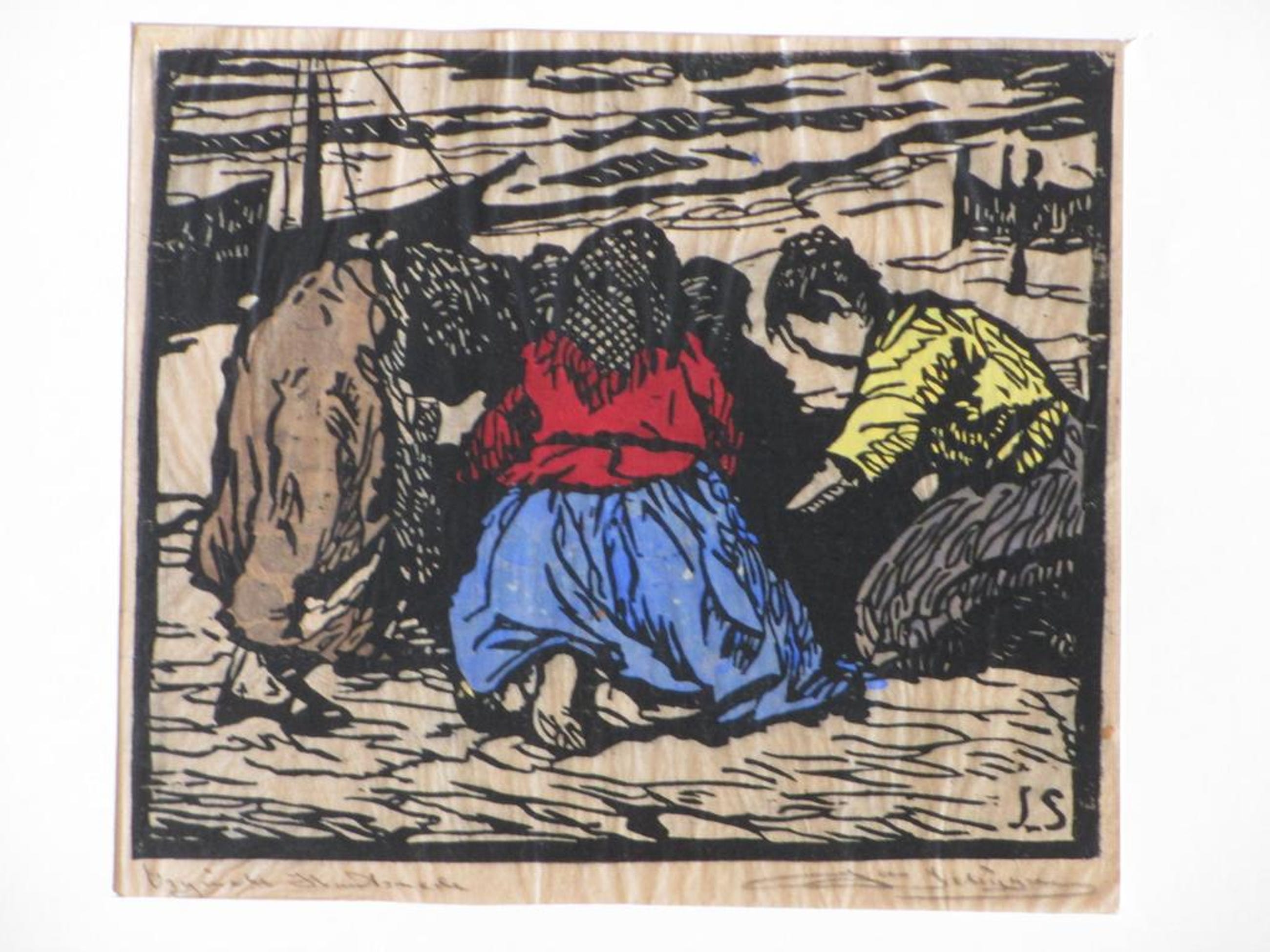 Houtsnede onder passepartout, beeldmaat 17x21, p.p.-maat 36x51