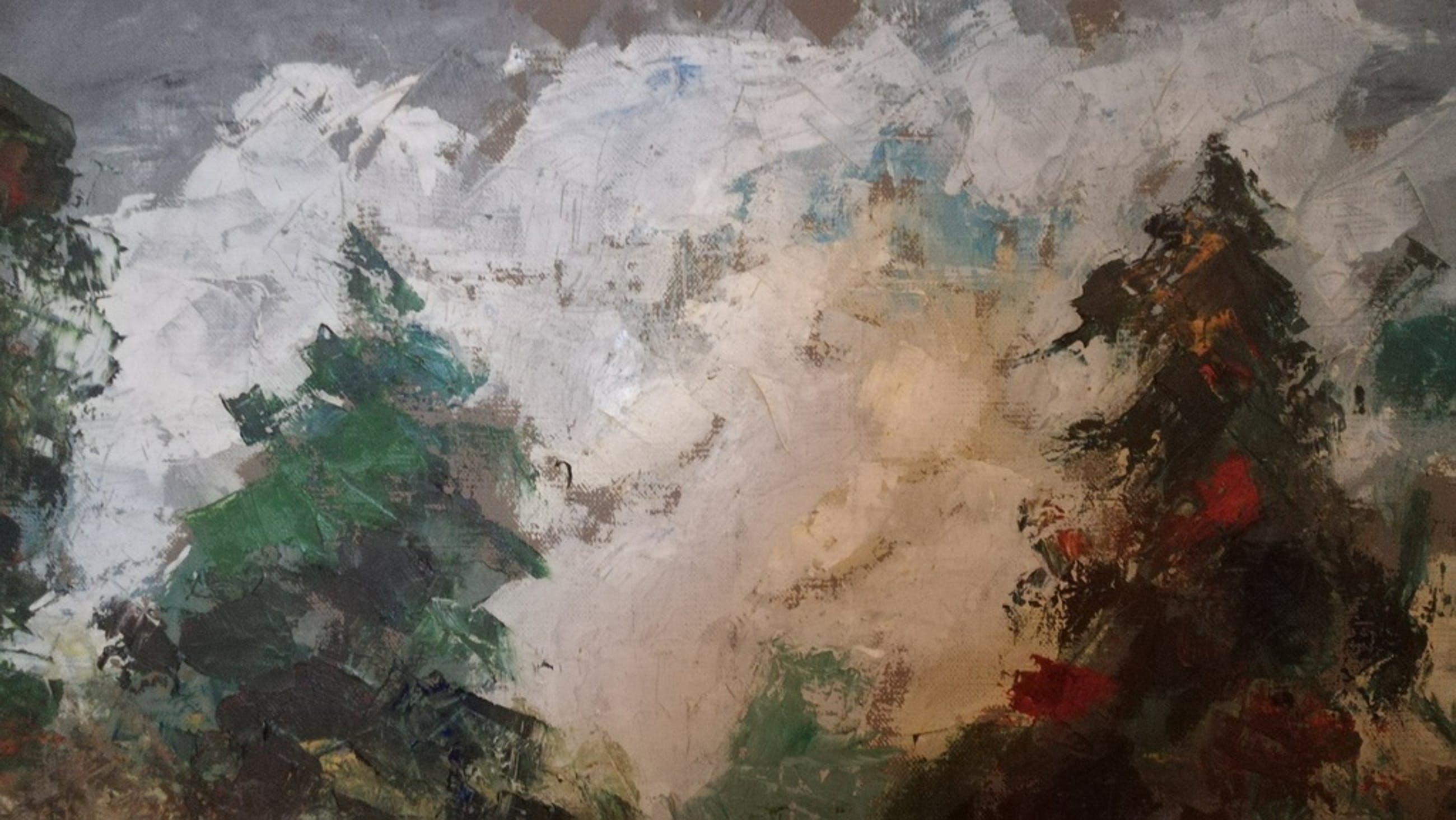 Dikke verfstructuur met paletmes. Intens en oogstrelend kleurenspel.