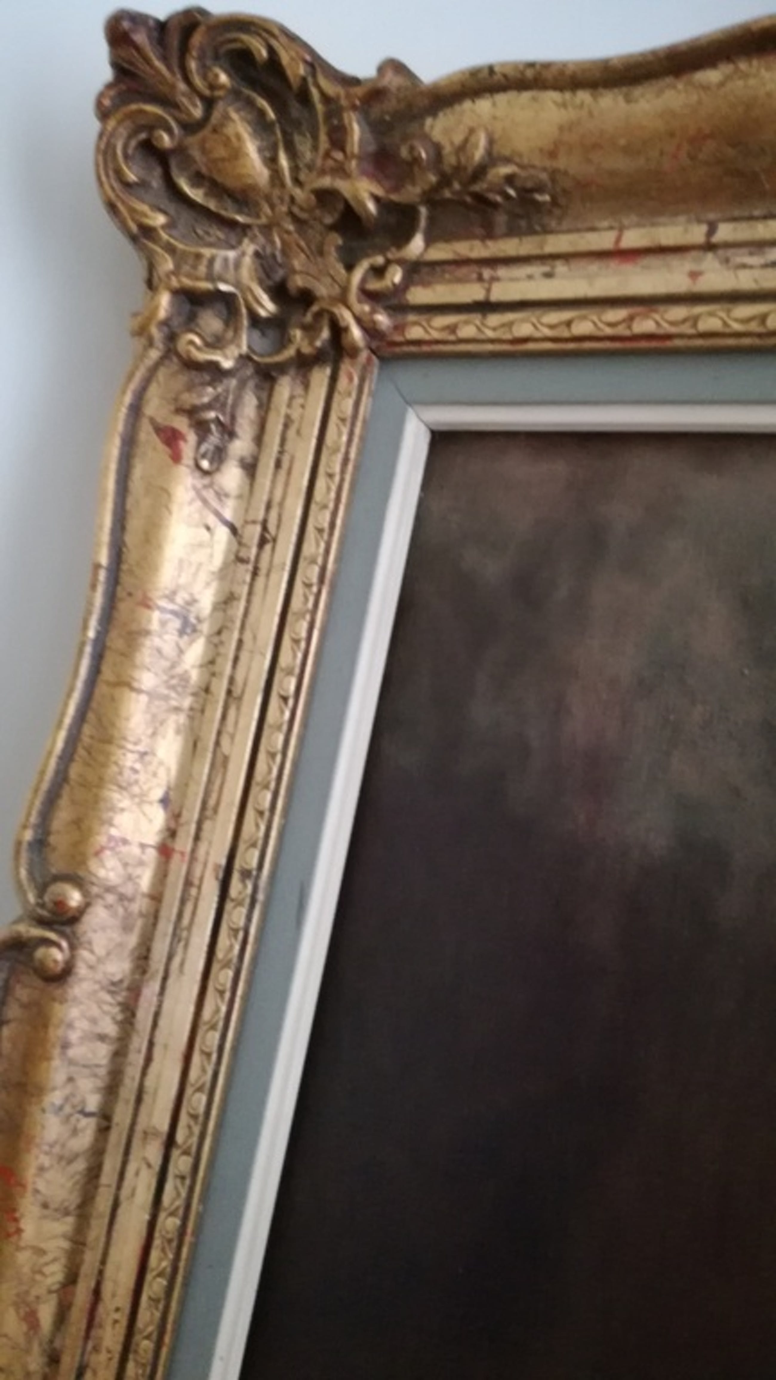 het schilderij is ingelijst met een mooie massieve vergulde kader,