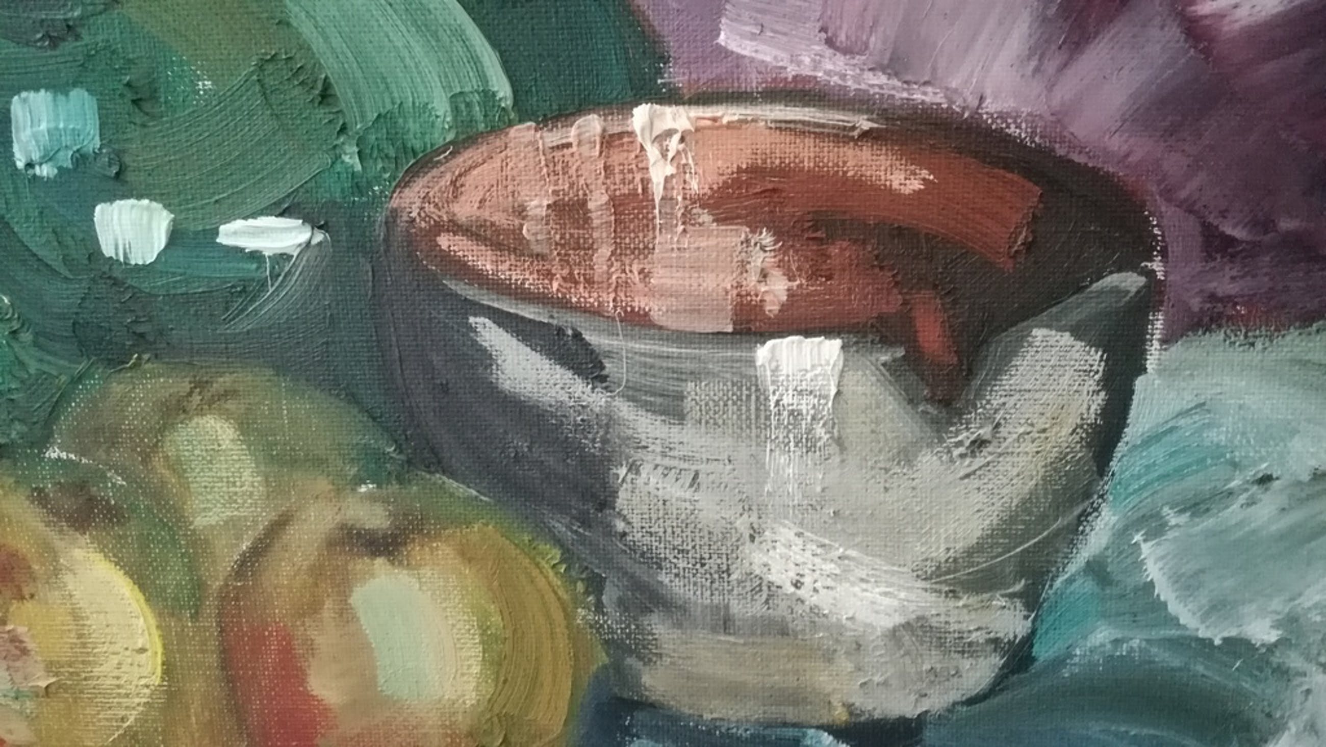 Mooi werk. kunstig en zeer decoratief. Intense kleuren. Dikke verfstructuur.