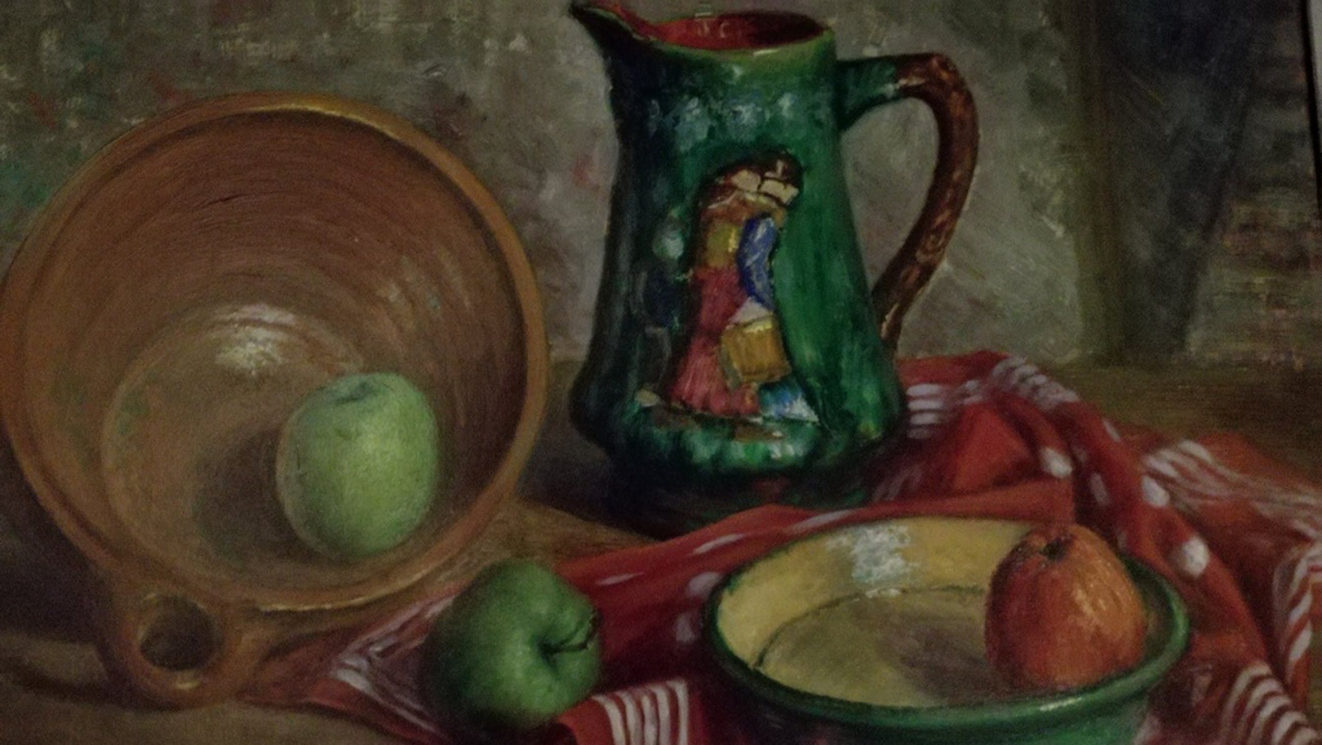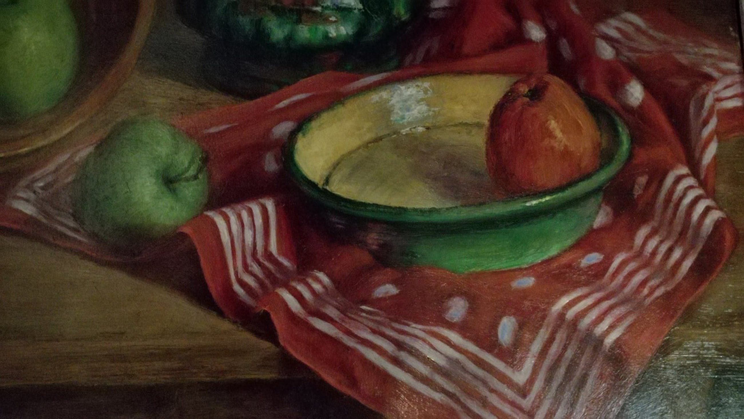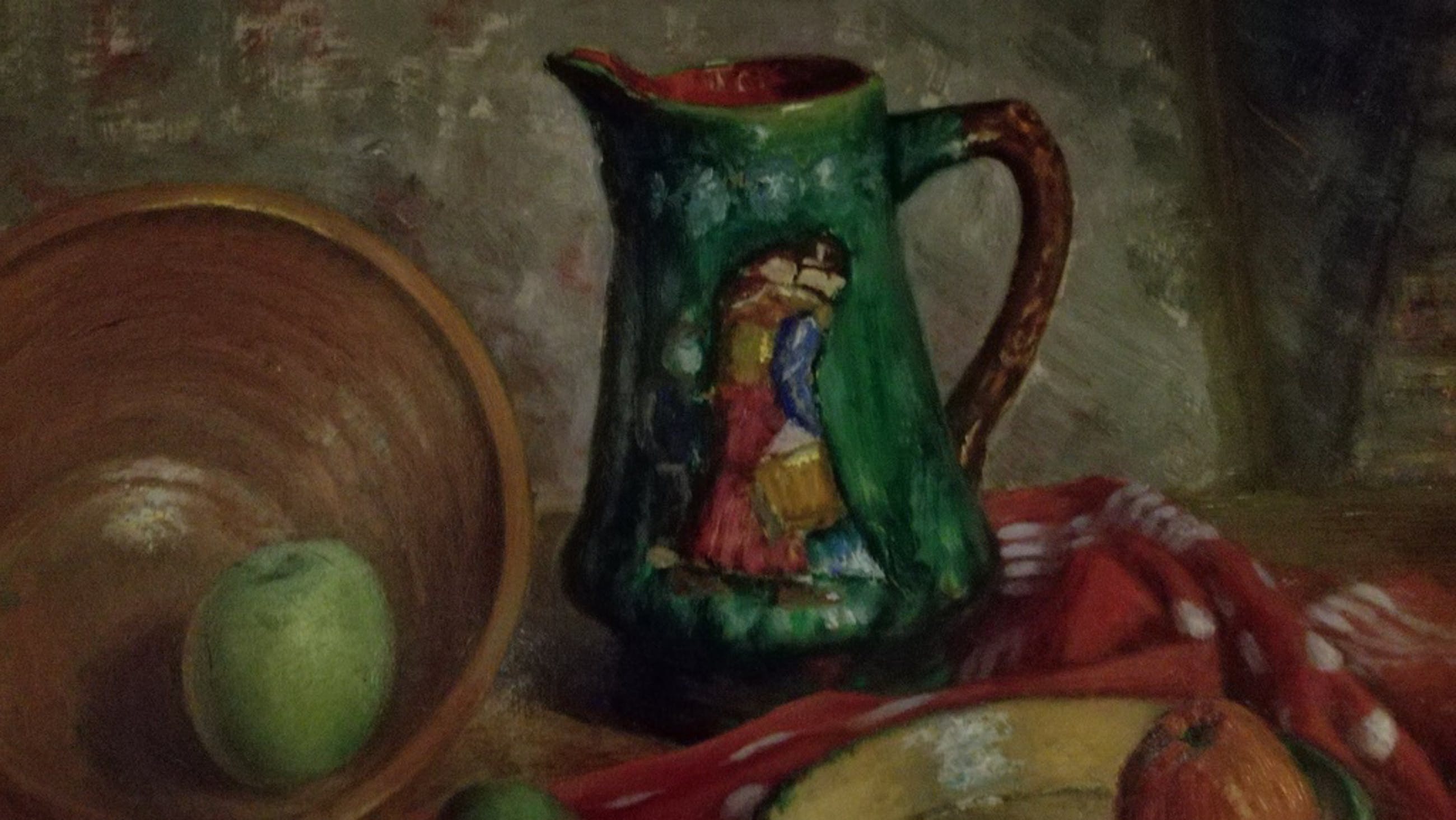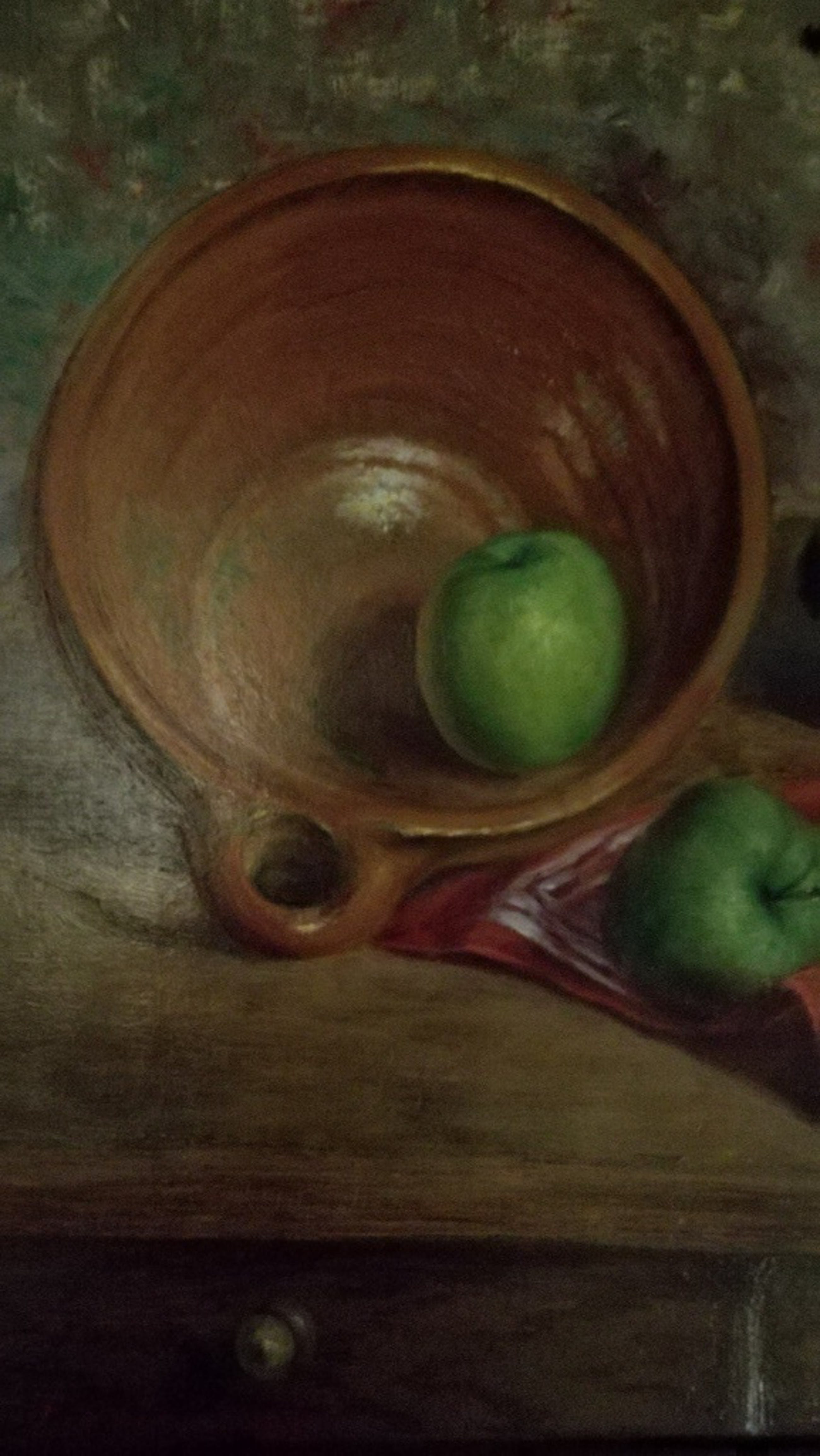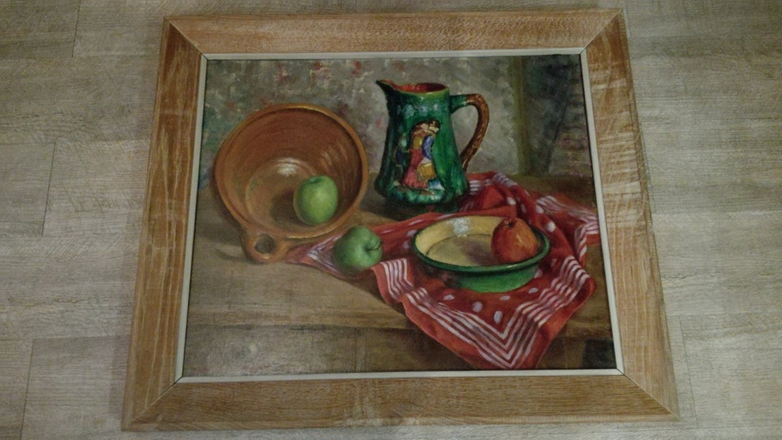 Het werk is ingekaderd in massieve authentieke kader - mooie verfstructuur - prachtige setting.