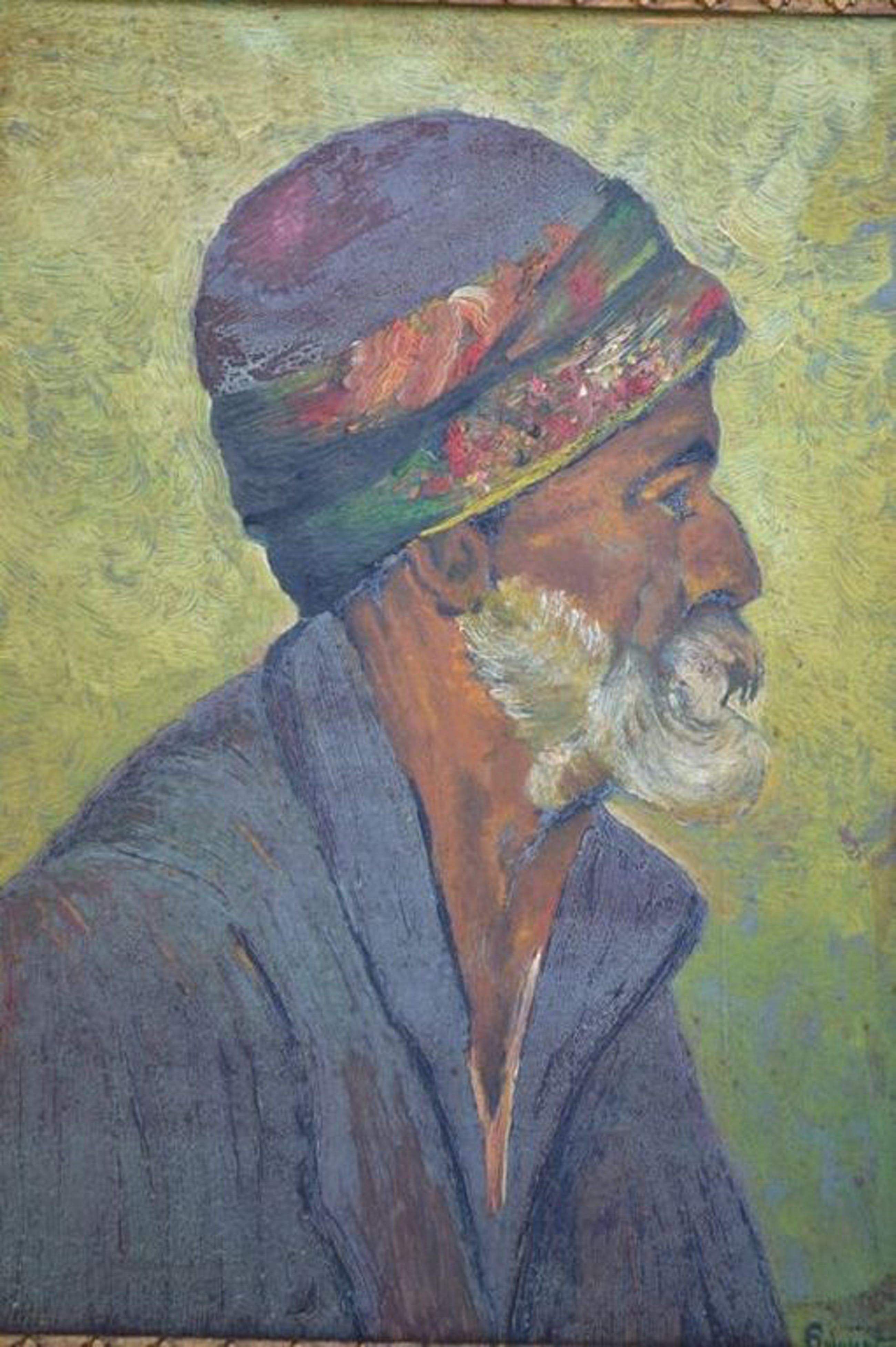 Portret van donkere man, 20ste eeuw. Olieverf op paneel en rechtsonder gesigneerd (Bonnet?). In goudkleurige houten lijst. Levendige kleuren.