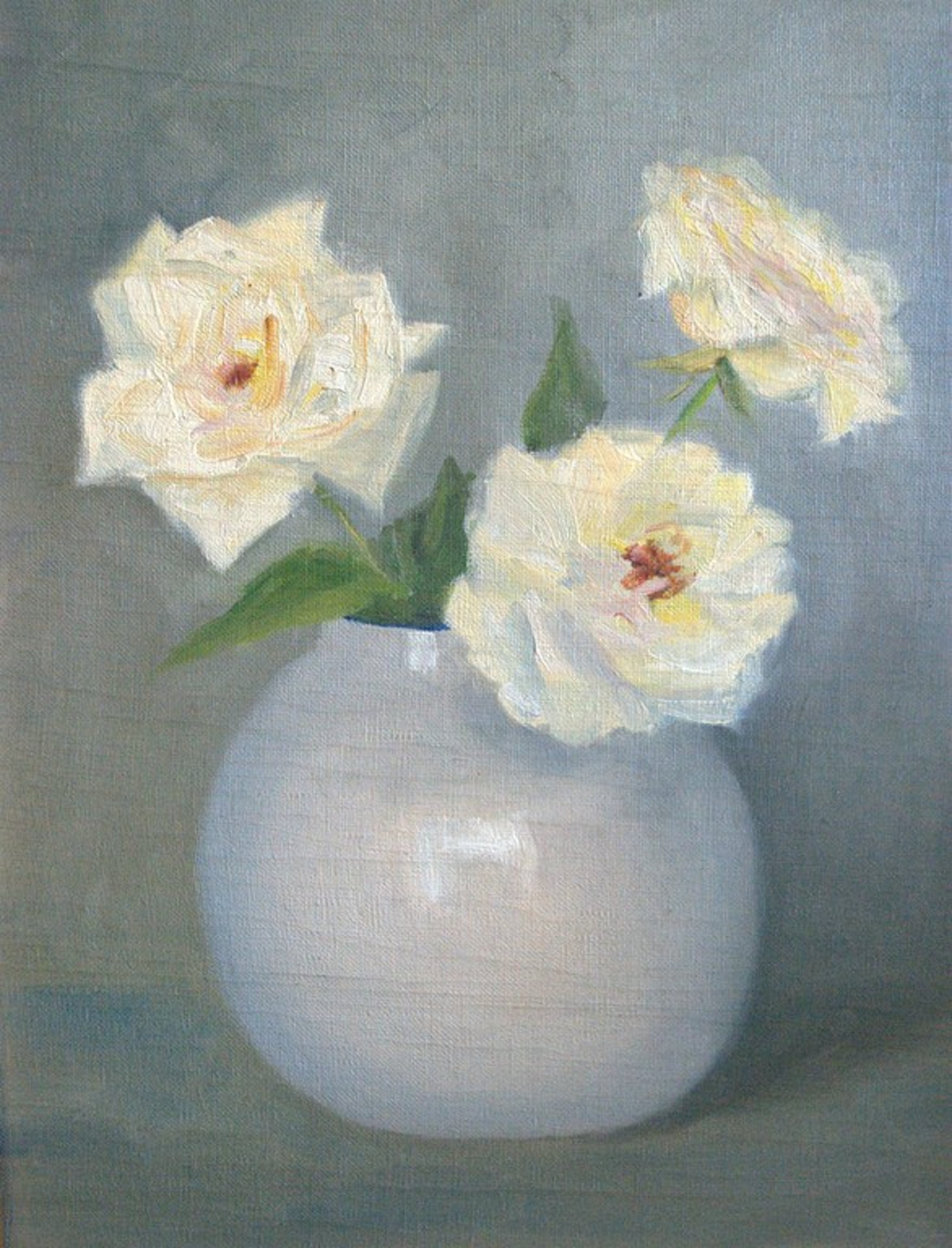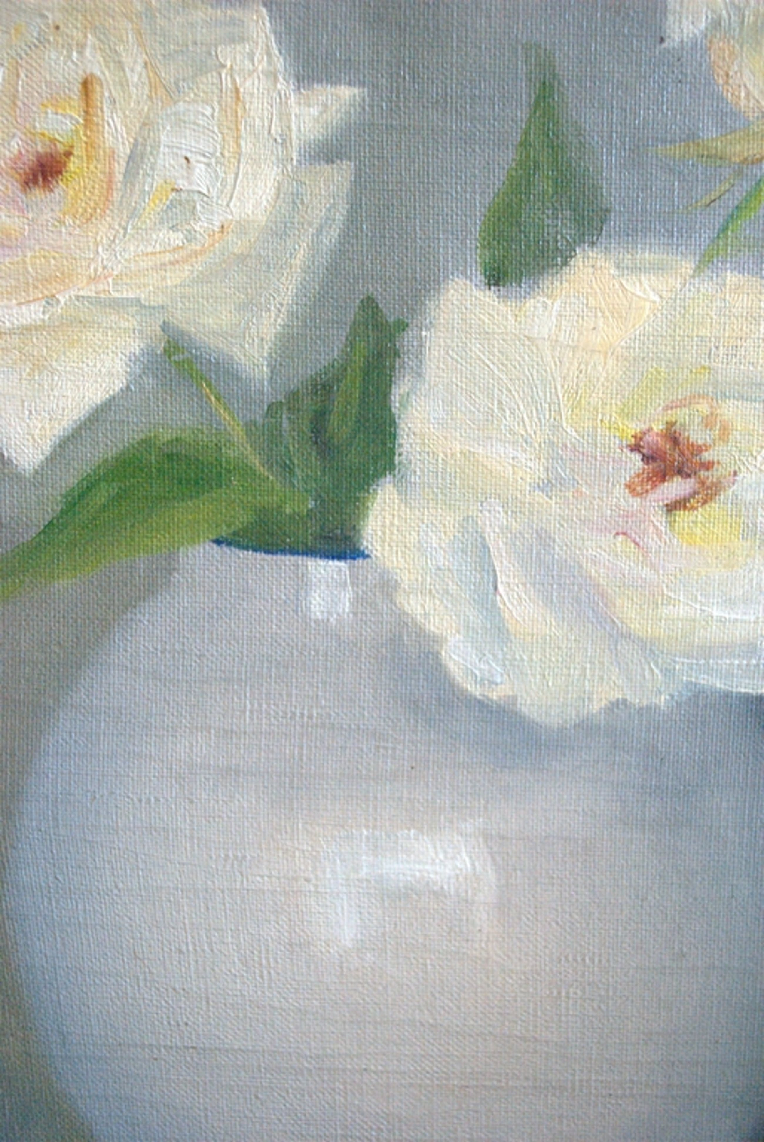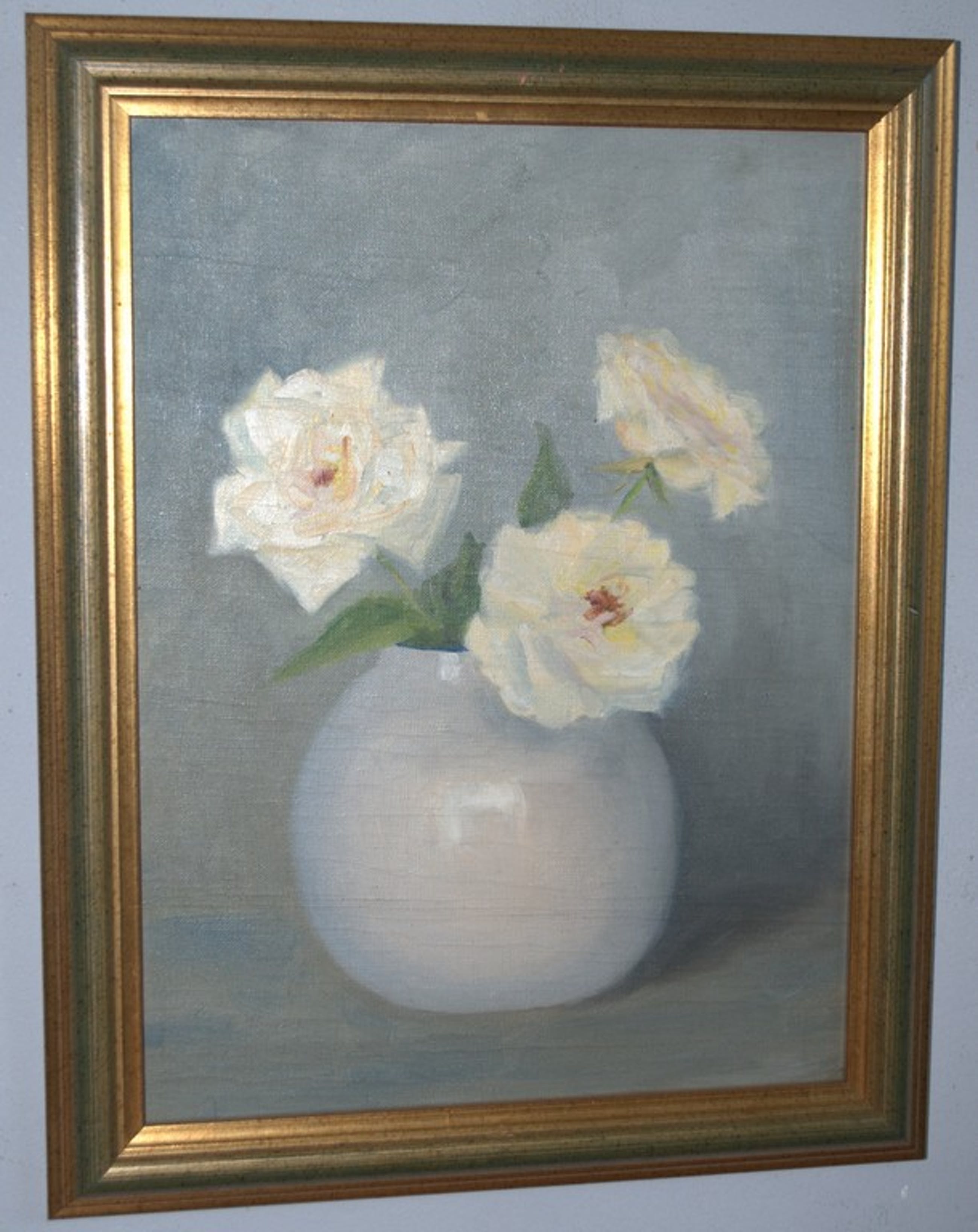 Doek gemaroufleerd op hout, in goede staat, licht rimpelig.