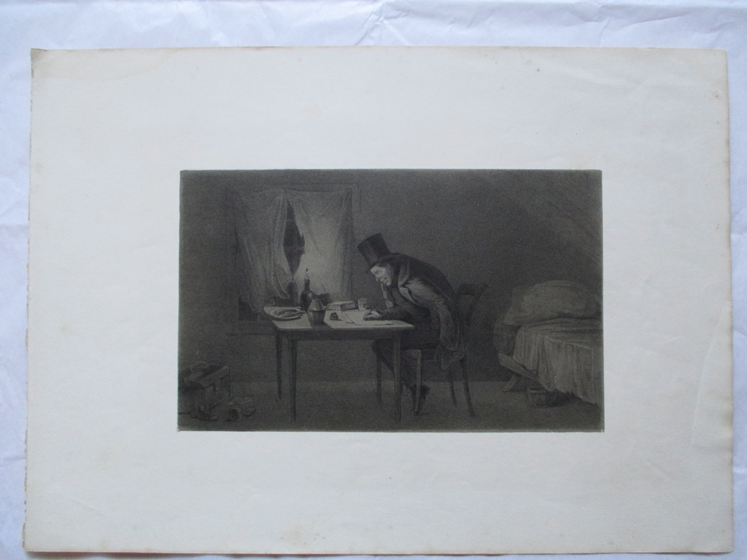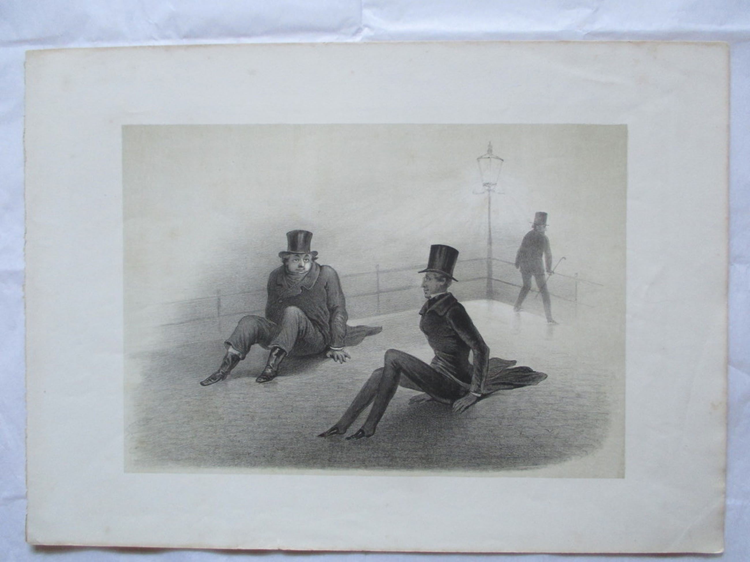 Twee prenten (ik denk lithografieen) ongesigneerd van een onbekende maker. Afm. bladen 36,8x26,4, beeld 26,4x18,5 en 22.3x13,6.