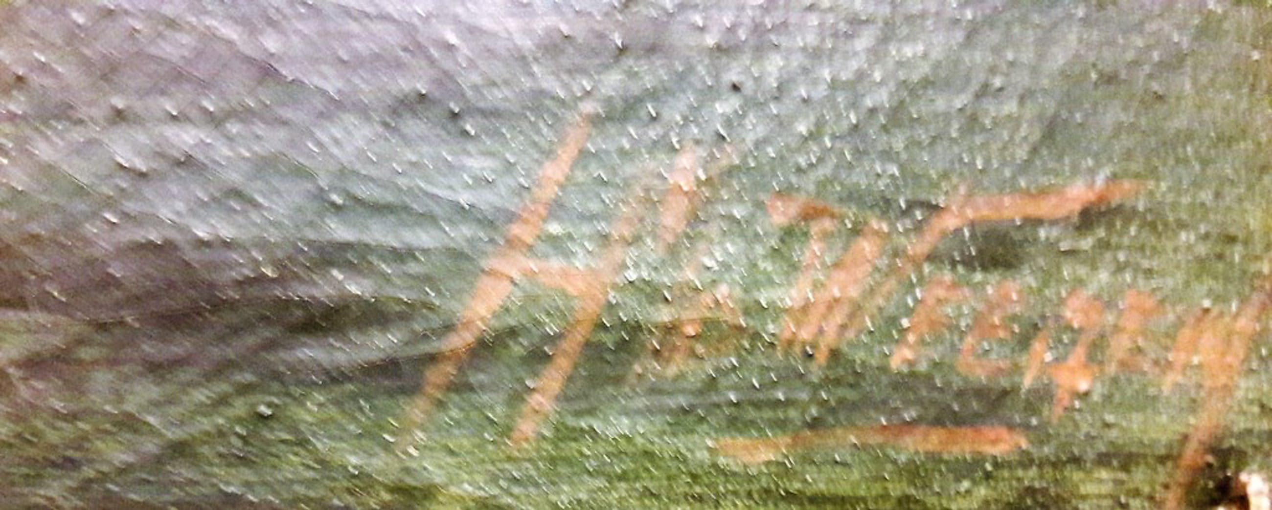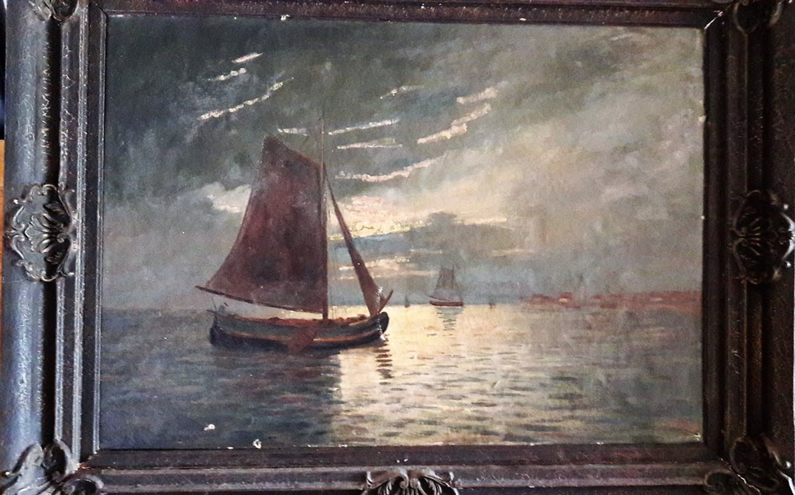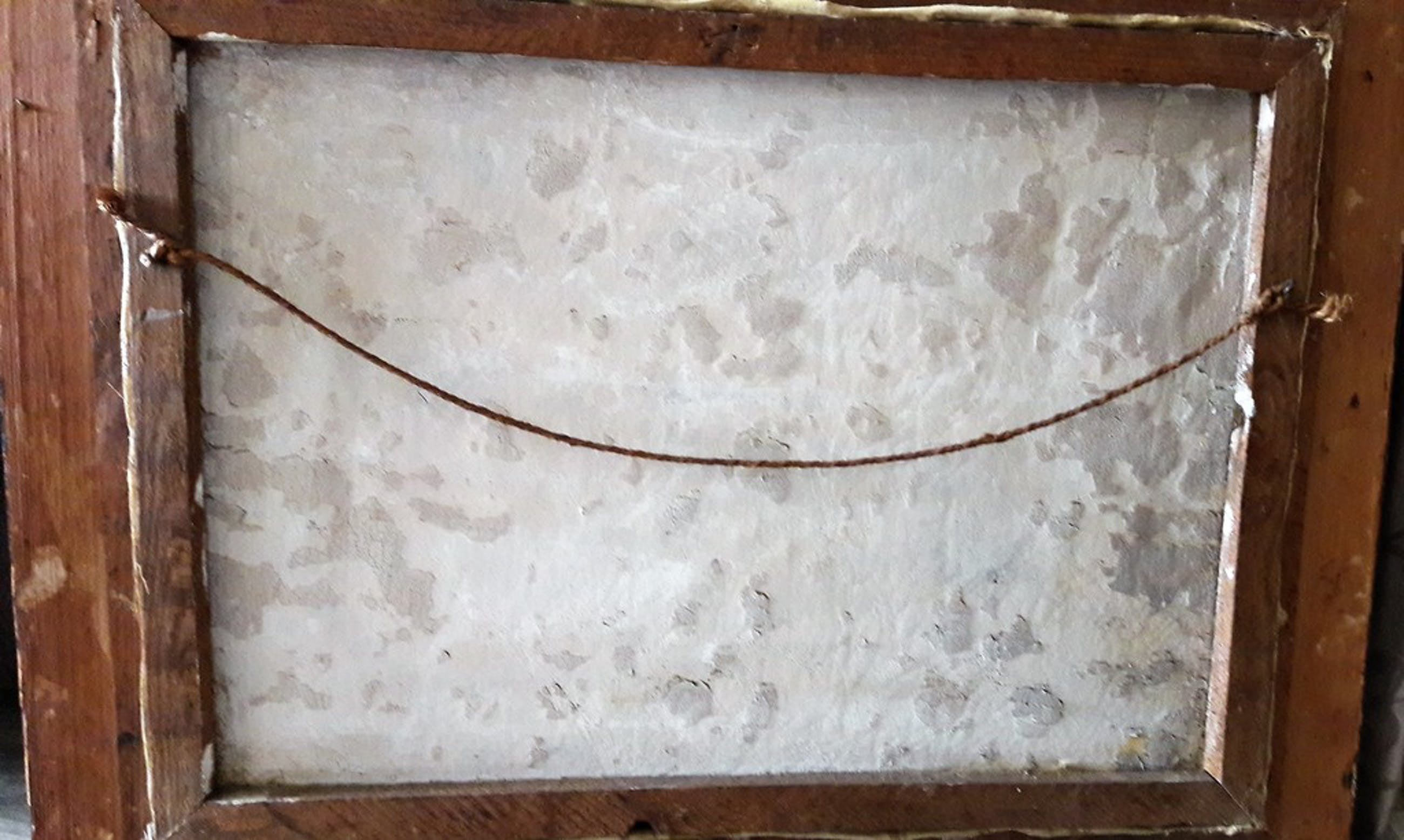 Olieverf op doek, lijst en doek enigszins beschadigd.