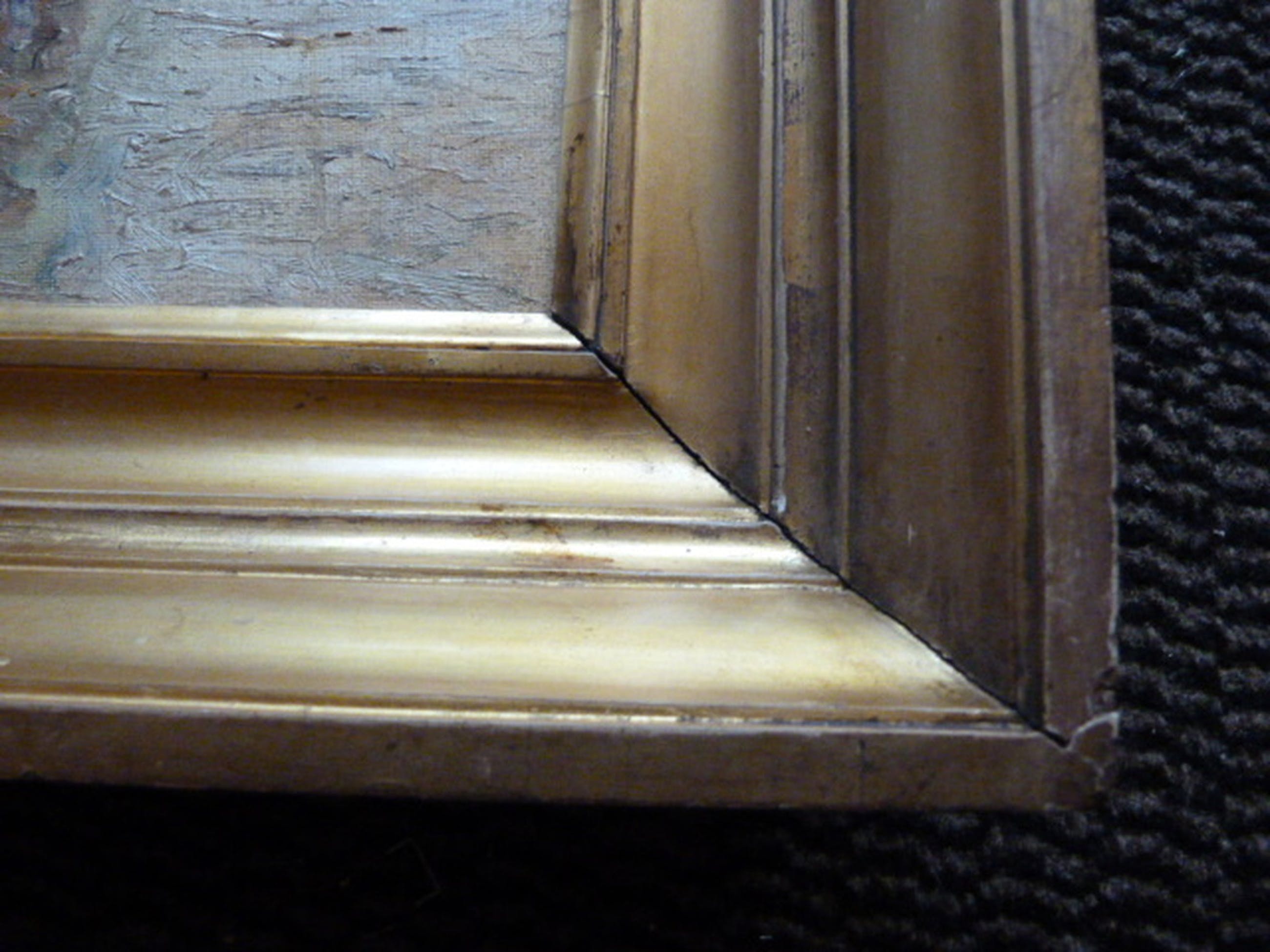 Met antieke, bladgouden lijst : 36 x 42 cm.