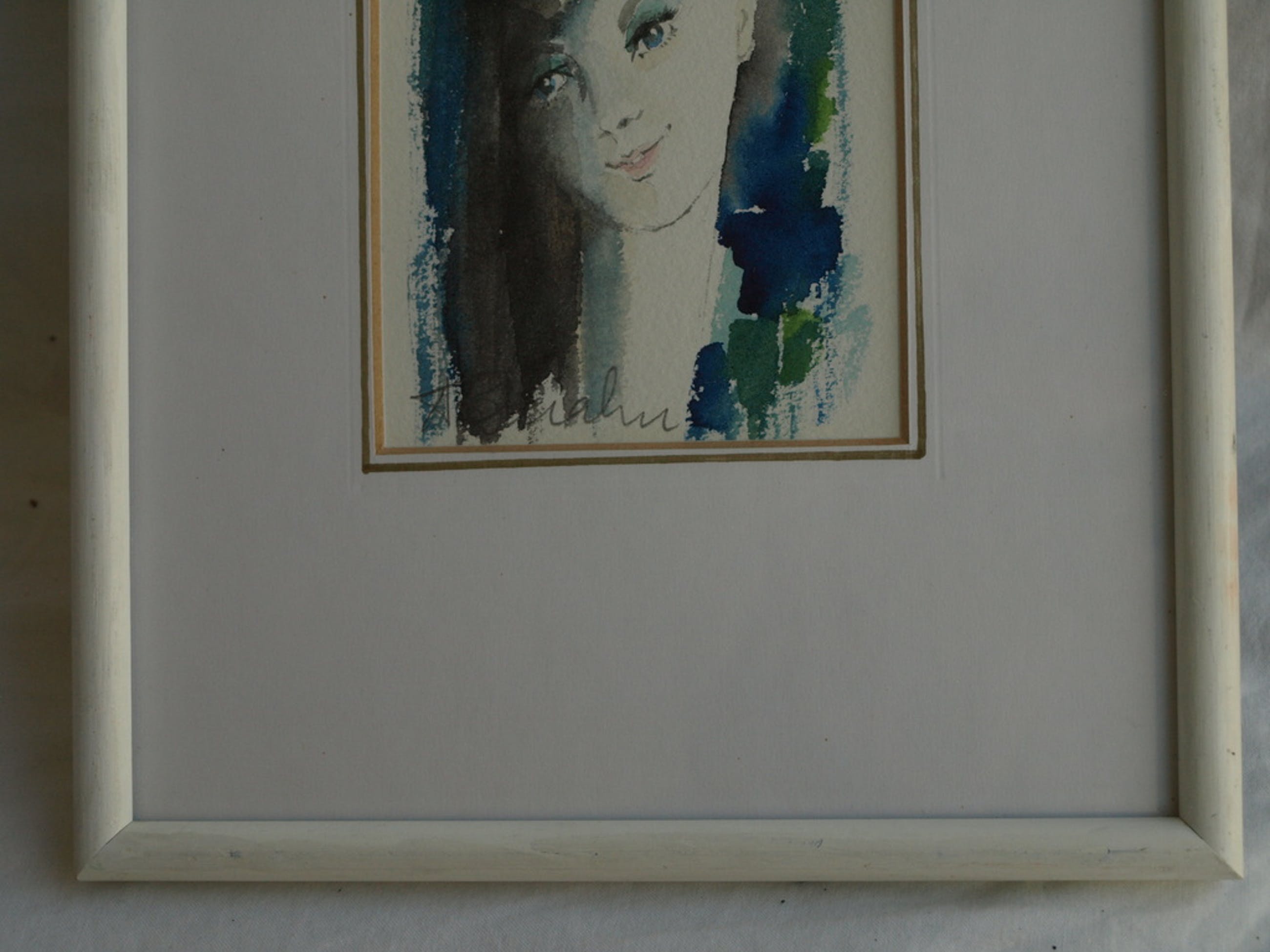 -Het werk is gesigneerd en ingelijst in de een witte houten lijst met passe-partout en glasplaat.