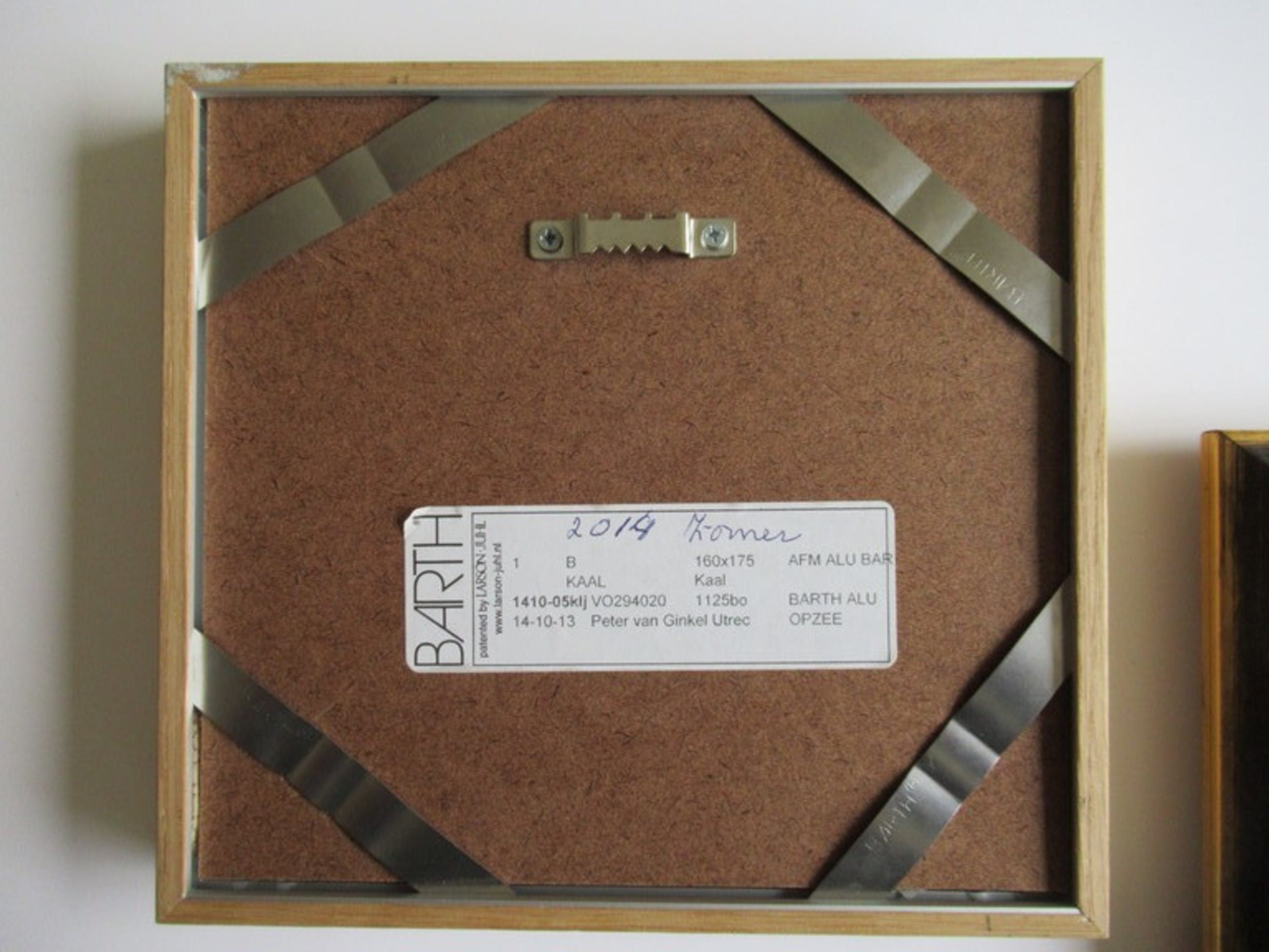 het kleinste werk is 16x17,5 cm, professioneel ingelijst door Peter van Ginkel Utrecht, gedateerd zomer 2014,