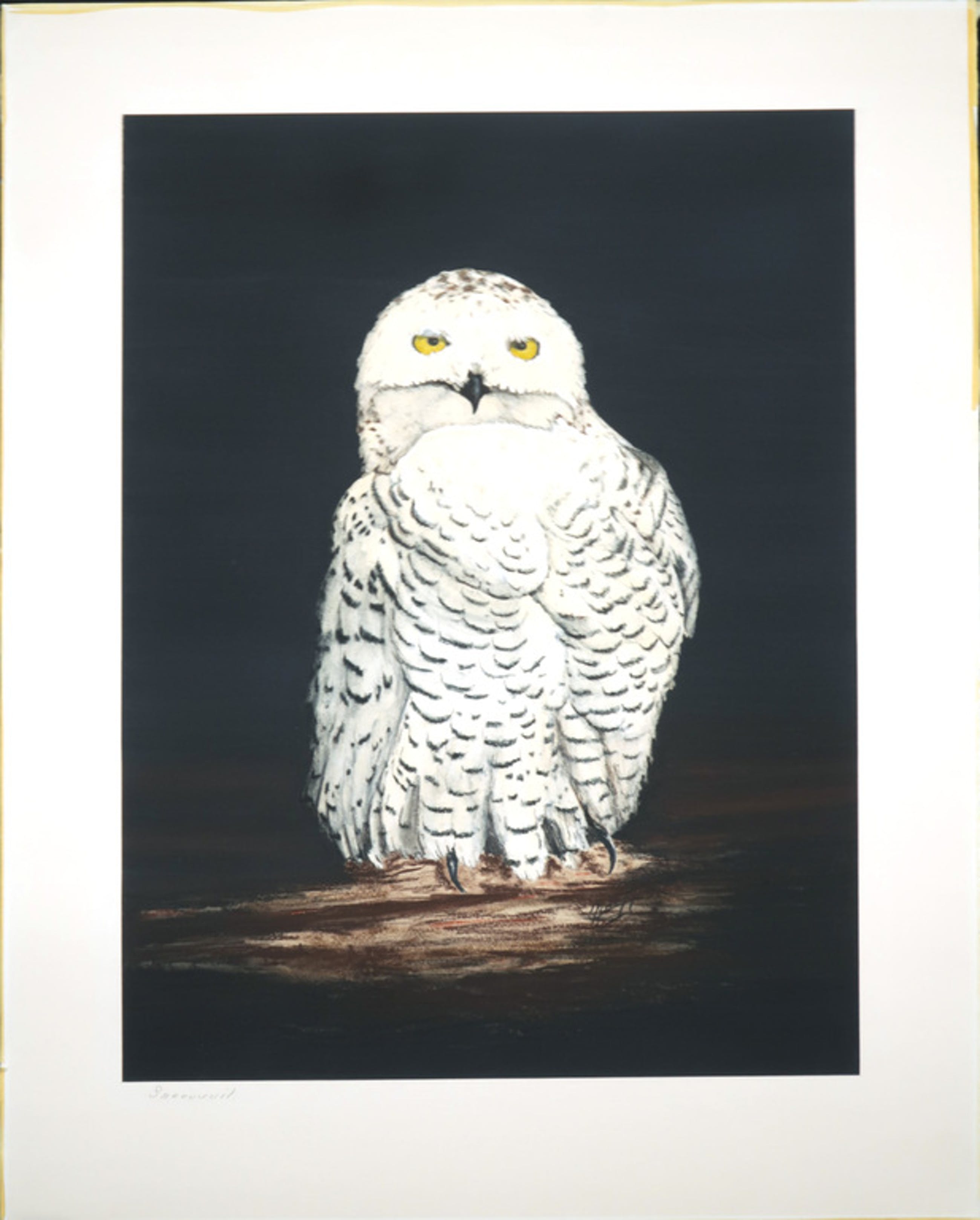 Onbekend - Onbekende kunstenaar: Acryl en krijt op papier, Sneeuwuil - Verkocht