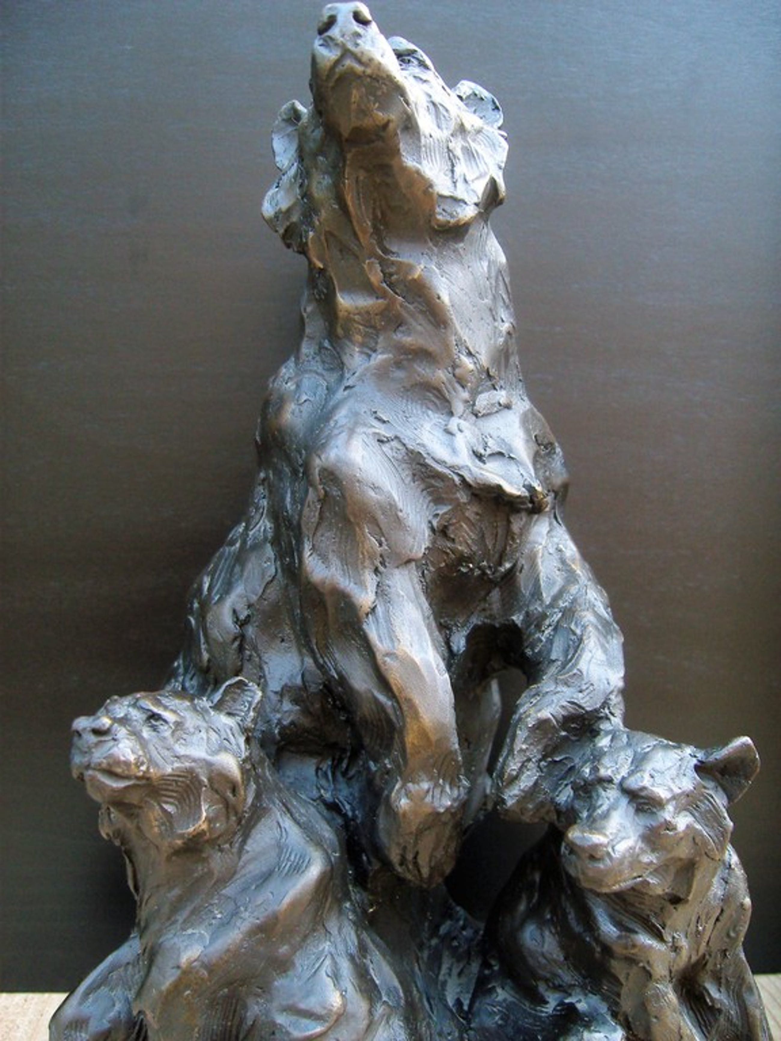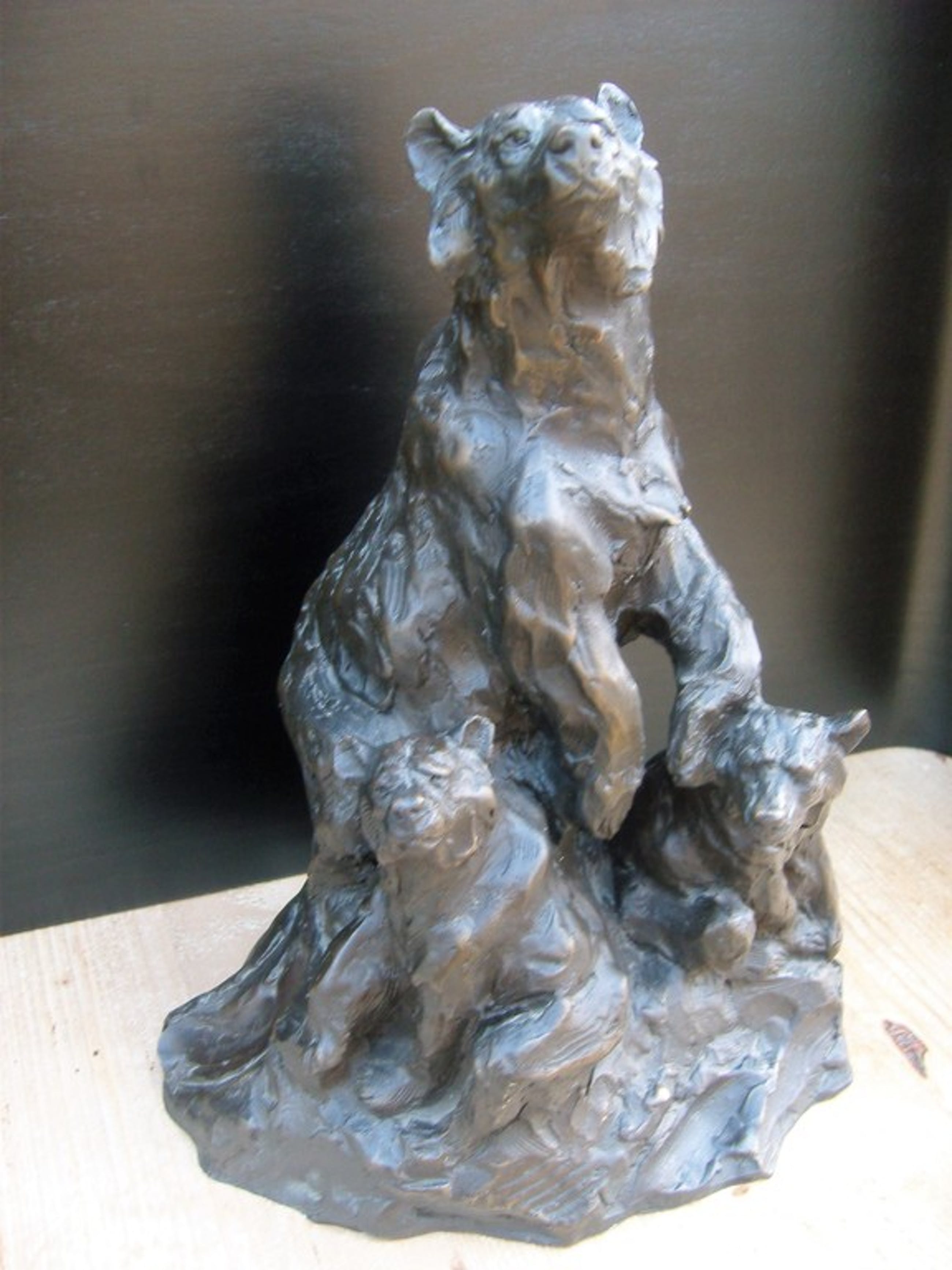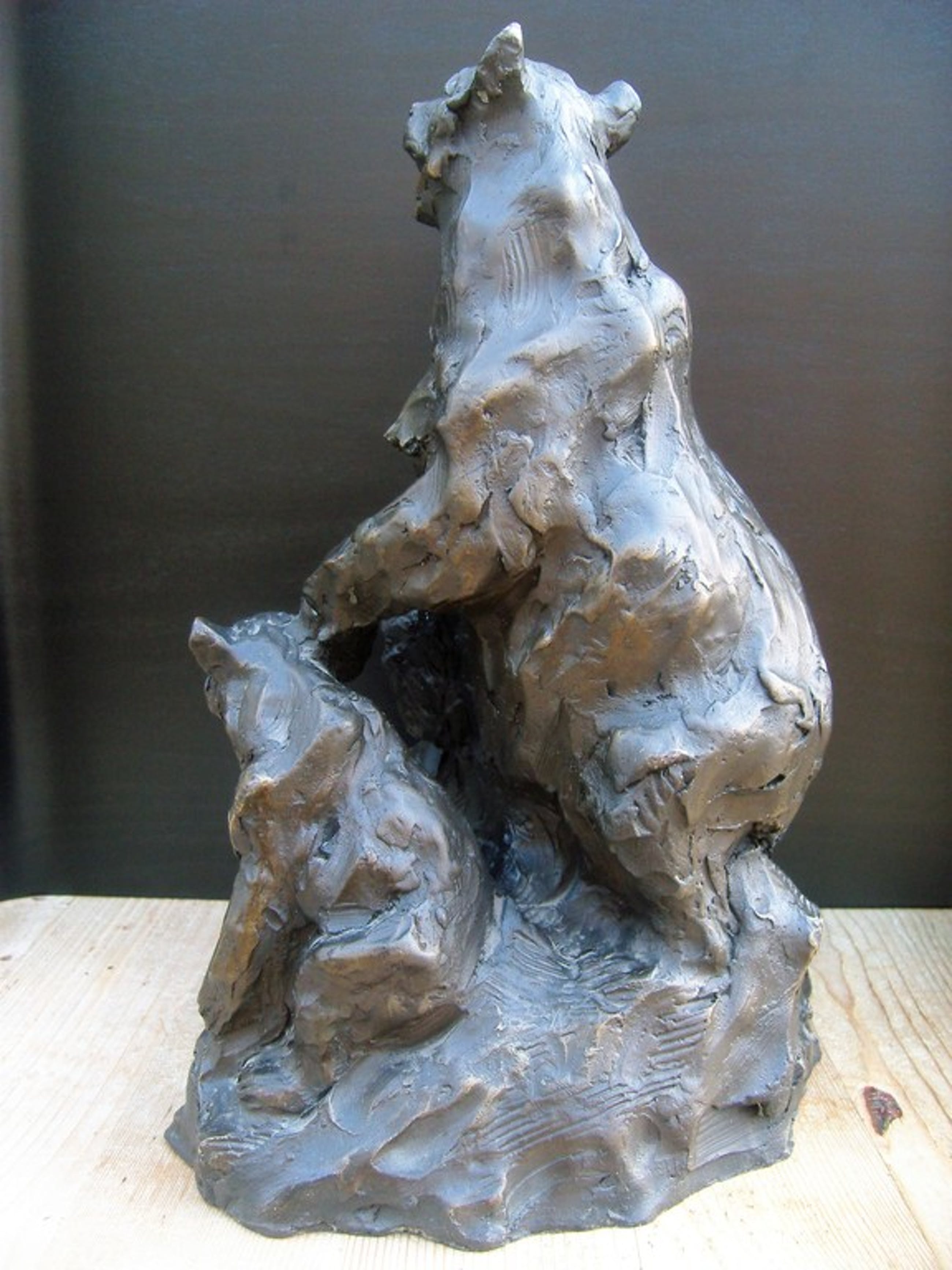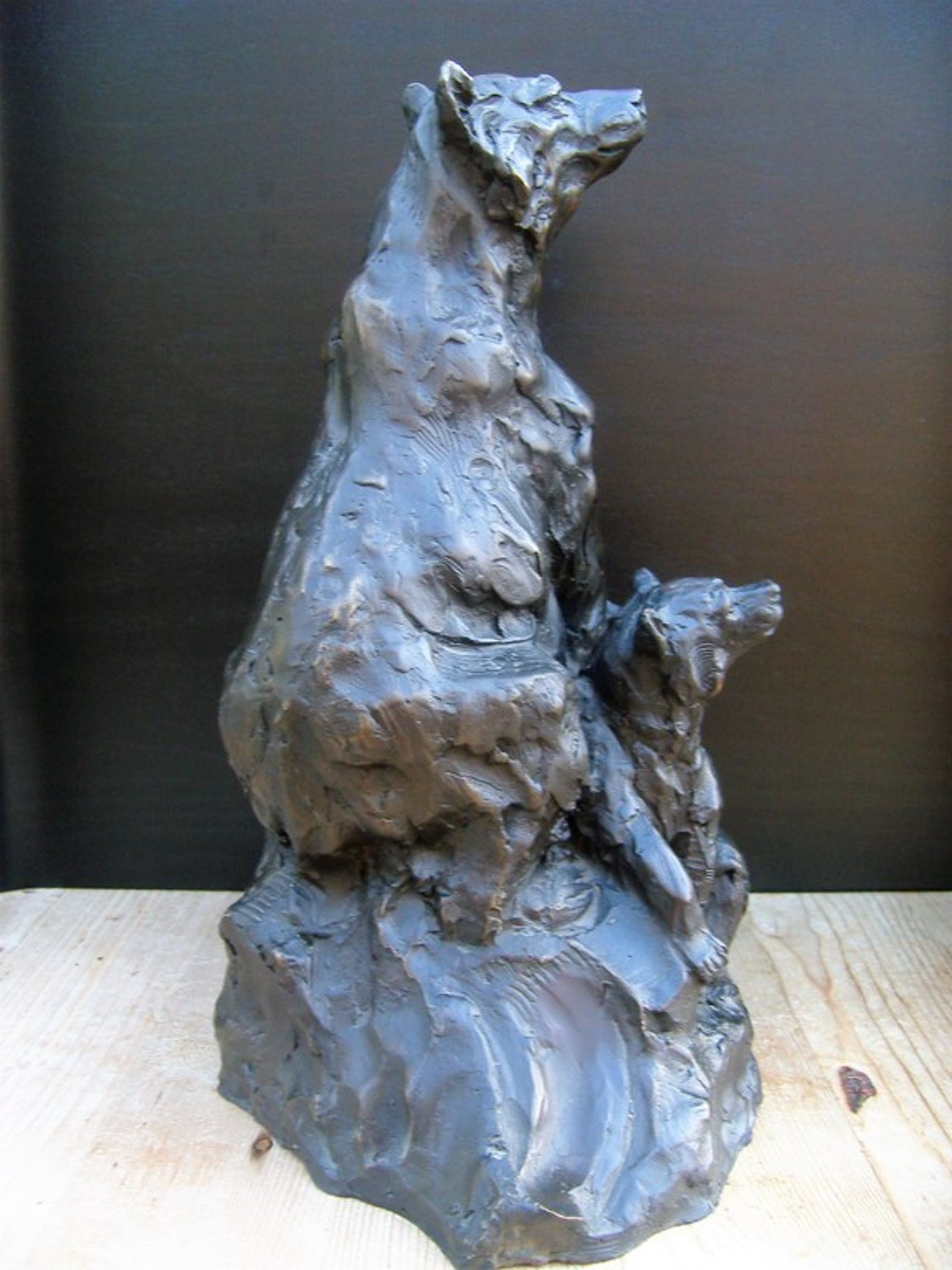 Zeer liefdevol gemaakt beeld van berenfamilie. Gemaakt in vlotte toetsten, op sommige plaatsen zie je de vingerafdrukken van de kunstenaar in het werk. Erg mooi beeld!!