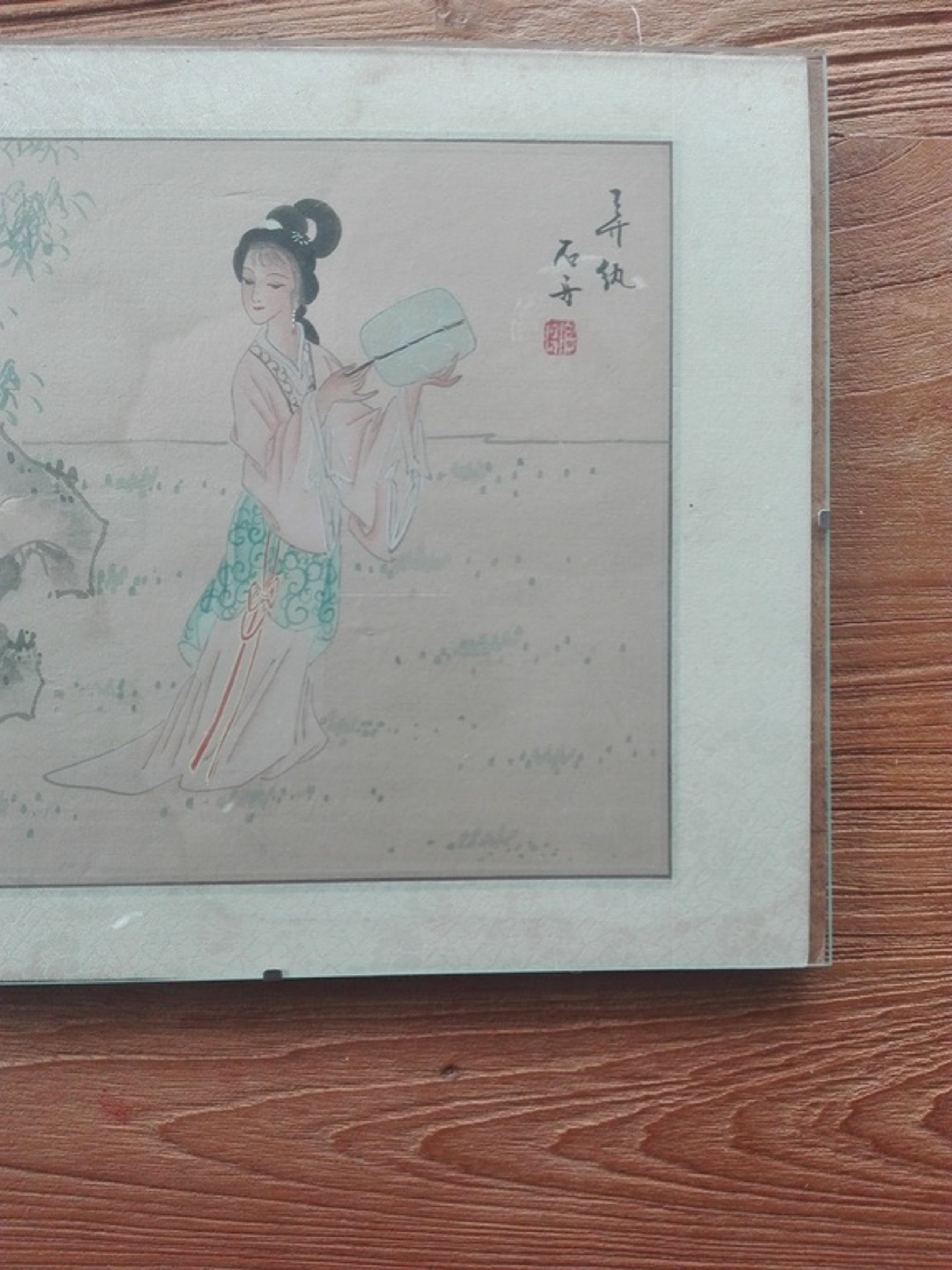 Het werk wordt geleverd, zoals op de foto's getoond, dus met lijst en glas.