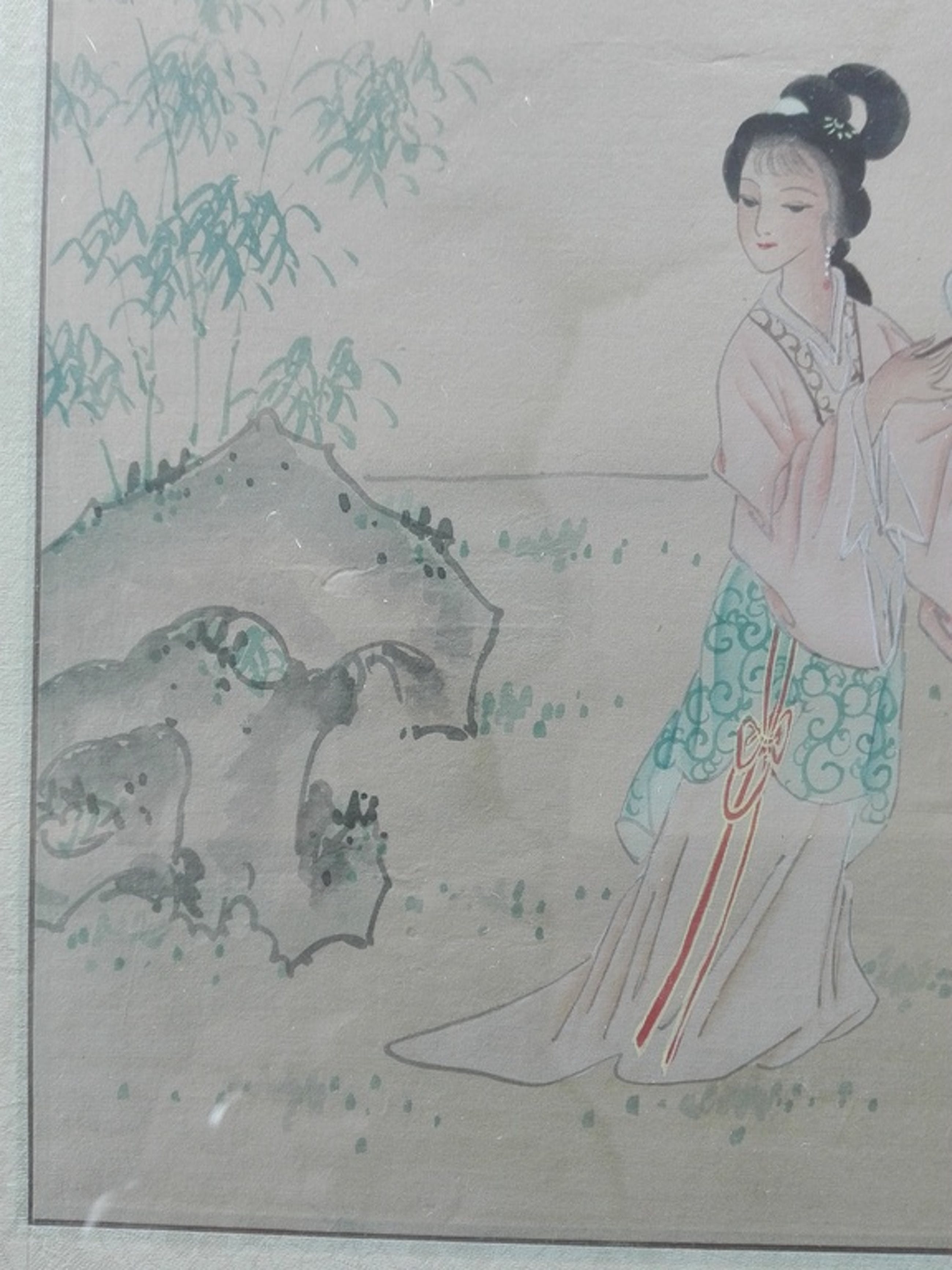 Zéér mooie aquarel op zijde van hoge kwaliteit. Prachtige details en kleurgebruik.