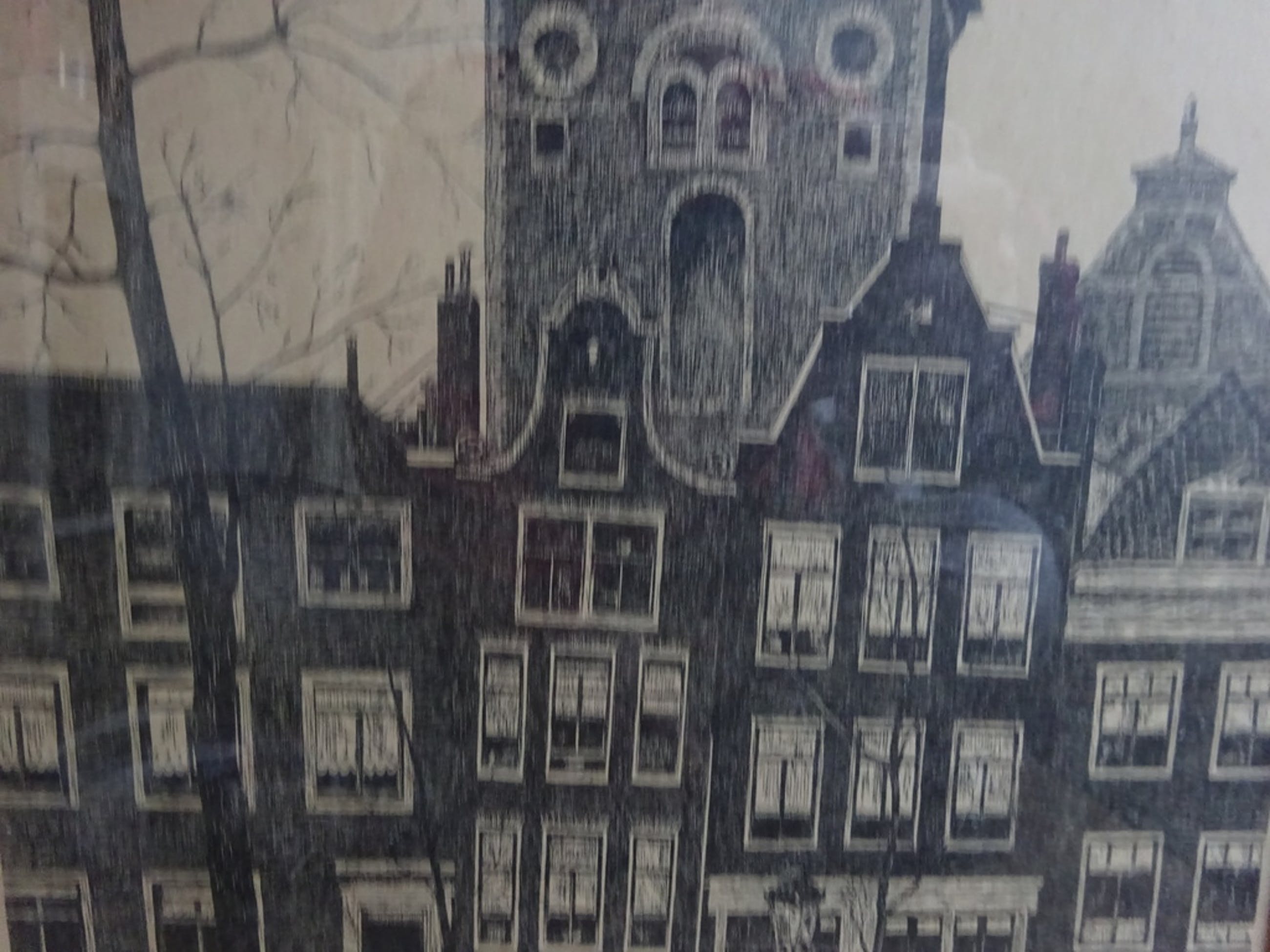 Ets van Groenburgwal met daarop achtergrond Zuiderkerk te Amsterdam.