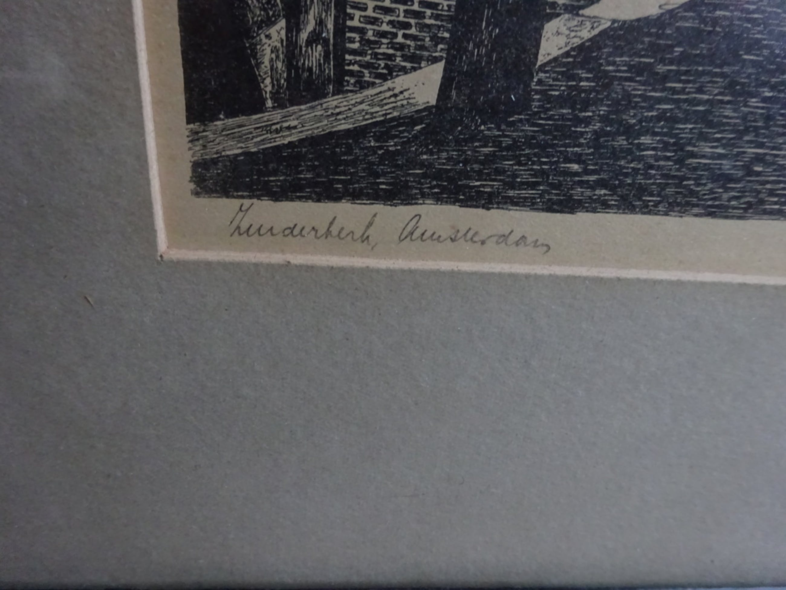 Ets is rechtsonder met potlood gesigneerd en linksonder getiteld.