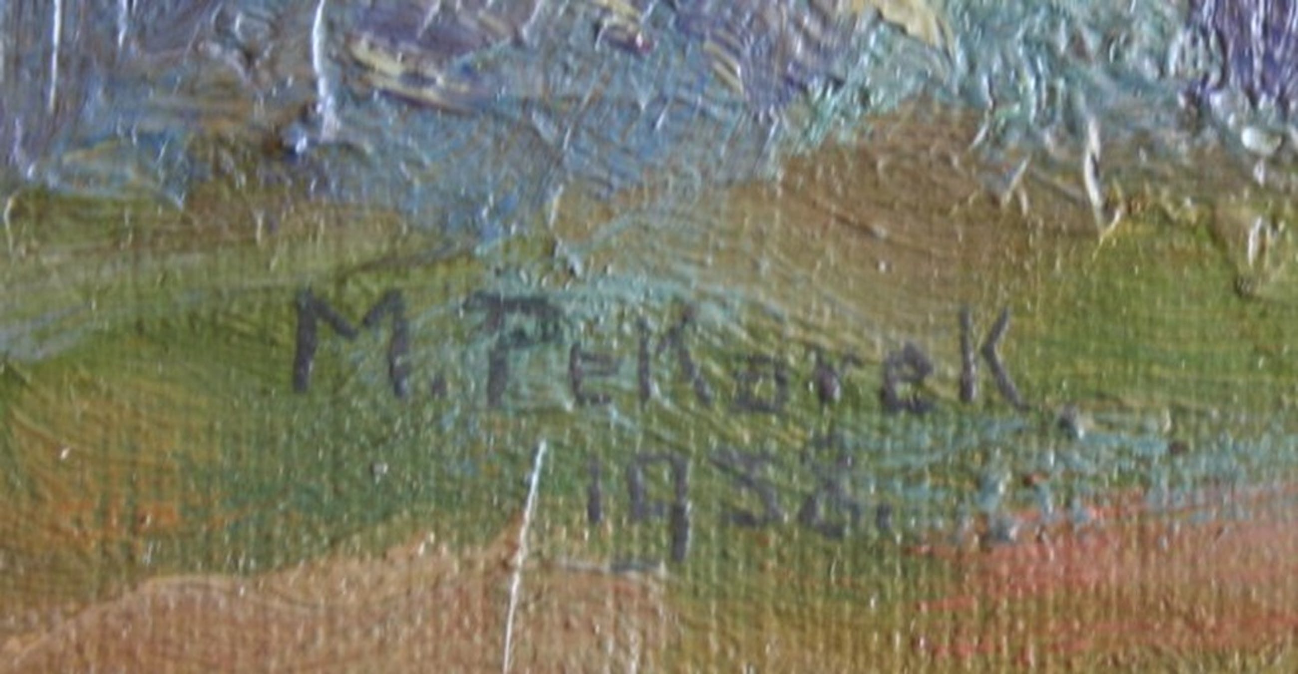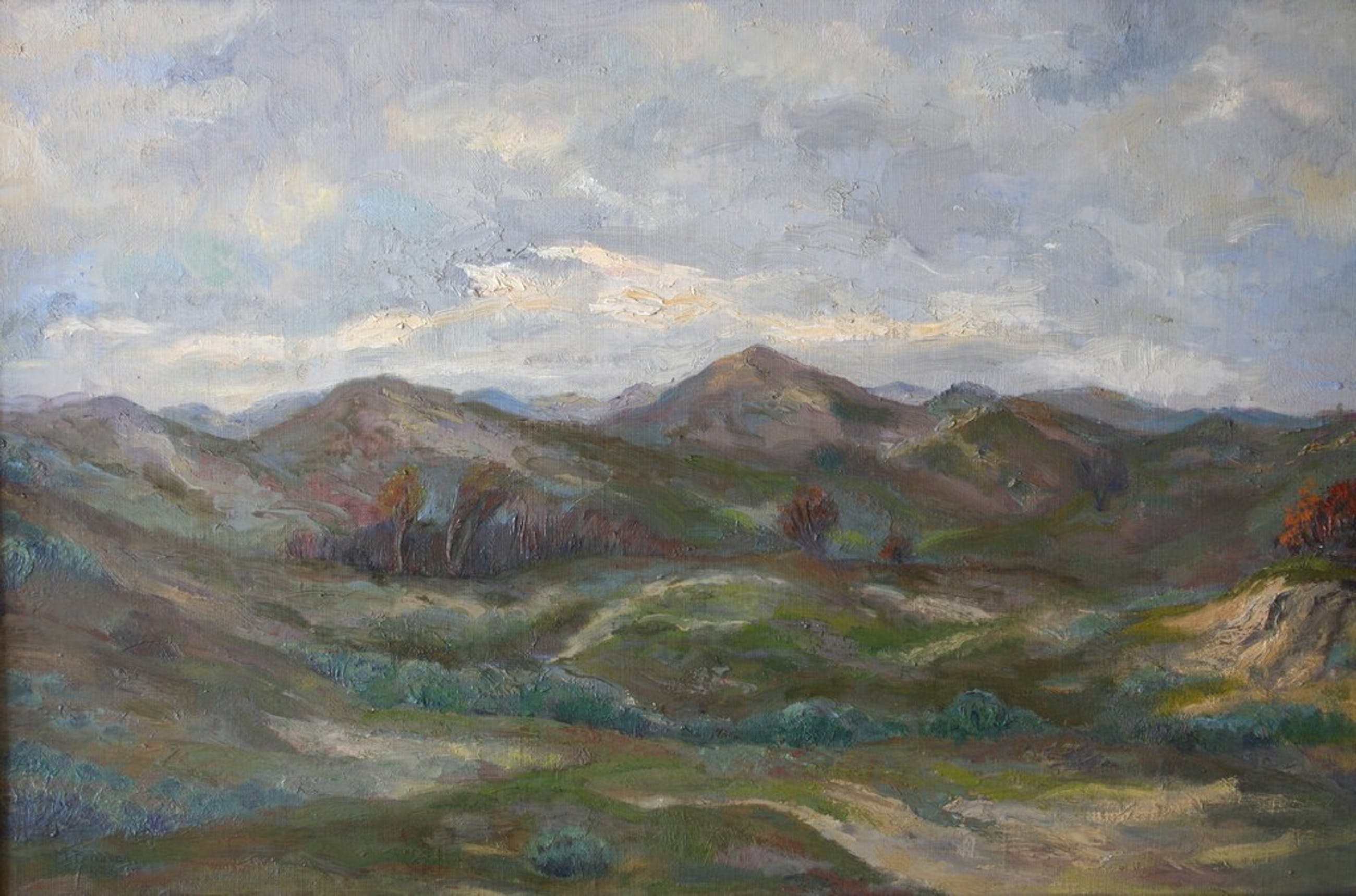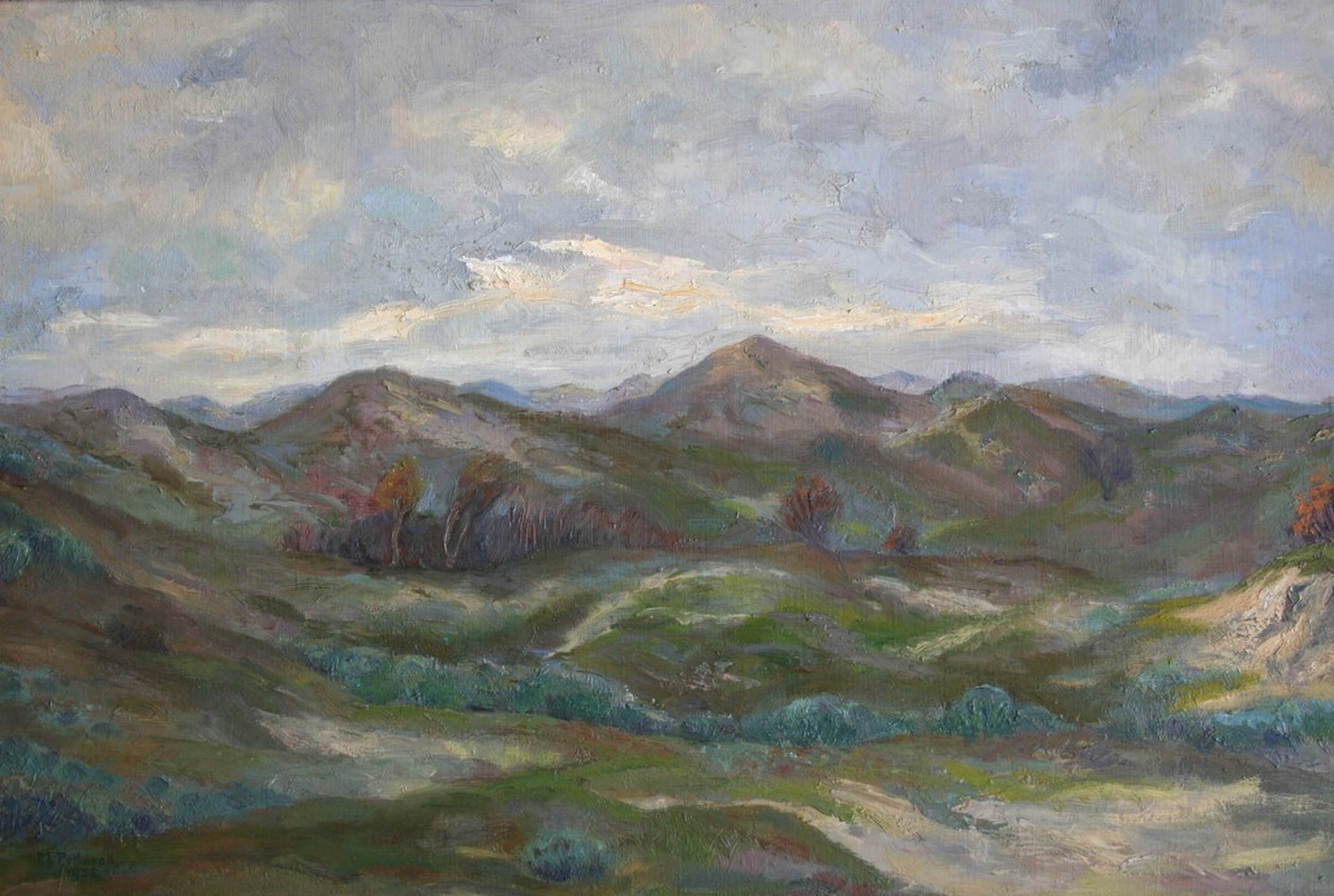 Olieverfschilderij in een houten lijst. Voorstelling van een heuvellandschap. Gesigneerd, diverse namsvariaties mogelijk. Jaar 1938 of 1958 bijgeschreven. In goede conditie, lijst ook. Afmeting 40 x 60, met lijst 48 x 68.