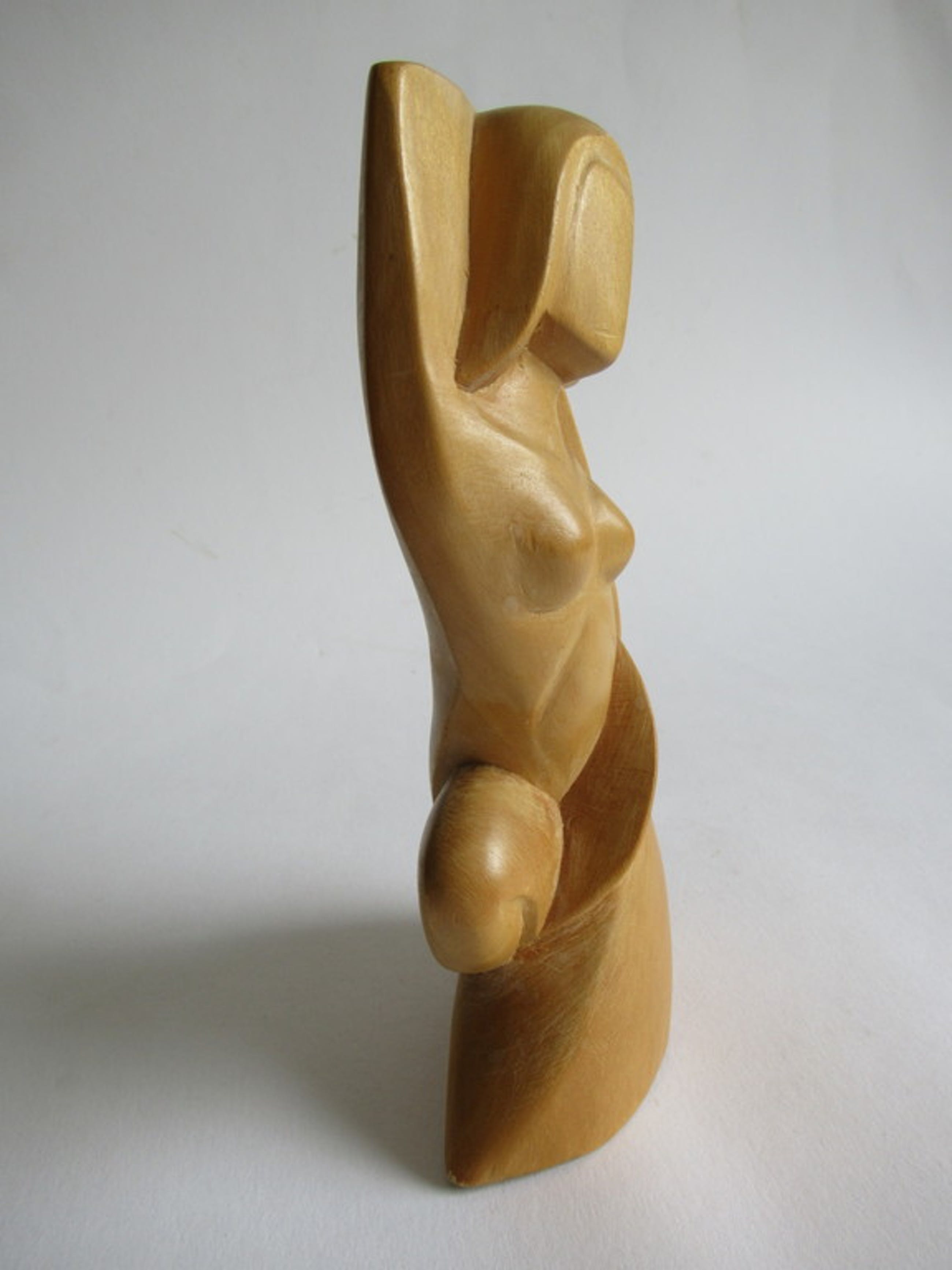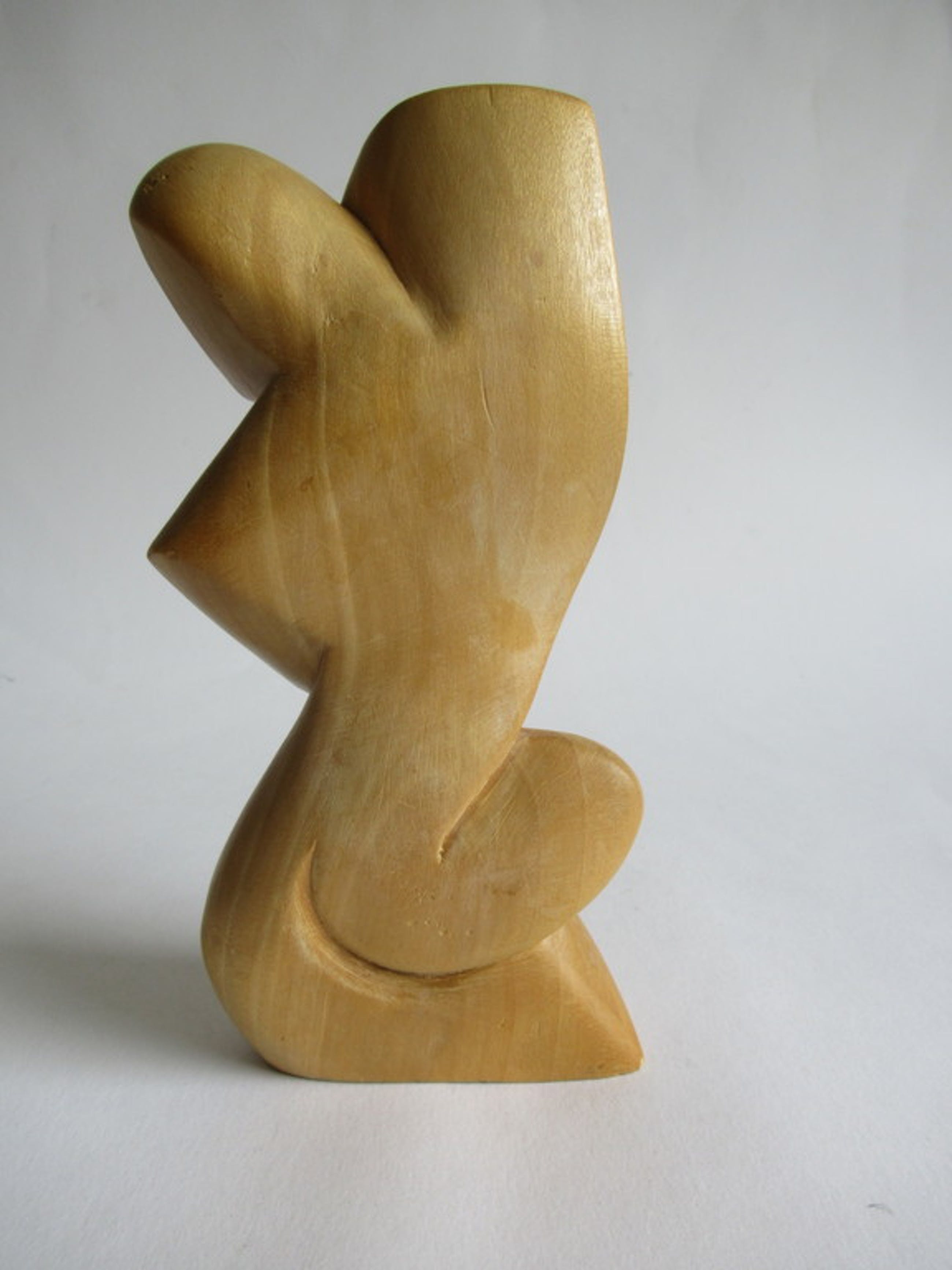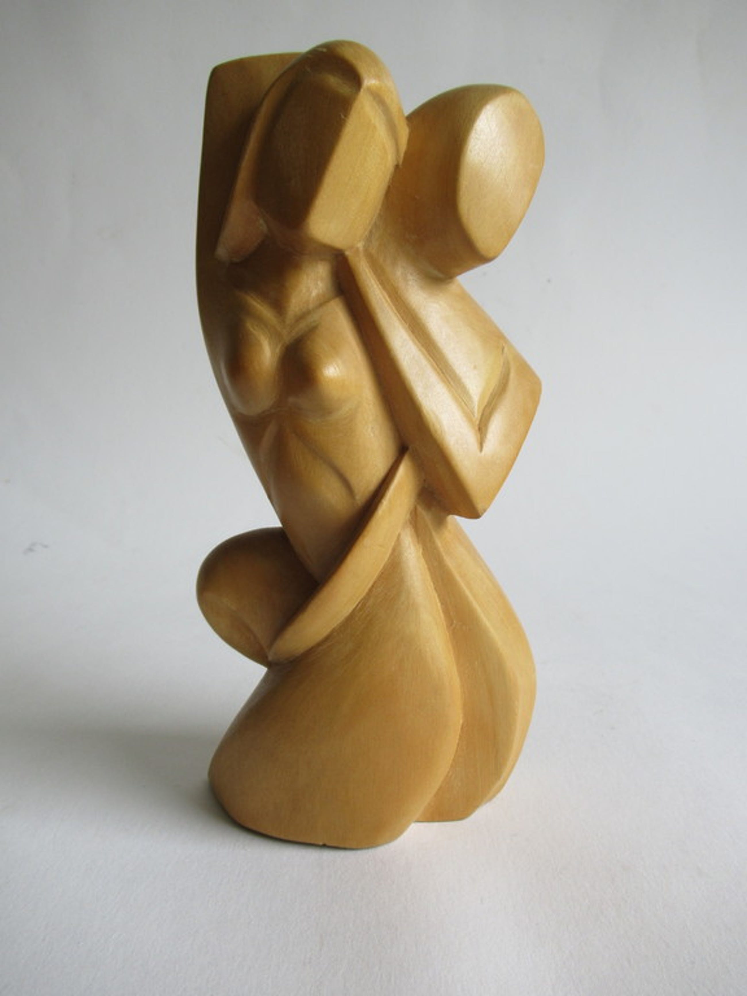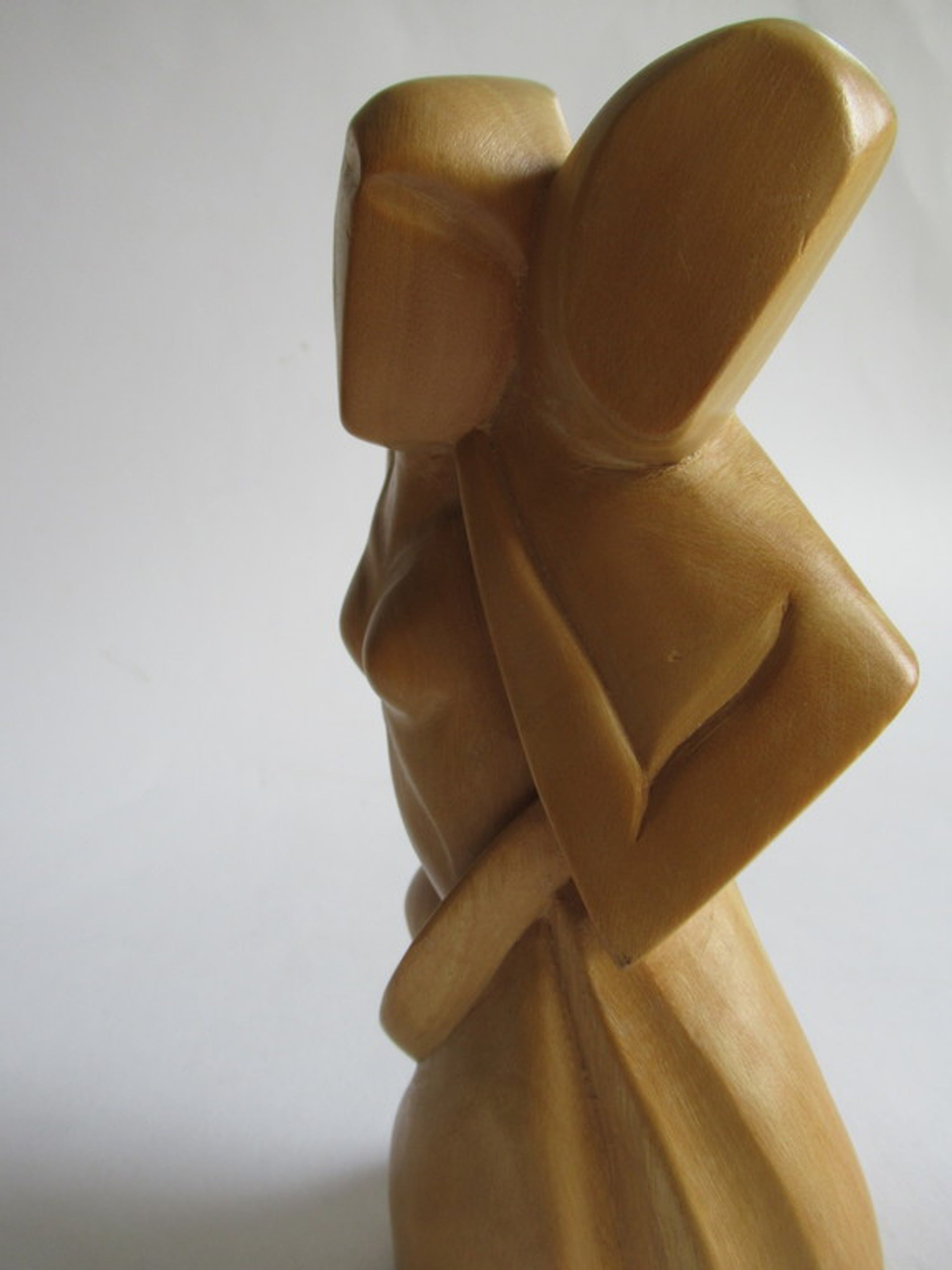 Mooi houtenbeeld van een gestileerd liefdespaar.