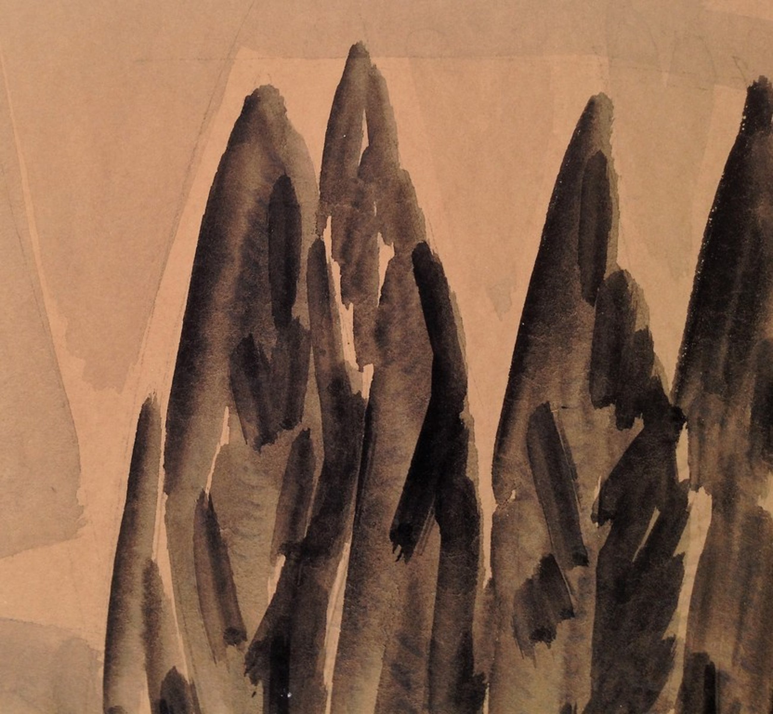 Onbekend - Onbekende Kunstenaar: Inkt Tekening , Landschap St-Paul - Bergense school stijl. - Verkocht