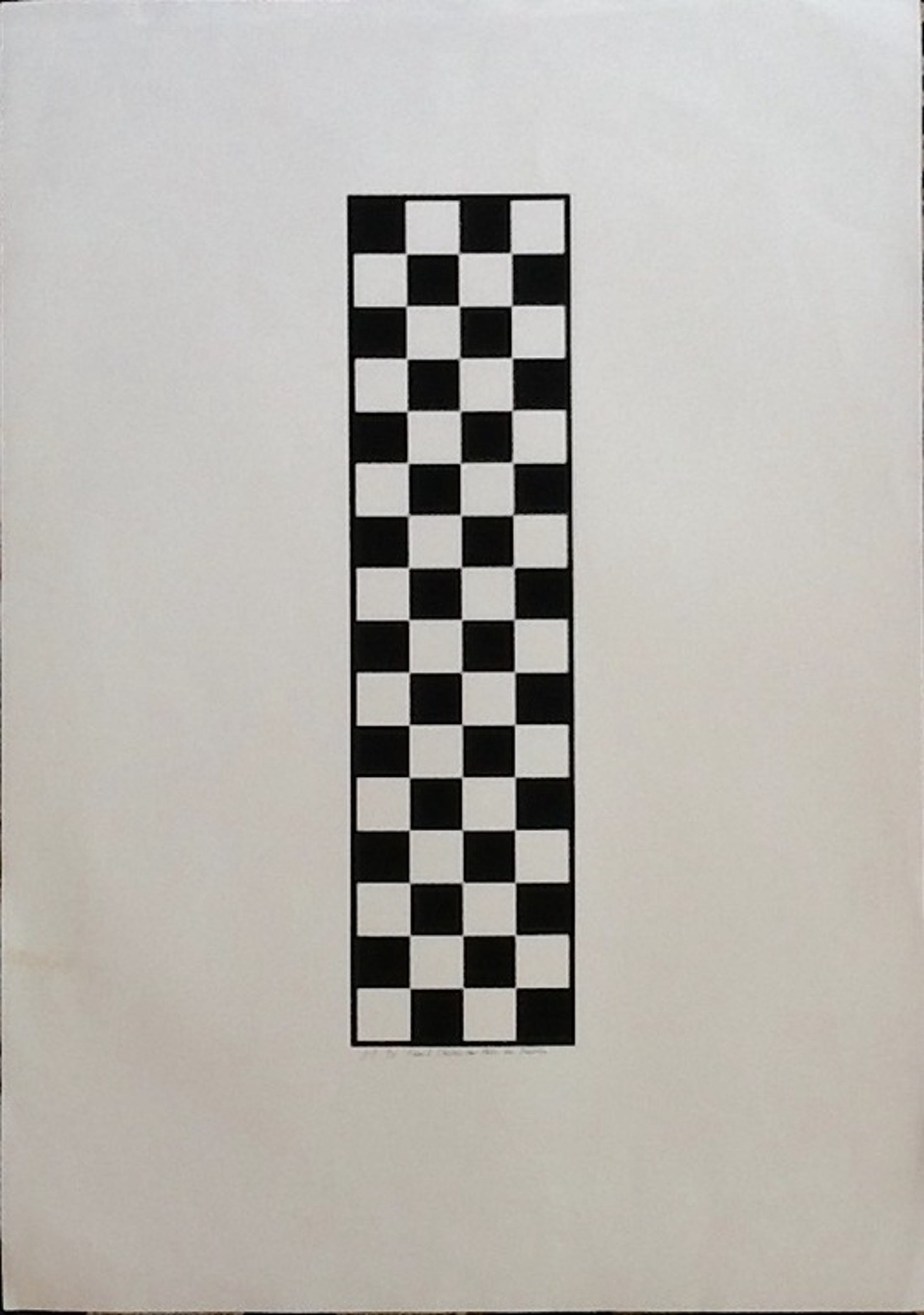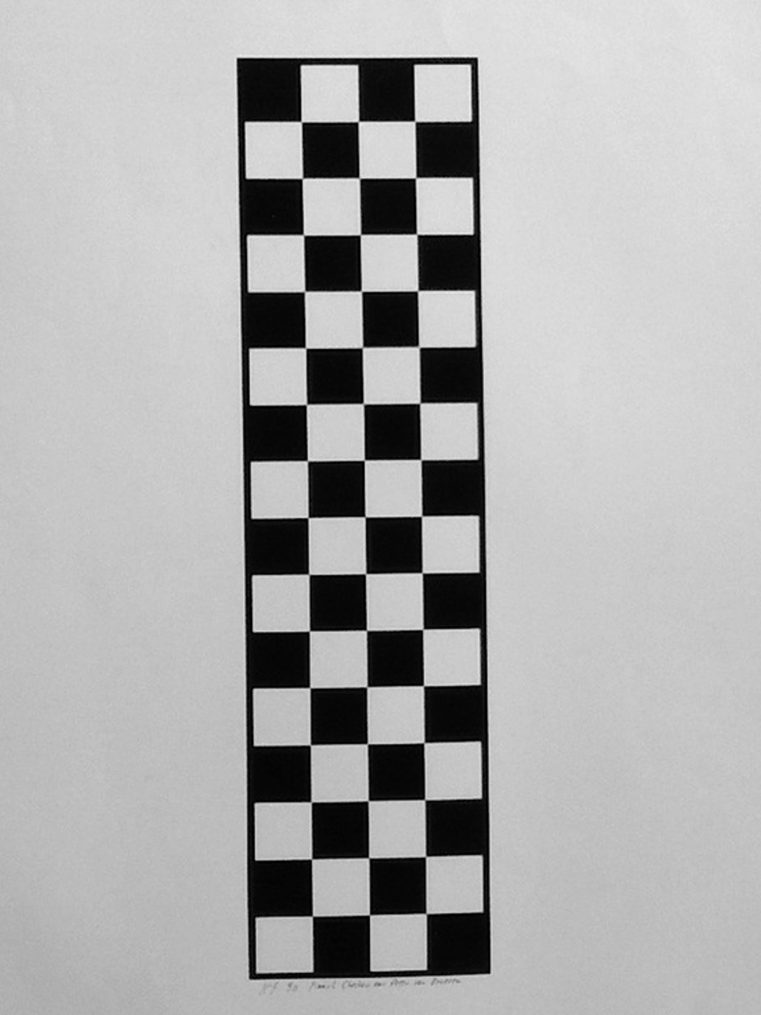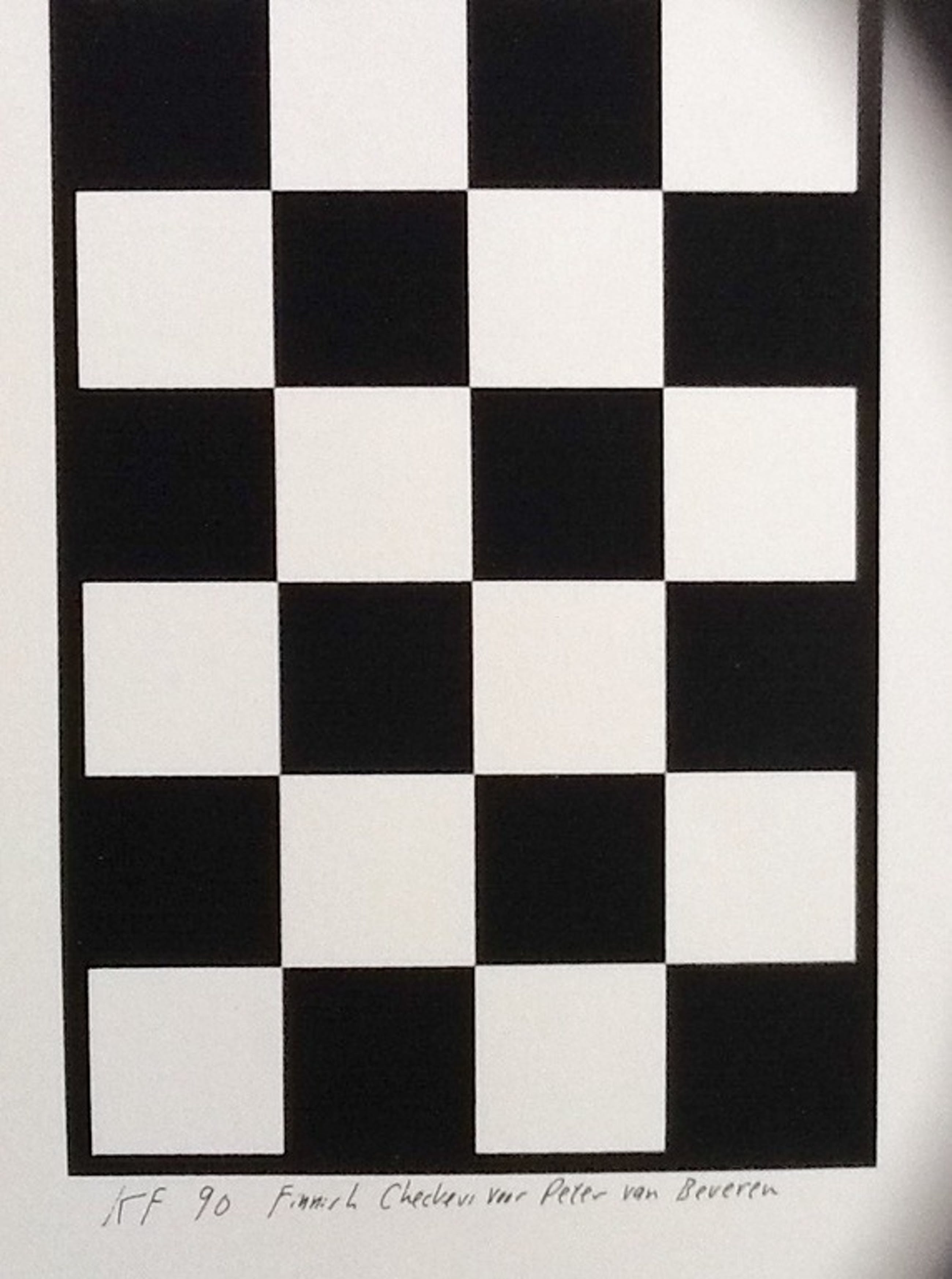 Mooie grote zeefdruk van schaakbord (Gubbels?) gesigneerd KS 90