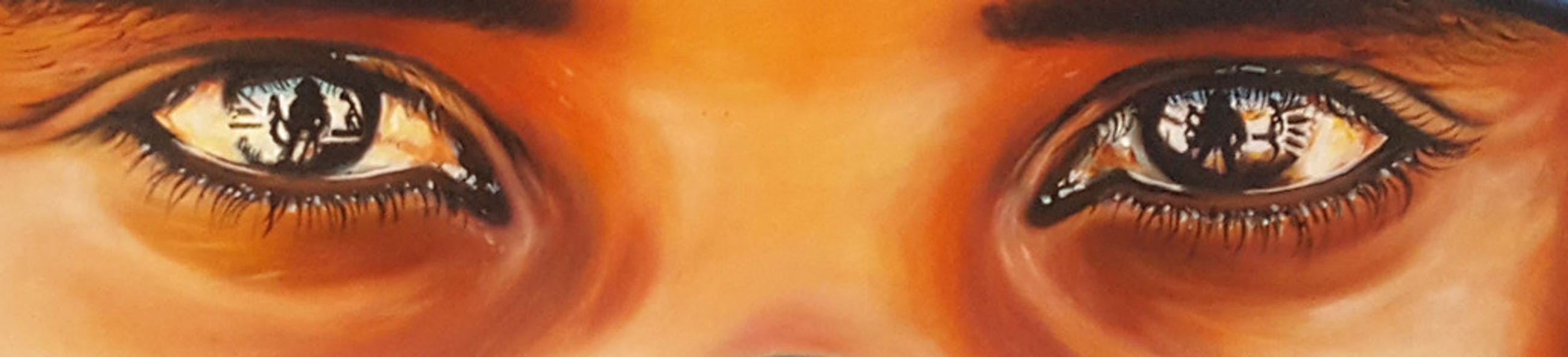 Prachtig schilderij van mysterieuze dame met indringende ogen.