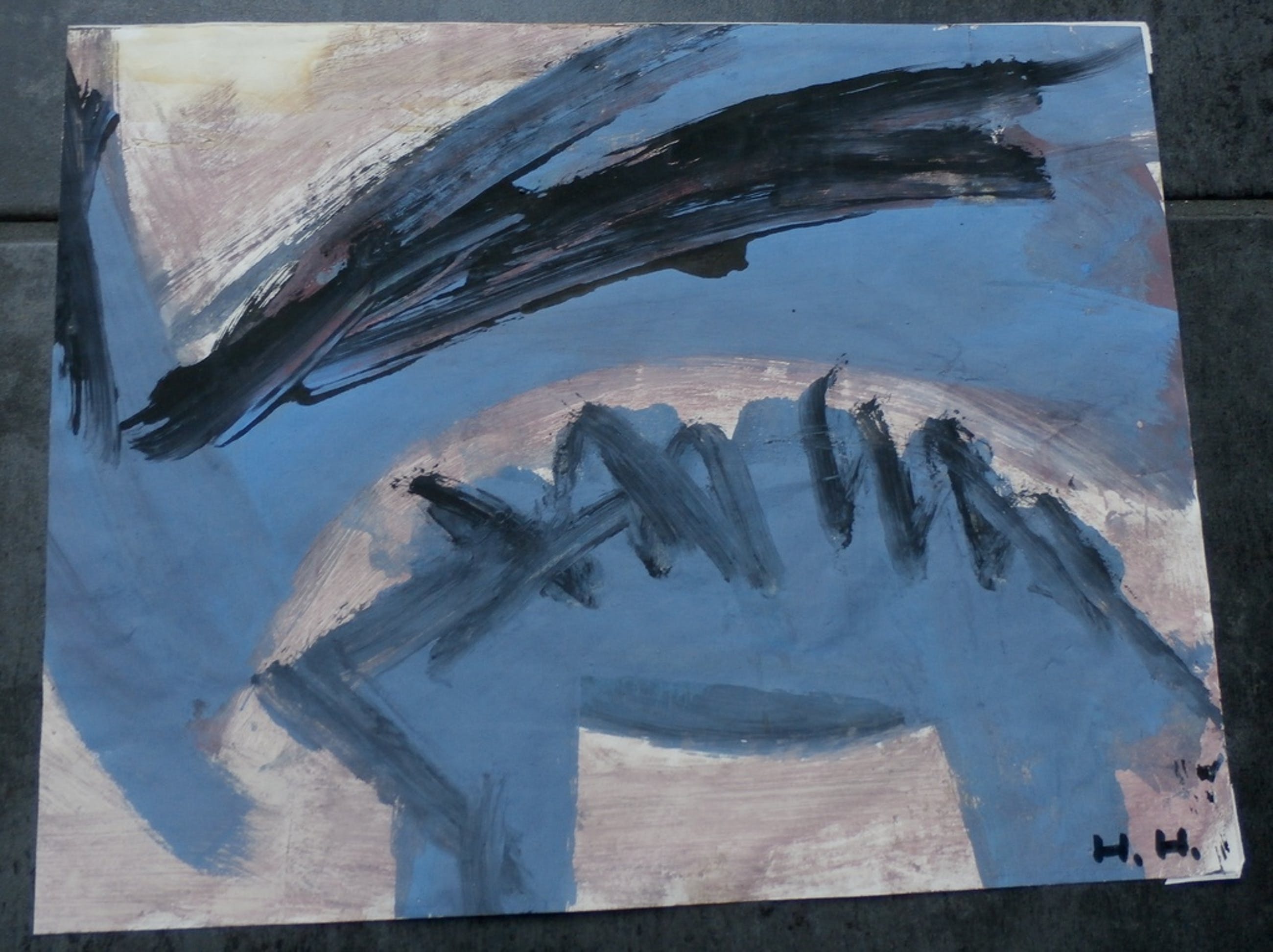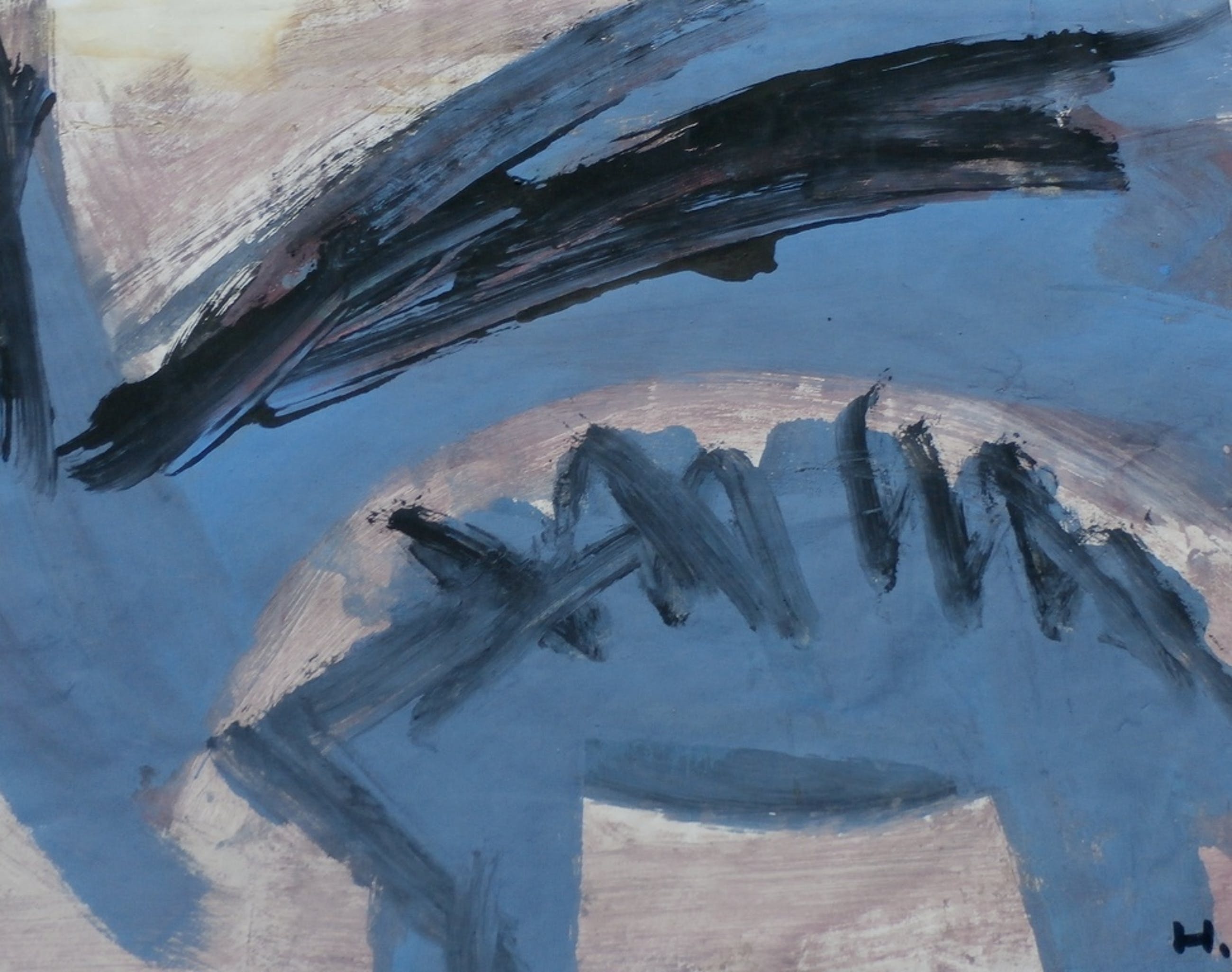 Olie verf op papier van een voor mij onbekende kunstenaar-H.H. Voor mij onbekend, maar misschien weet een van u wie dit betreft? Afmetingen blad: H21 xb26.5. Het werk is rechtsonder gesigneerd  door de kustenaar. Conditie: in goede staat. Er zitten plakresten op de achterzijde van een vorige inlijsting.  Goed ingelijst valt dit onder de passepartout/in de lijst.