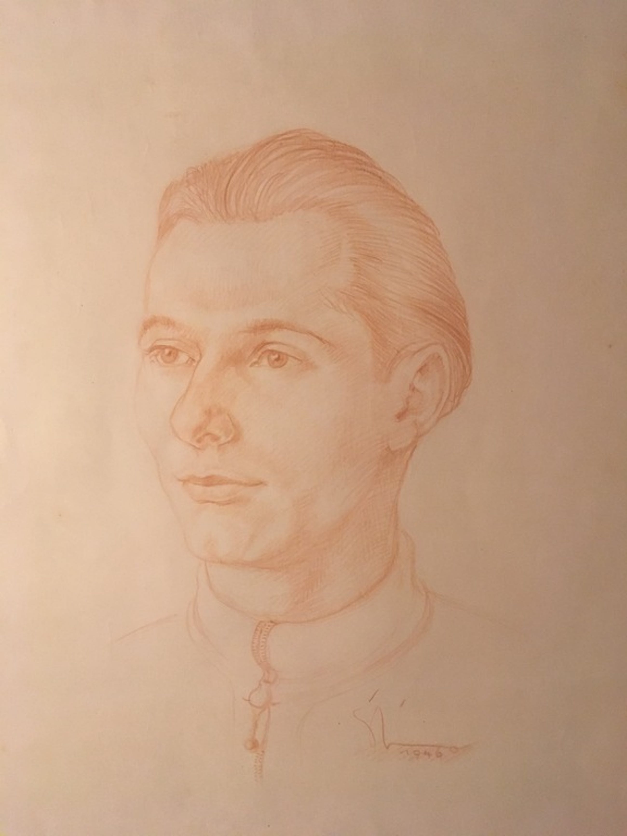 Onbekend - Onbekende Kunstenaar - Portret 1946 gesigneerd. - Verkocht