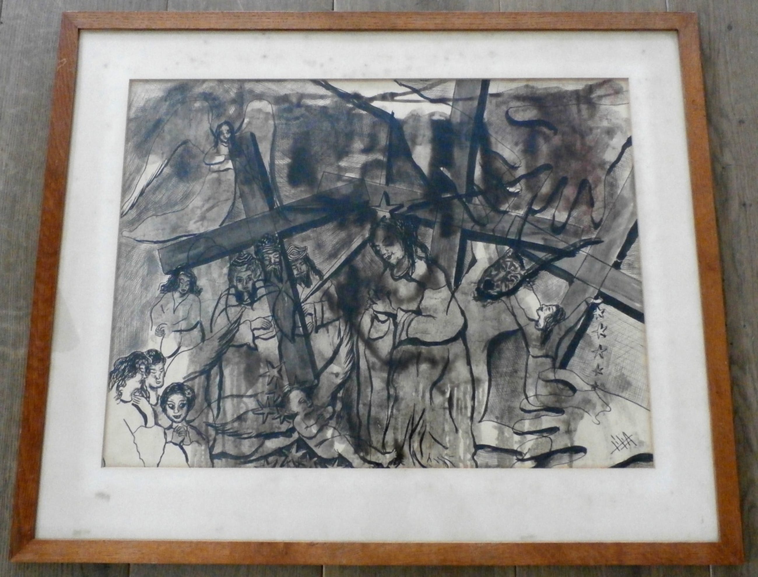 Mooie potloodtekening van een voor mij onbekende kunstenaar. Afmetingen incl. lijst: H68 x b82,5 cm. Afmetingen tekening: H48,5 x b64 cm. Conditie: in goede staat.