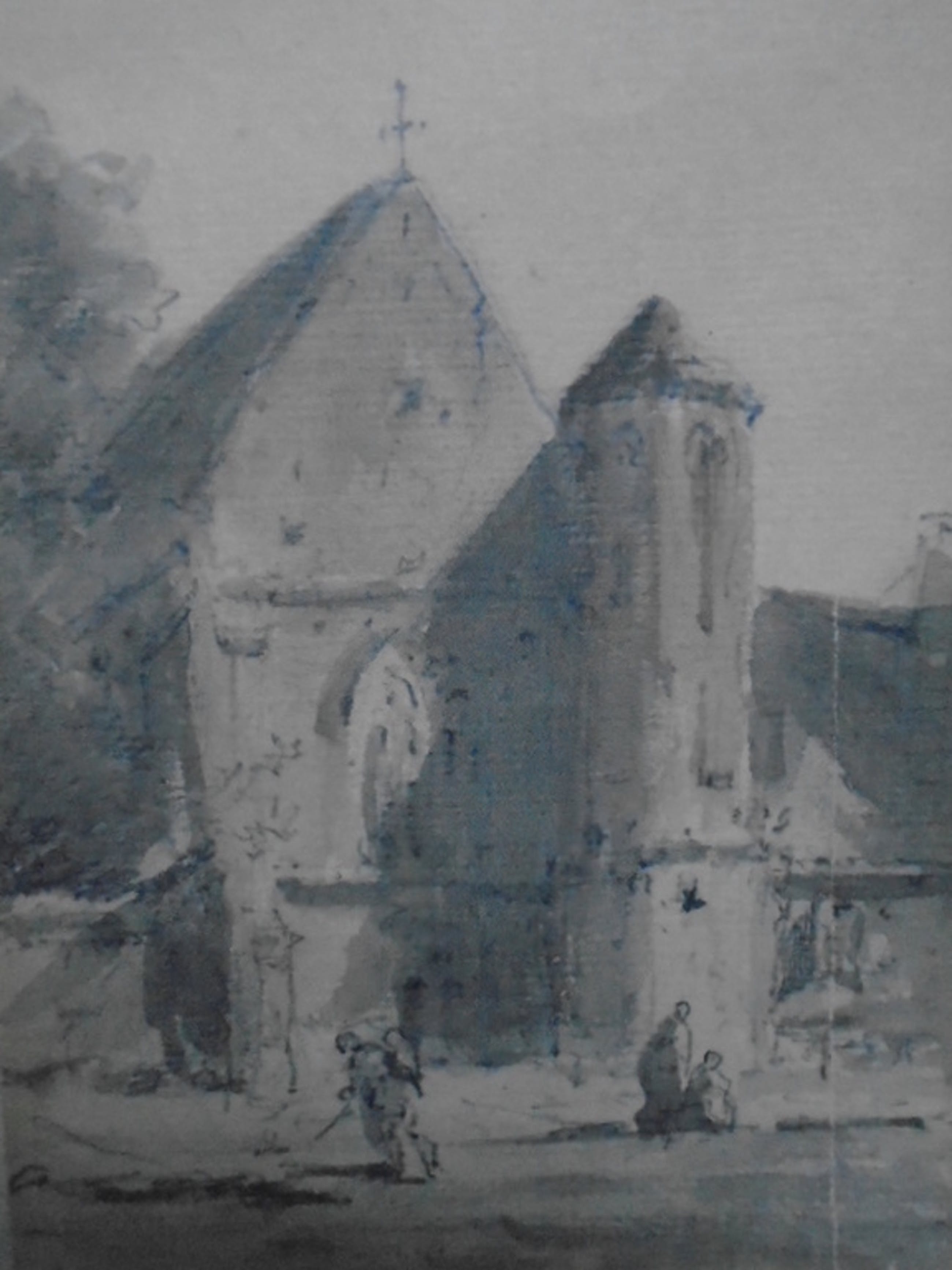 Potlood en sepia toe te schrijven aan Johannes Bosboom. Niet gesigneerd.