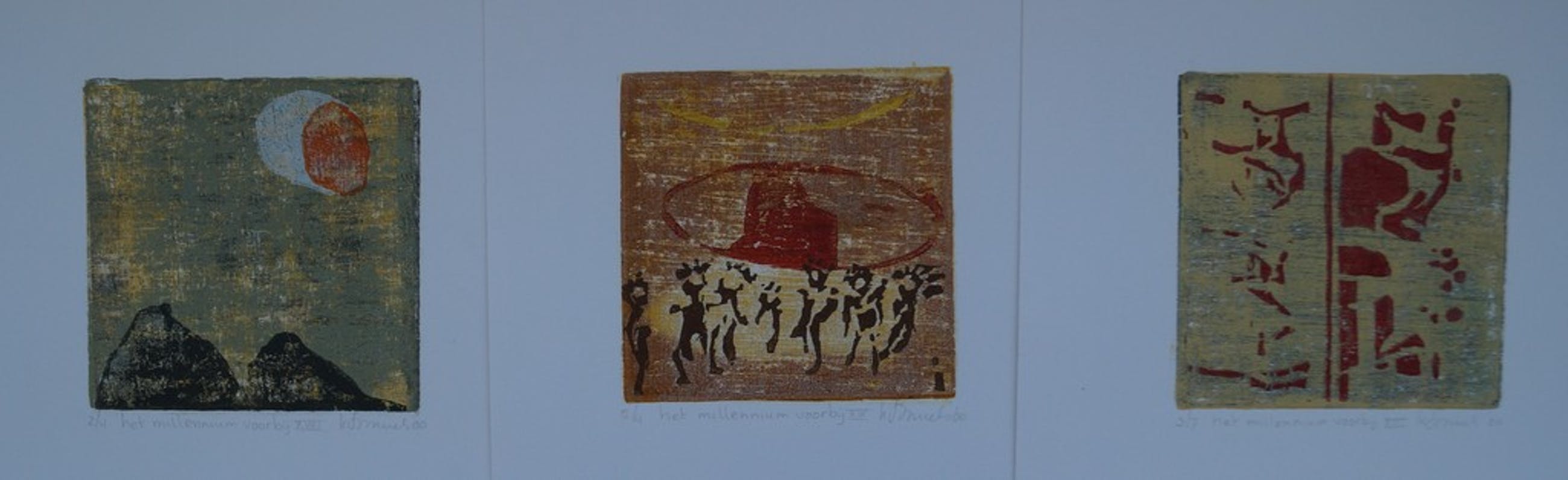 Onbekend - Onbekende kunstenaar - serie van 3 etsen - het millenium voorbij - Verkocht