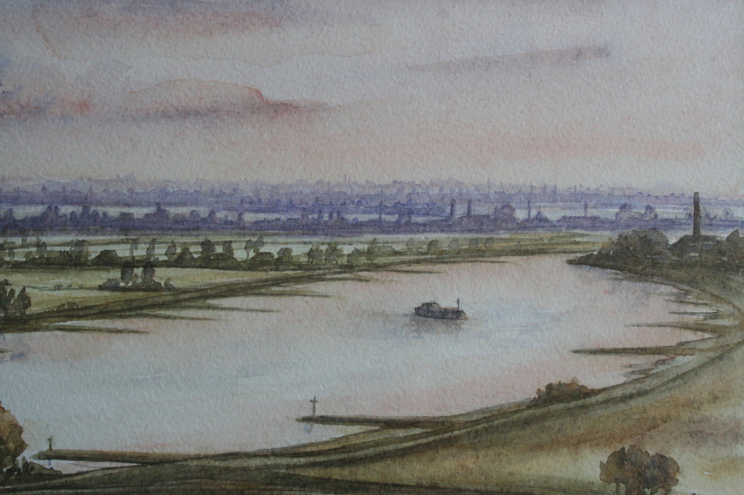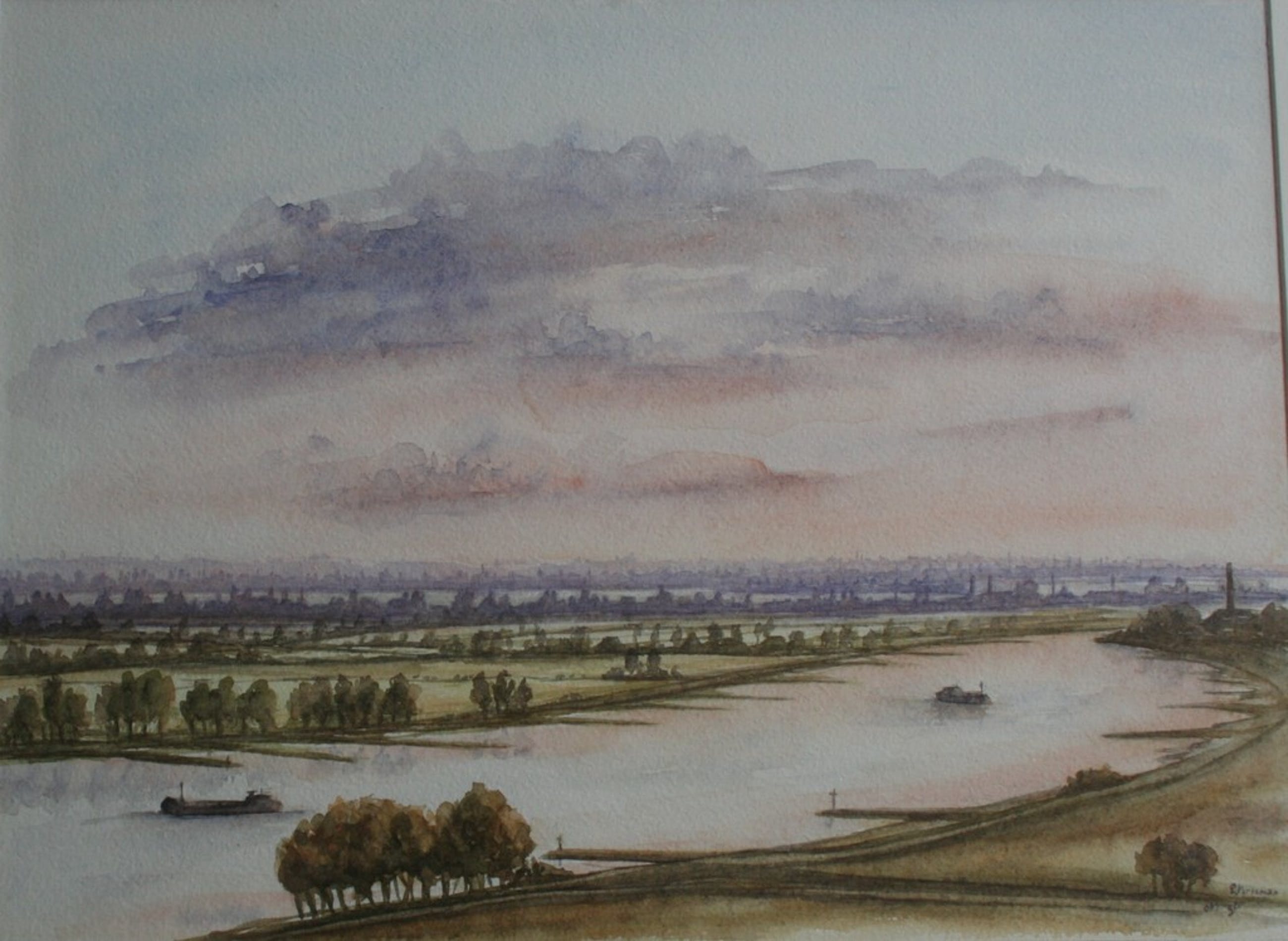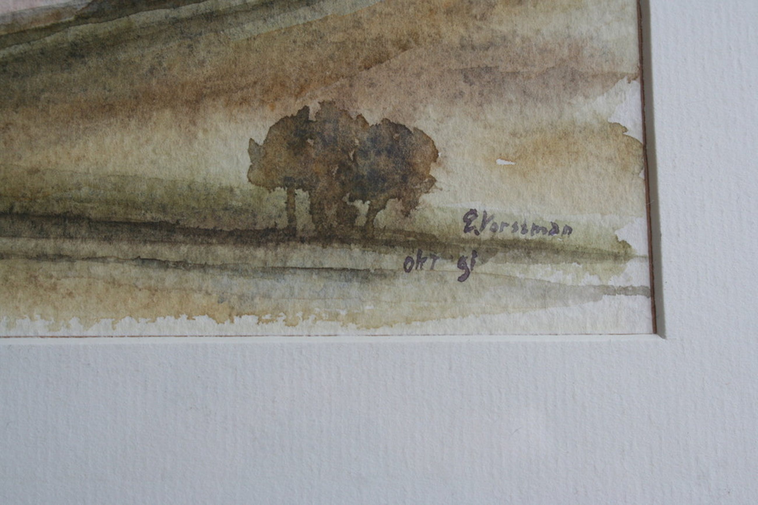 Aquarel onder passe partout en glas in professionele zwarte aluminium lijst. Signatuur niet goed leesbaar. Er is '91 bij geschreven. Op passe partout paar minimale vlekjes. Afmeting binnen passe partout 46 x 34. Met lijst 61 x 51 cm.