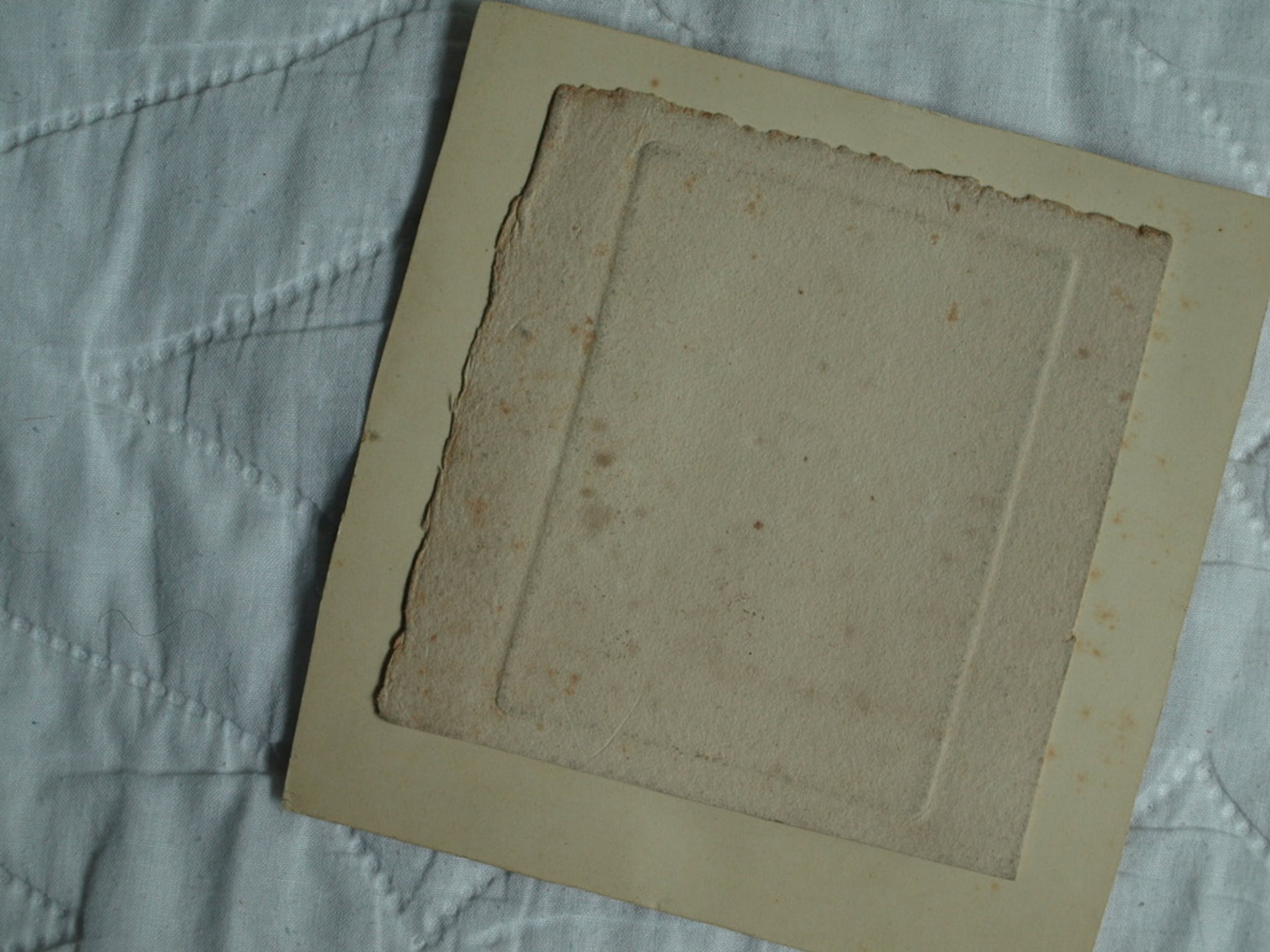 Afmetingen: Passe-partout: 15 x 15 cm. Blad, 12 x 12 cm. Beeld: 10,5 x 8 cm.