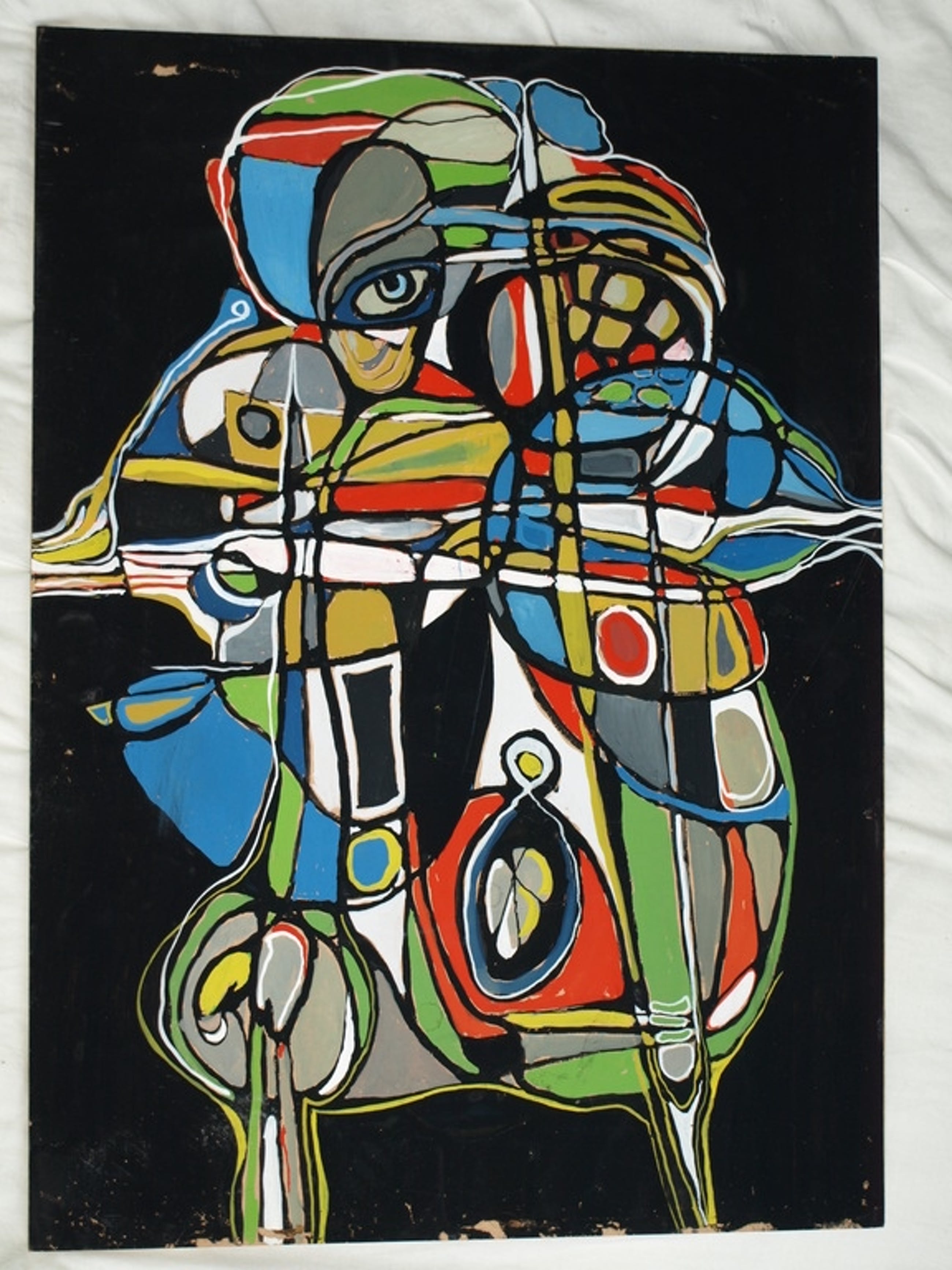Een kleurrijke gouache van een ons onbekende kunstenaar uit ca 1970.
