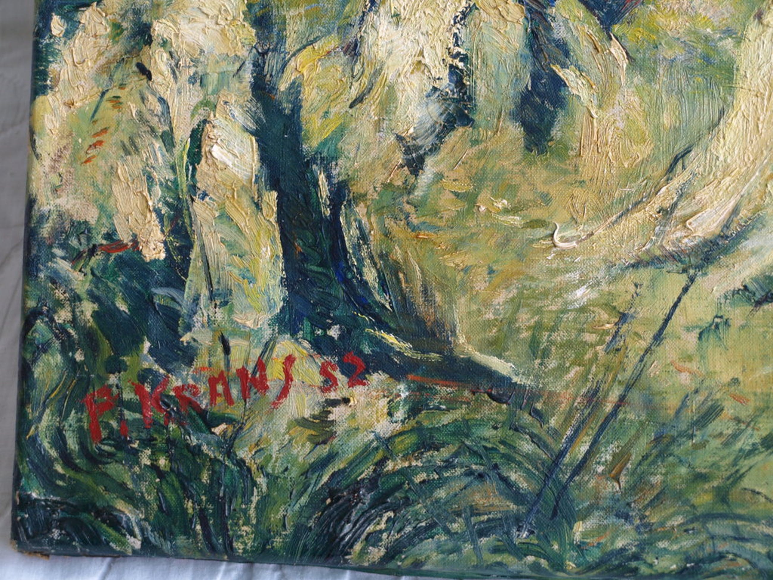 Het werk is linksonder (onduidelijk) gesigneerd en wij hebben helaas geen verdere informatie over de kunstenaar.