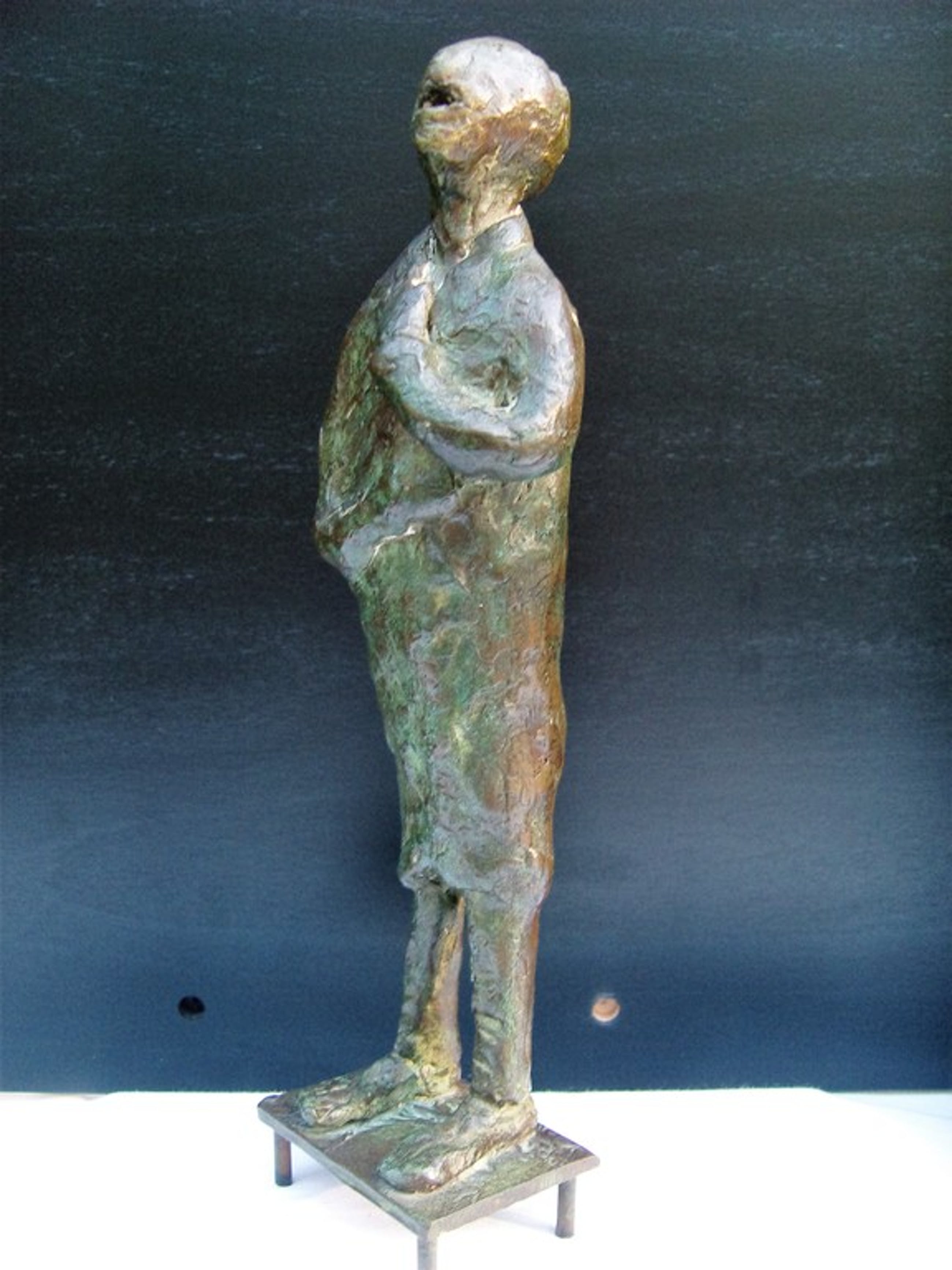 Zeer bijzonder beeld van een staande man. Het beeldje is van een mooie kwaliteit en moet van een groot kunstenaar zijn en heeft kenmerken van sommige koppen van Karel Gomes.