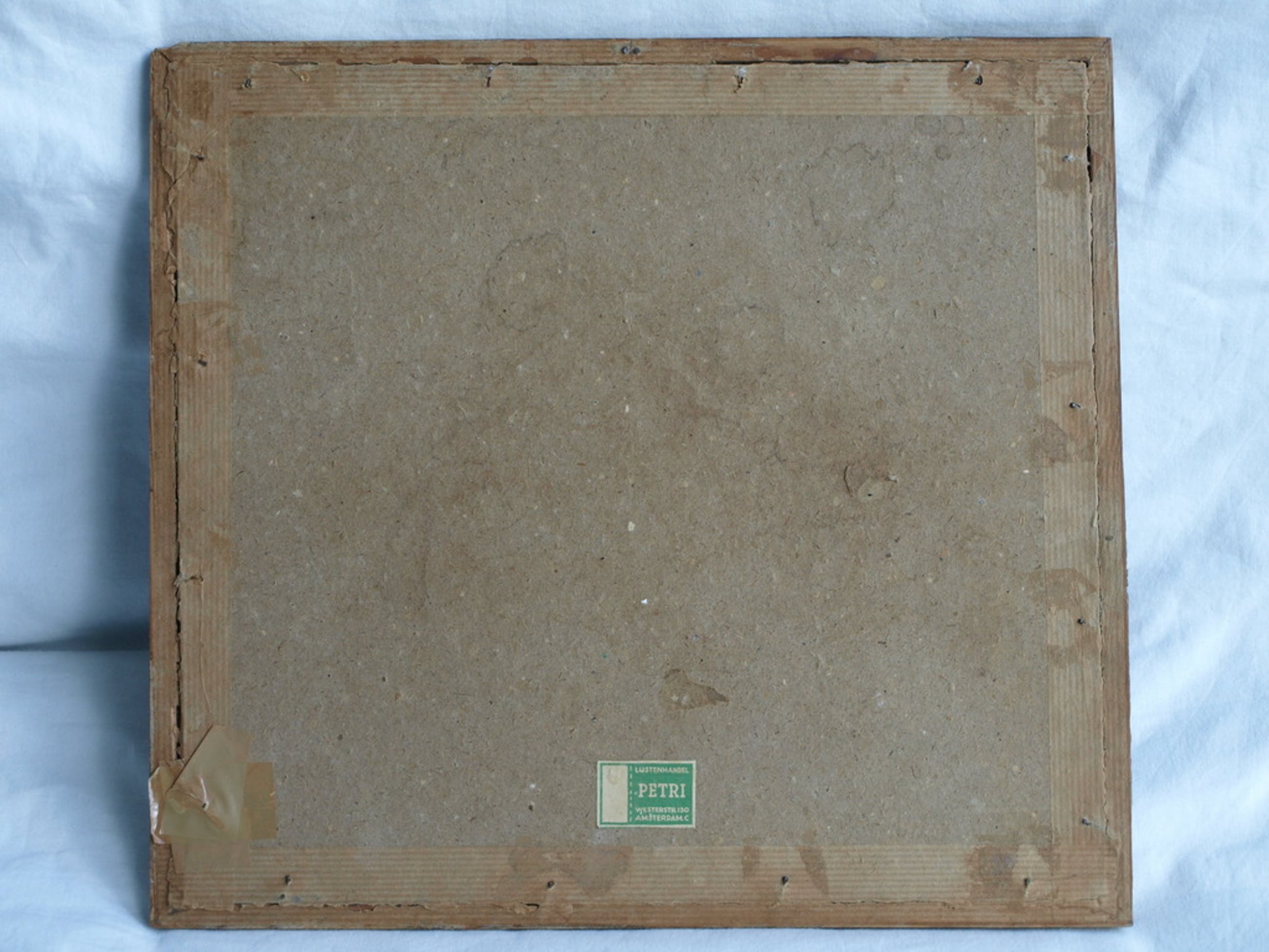 -Ingelijst in de originele houten lijst met glasplaat. Ingelijst door Petri, Westerstraat Amsterdam.