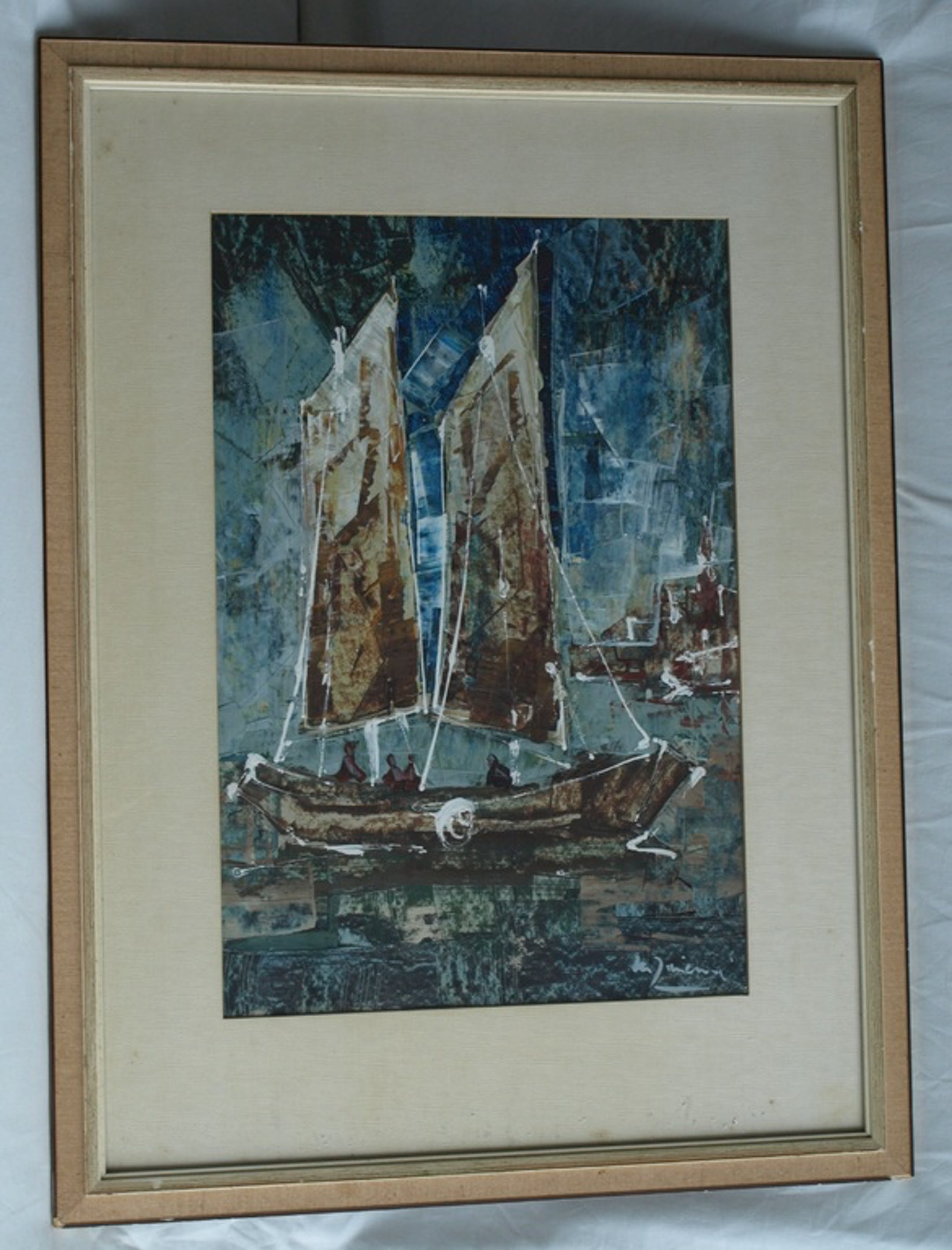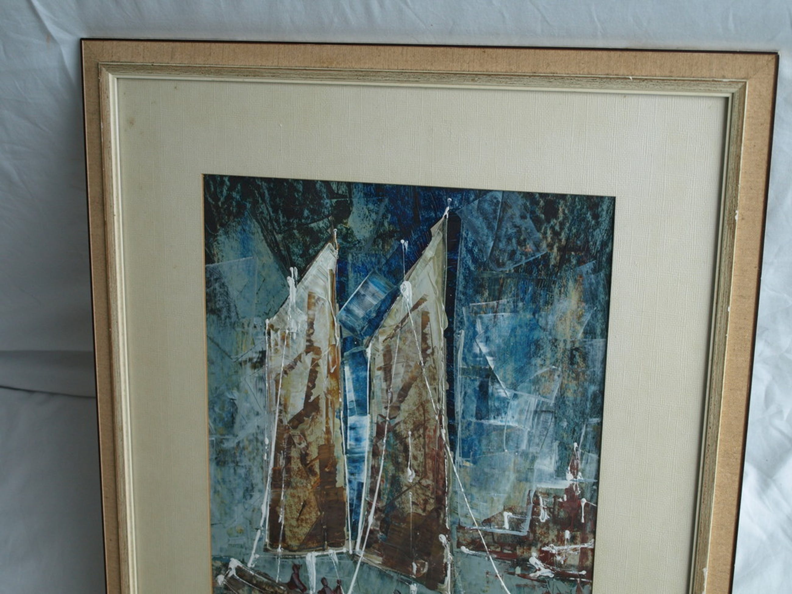 -Conditie: In goede staat. Van de dik opgebrachte witte verf zijn kleine stukjes verf ‘afgebladderd’. Het passe-partout heeft ‘zuurvlekjes’.