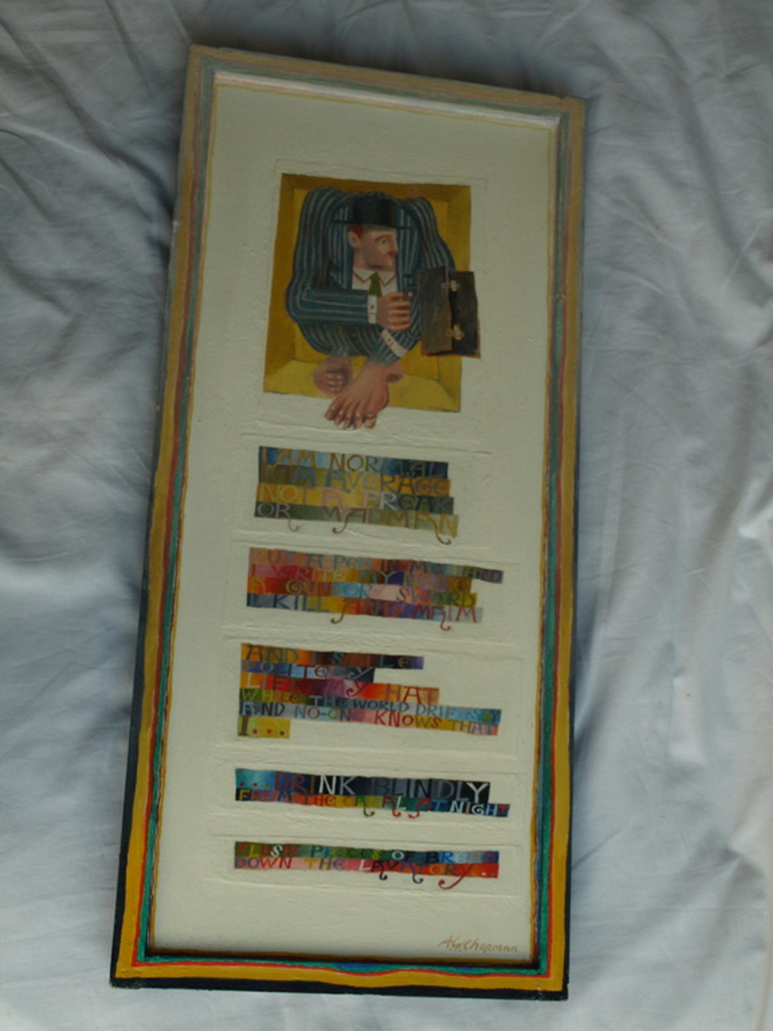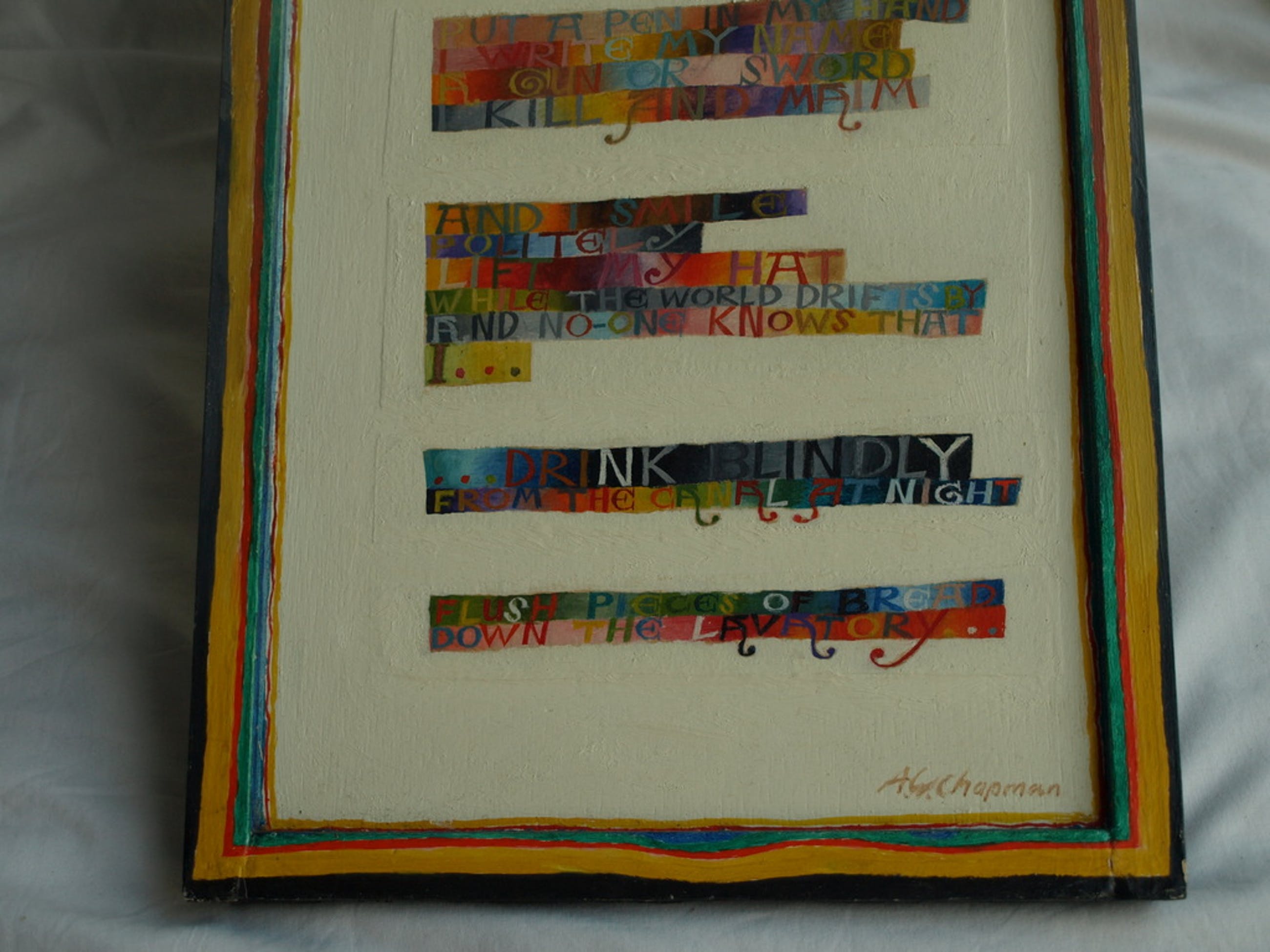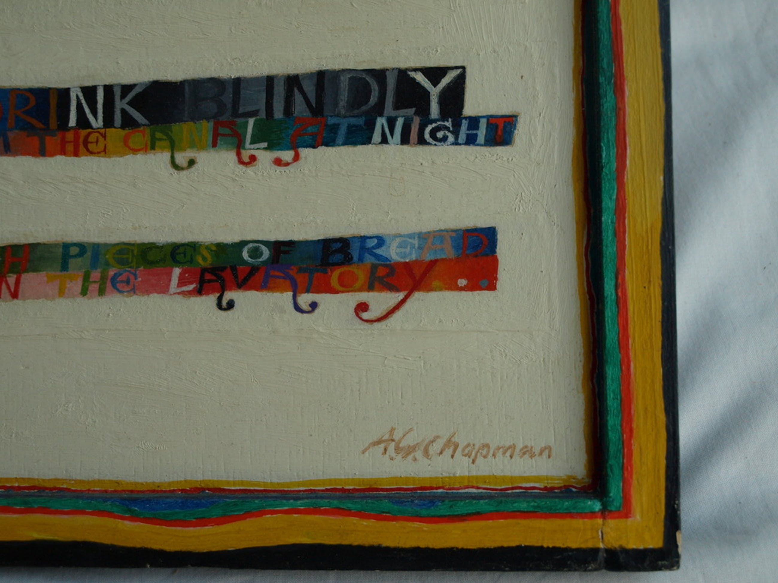 Een olieverfschilderij met een gedicht op hout van een ons onbekende kunstenaar.