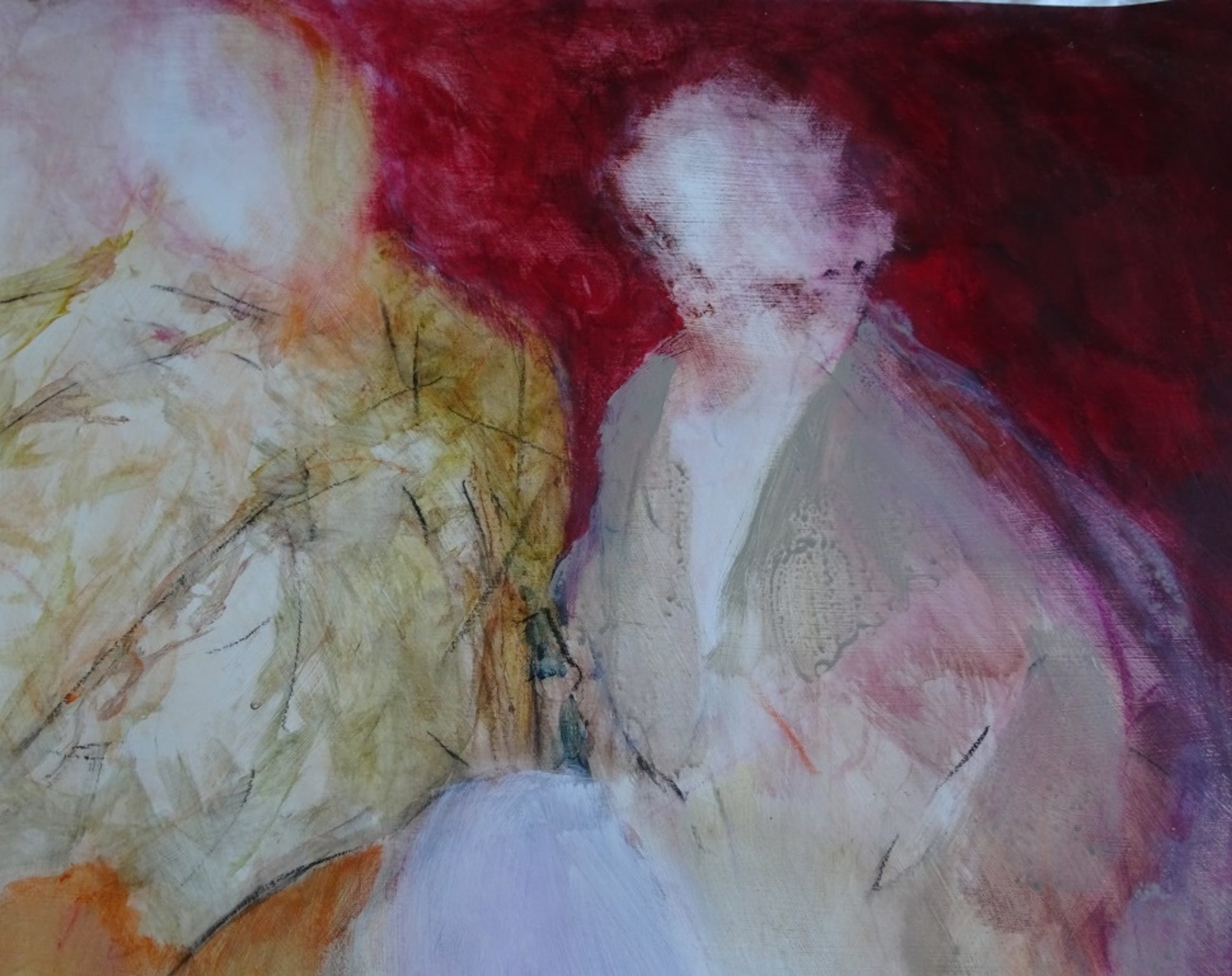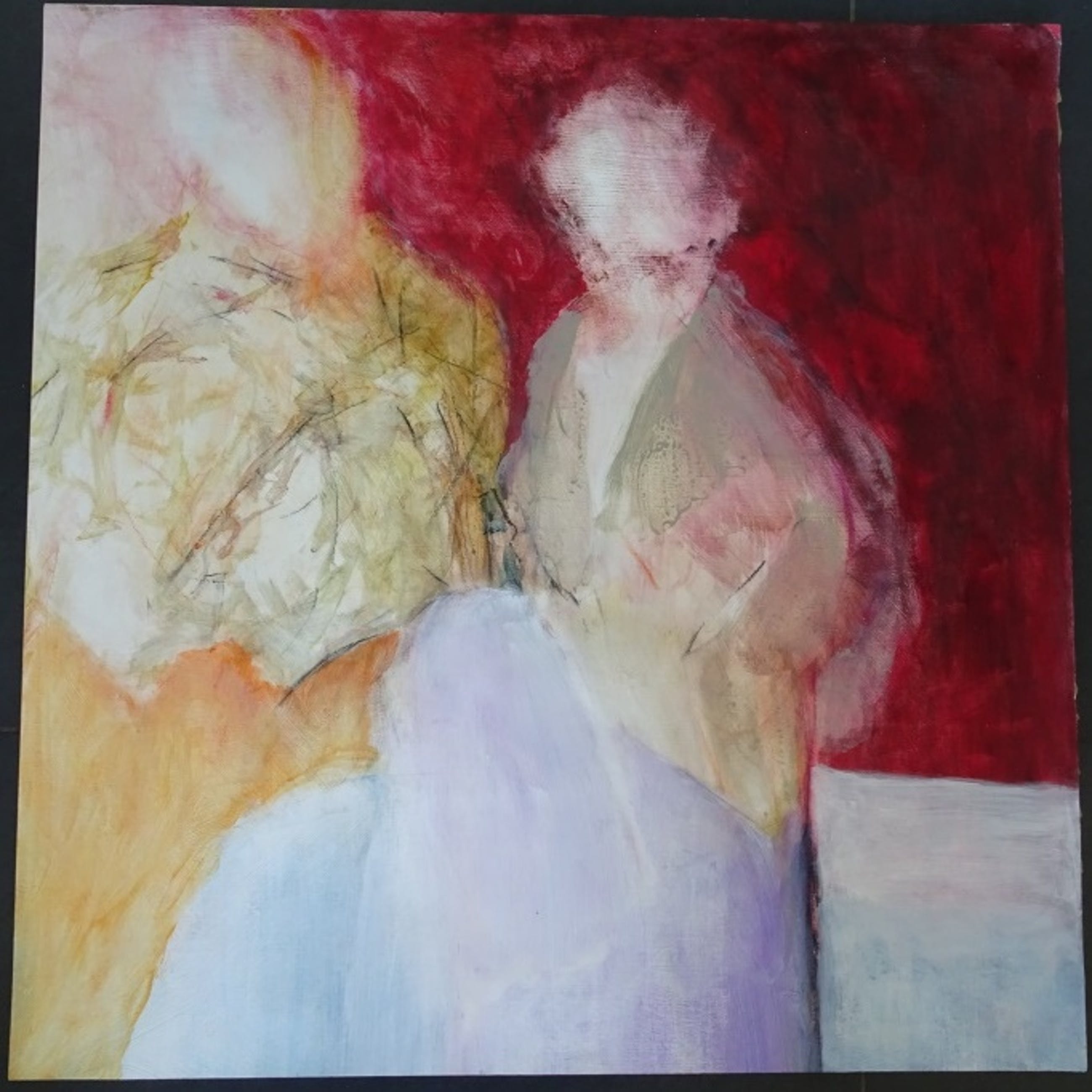 OnbereikbaarTwee figuren die elkaar niet kunnen bereiken.Mooie kleuren in goede vlakverdeling.Acryl op kartonAfmeting 50 x 60Niet ingelijstIn onberispelijke staat