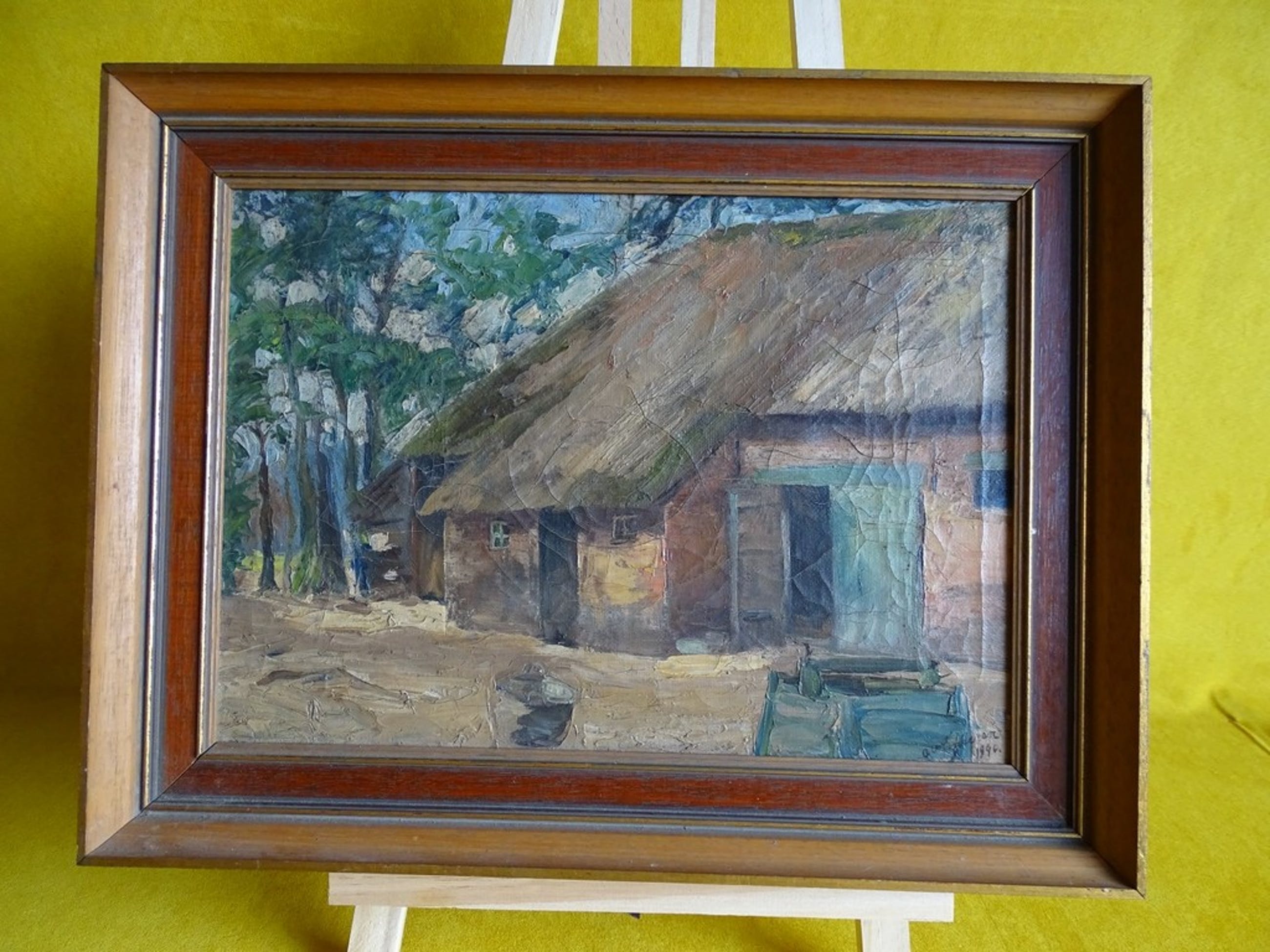 Olieverf schilderij op doek van een hoeve.