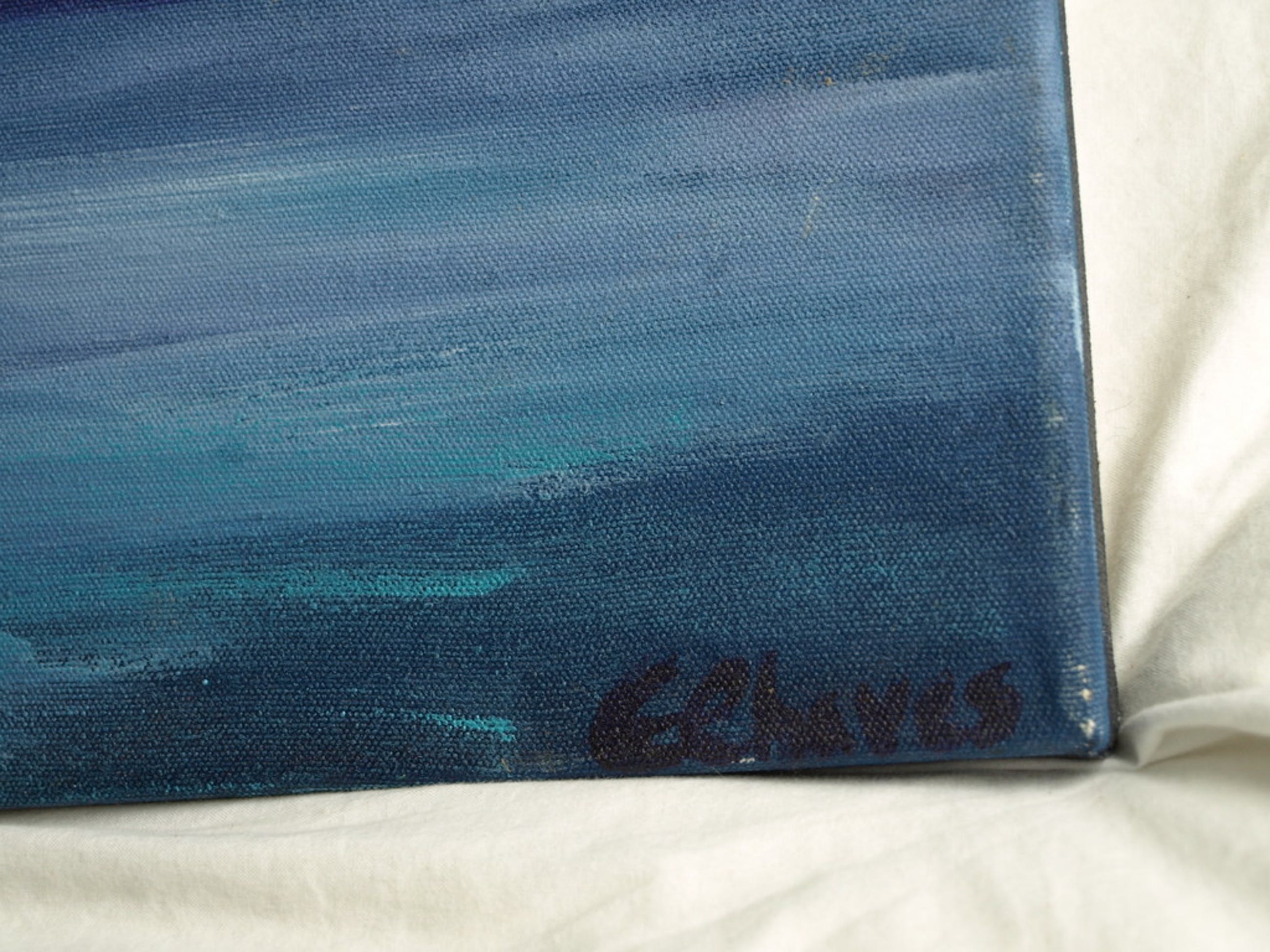 Gesigneerd (moeilijk leesbaar) rechtsonder en ook op de achterkant van het doek staat informatie geschreven (ook moeilijk / niet leesbaar). Helaas hebben wij geen verdere informatie over de kunstenaar.