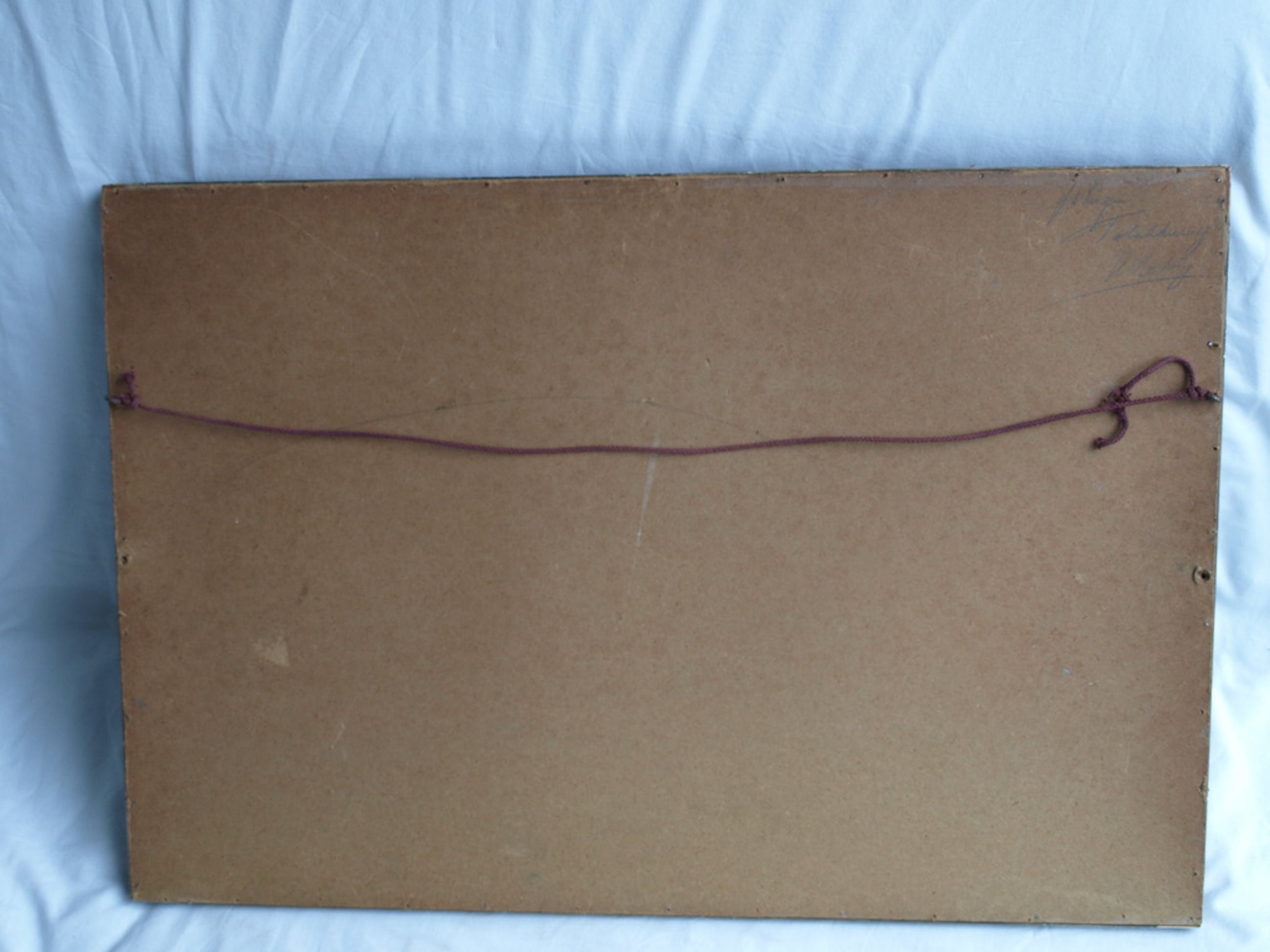 Het werk is gesigneerd, maar helaas hebben wij geen informatie over de kunstenaar (S. Van Lingen? J. Van Linger?). Op de kartonnen achterplaat staat ook de naam (onduidelijk) geschreven van de kunstenaar en “Tolakkerweg Hollandsche Rading”. Mogelijk heeft de kunstenaar hier gewoond.