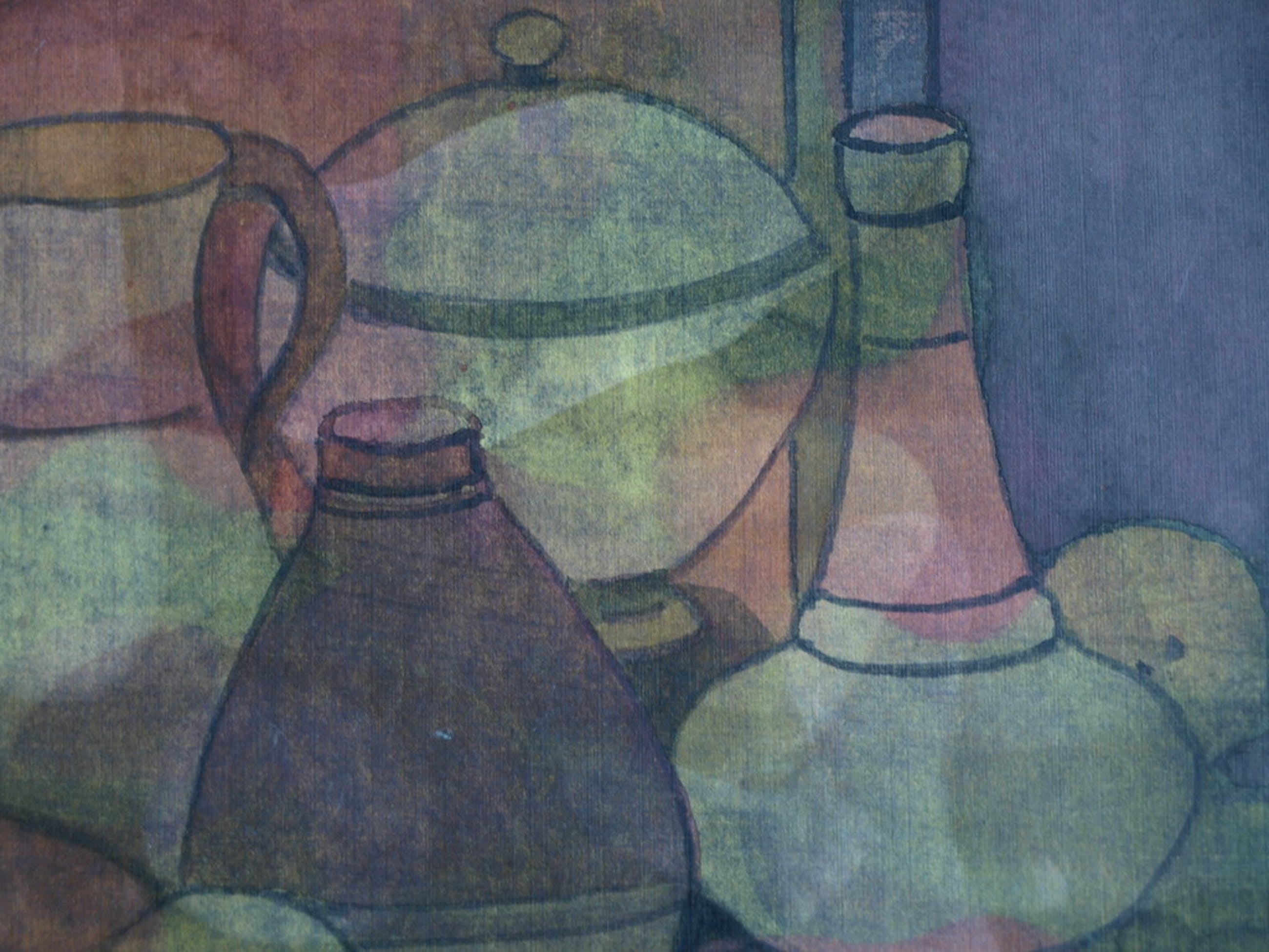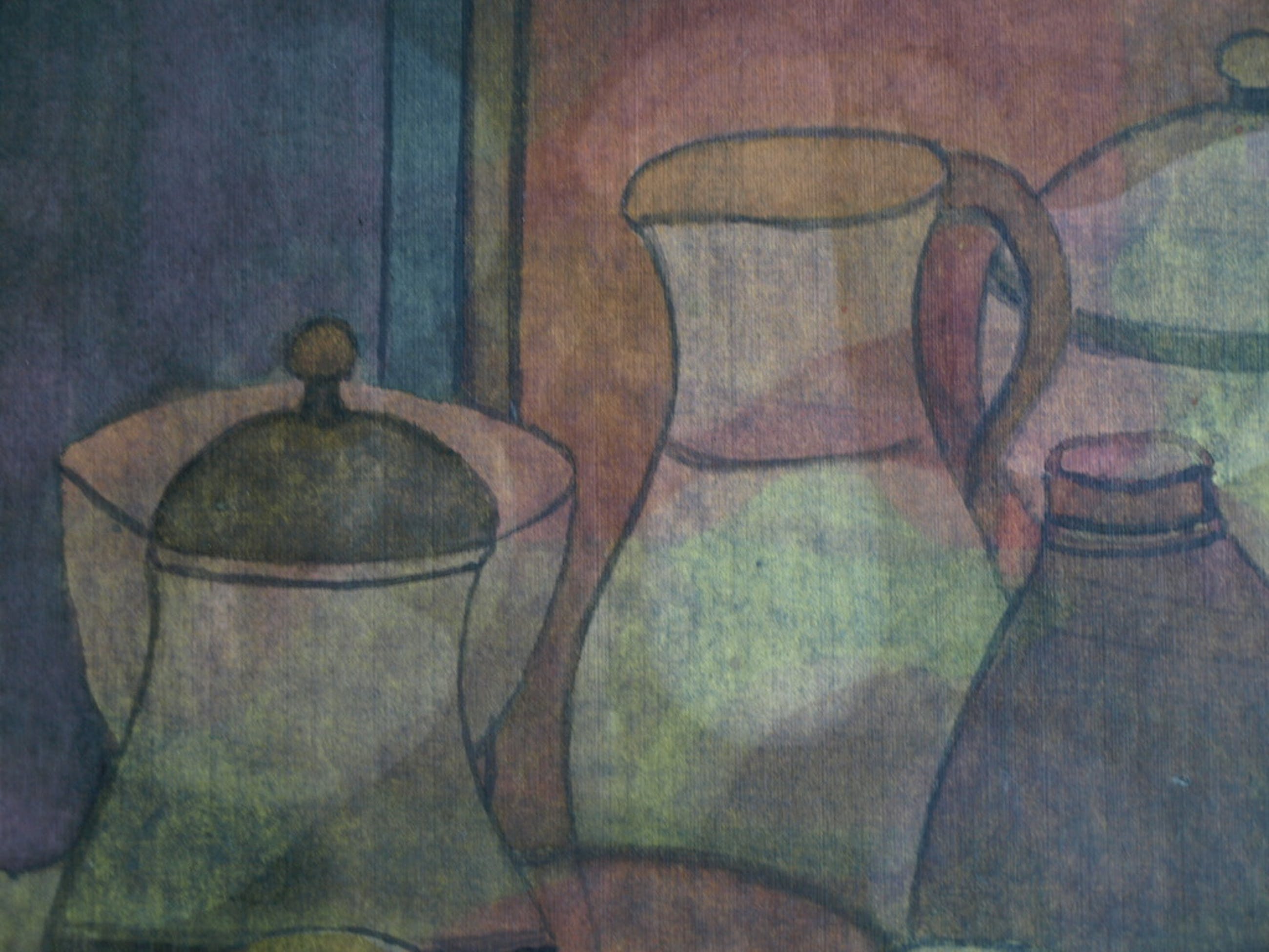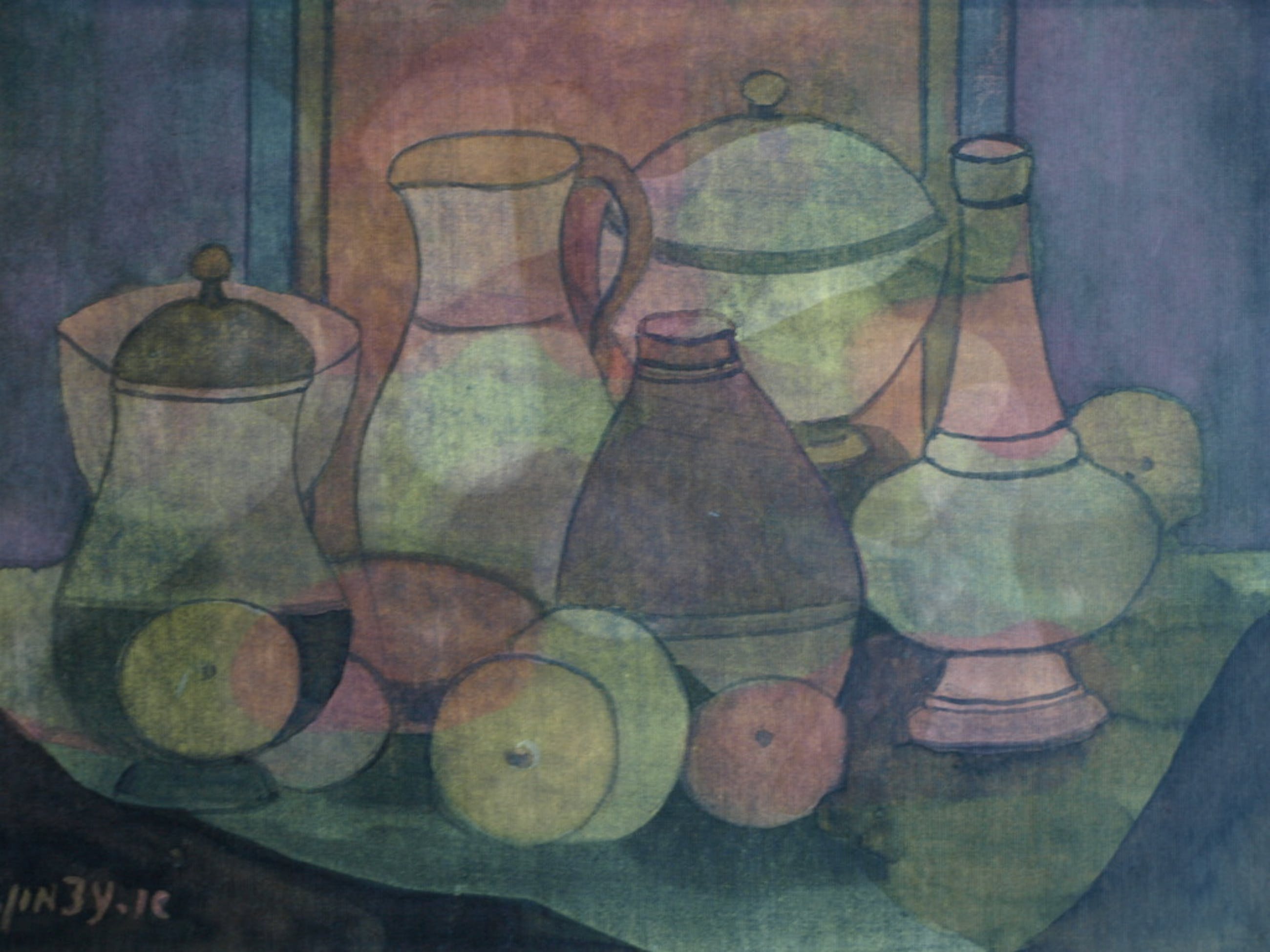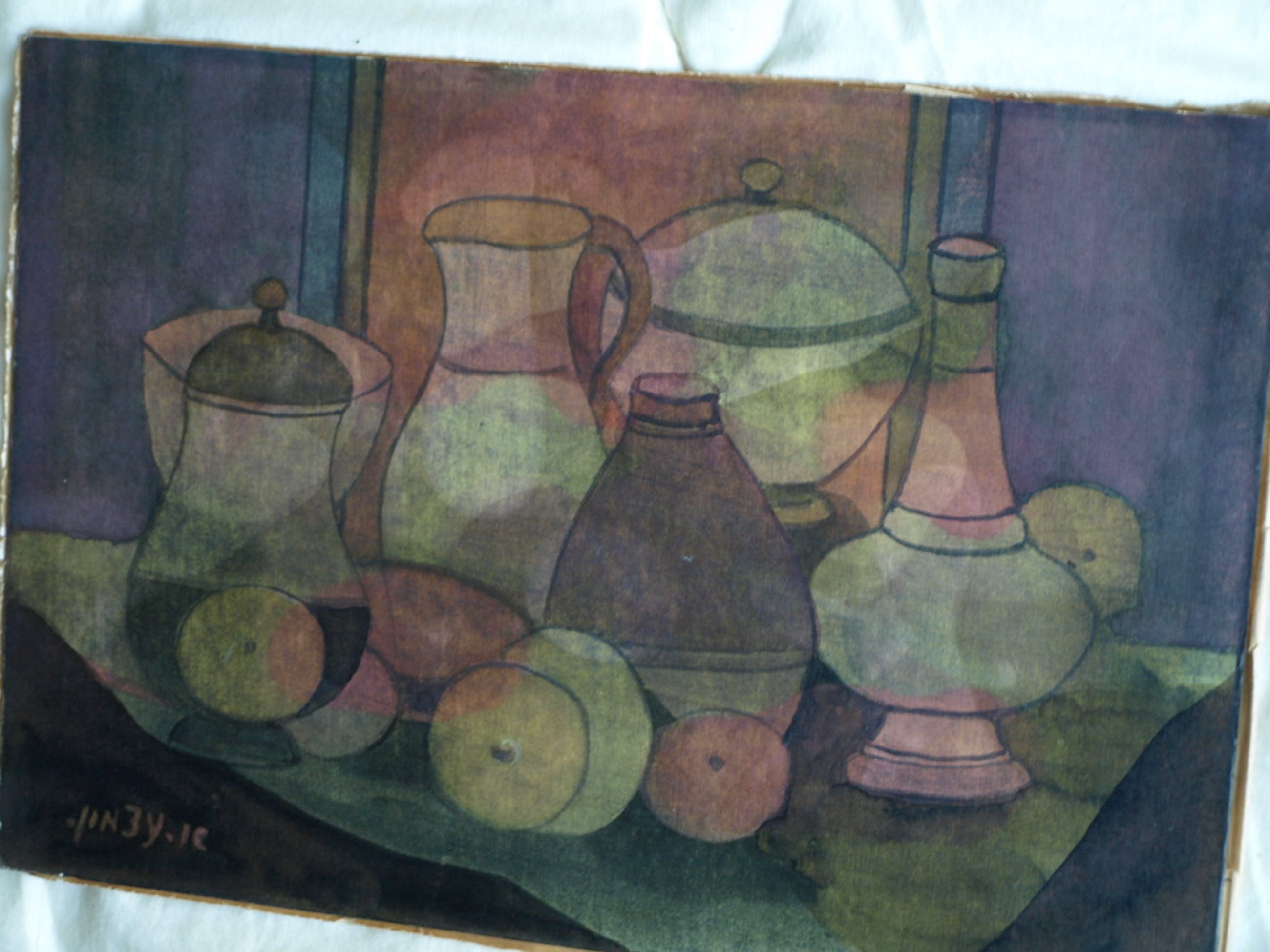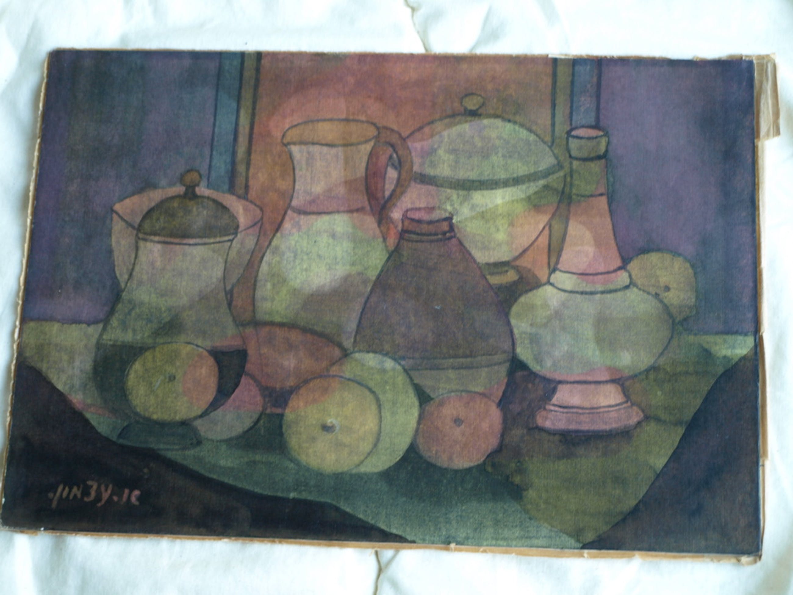 Een aquarel, geschilderd op board met een afbeelding van een stilleven.