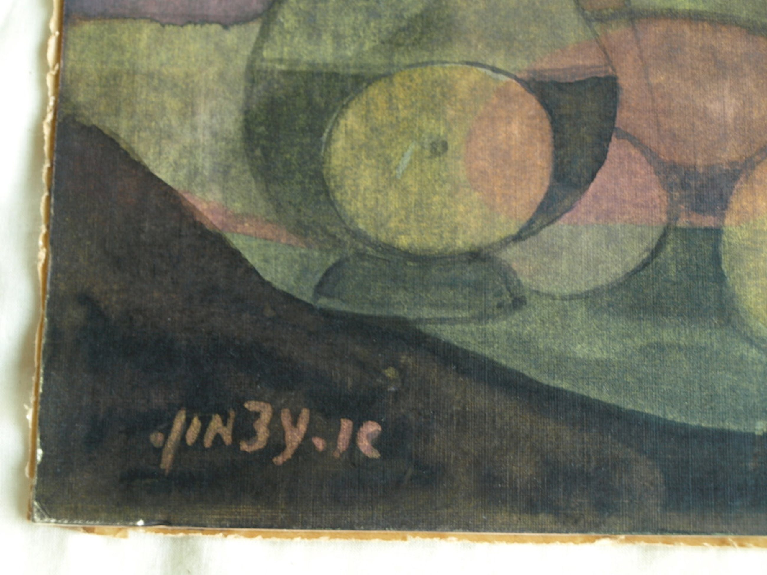 Gesigneerd linksonder. Helaas hebben wij de signatuur niet kunnen herkennen en wij hebben ook geen verdere informatie over de kunstenaar.