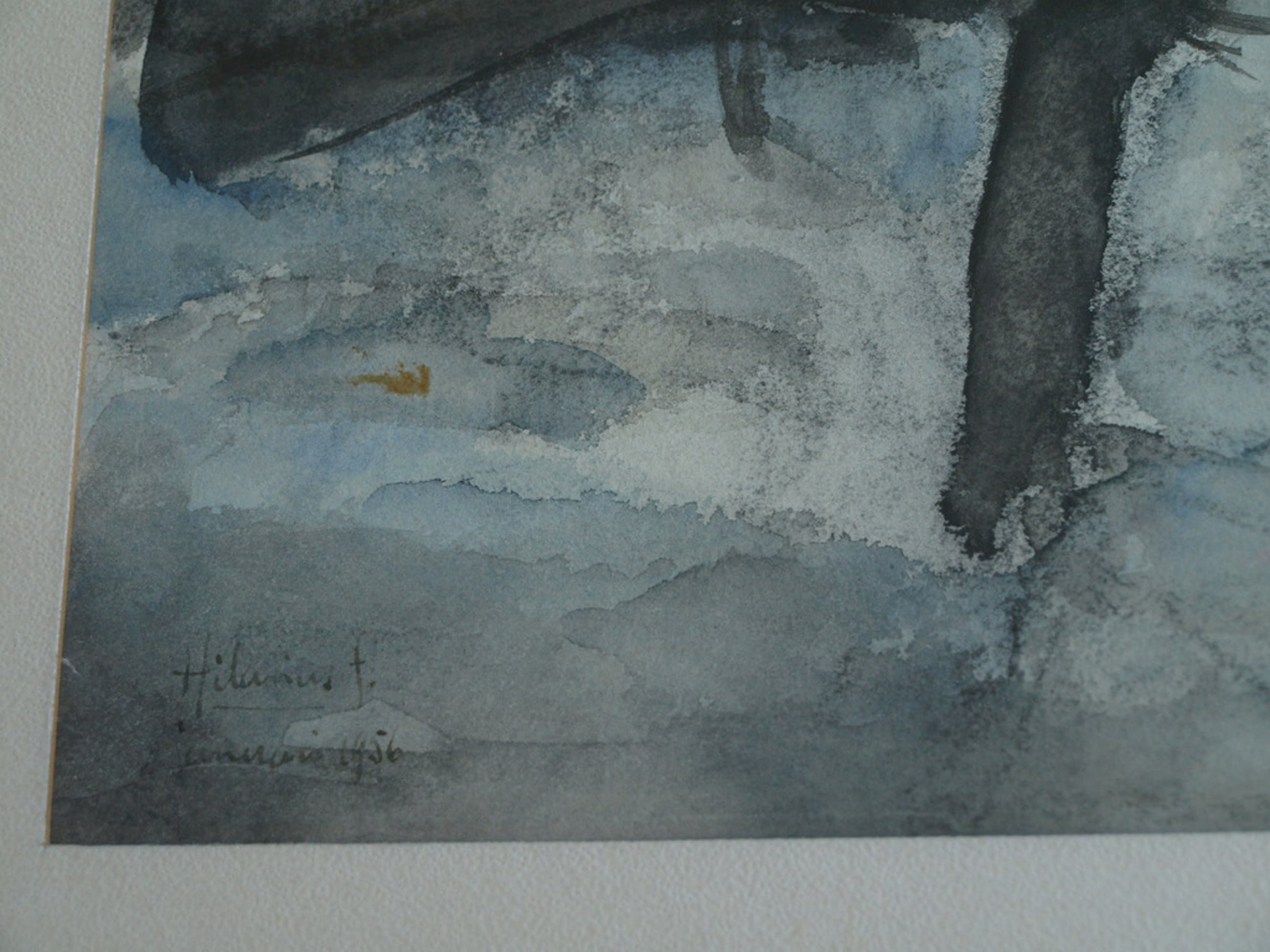 Gesigneerd en gedateerd linksonder (‘Januari 1956’), maar de signatuur is moeilijk leesbaar (Hilarius?) en wij hebben helaas geen verdere informatie over de kunstenaar.