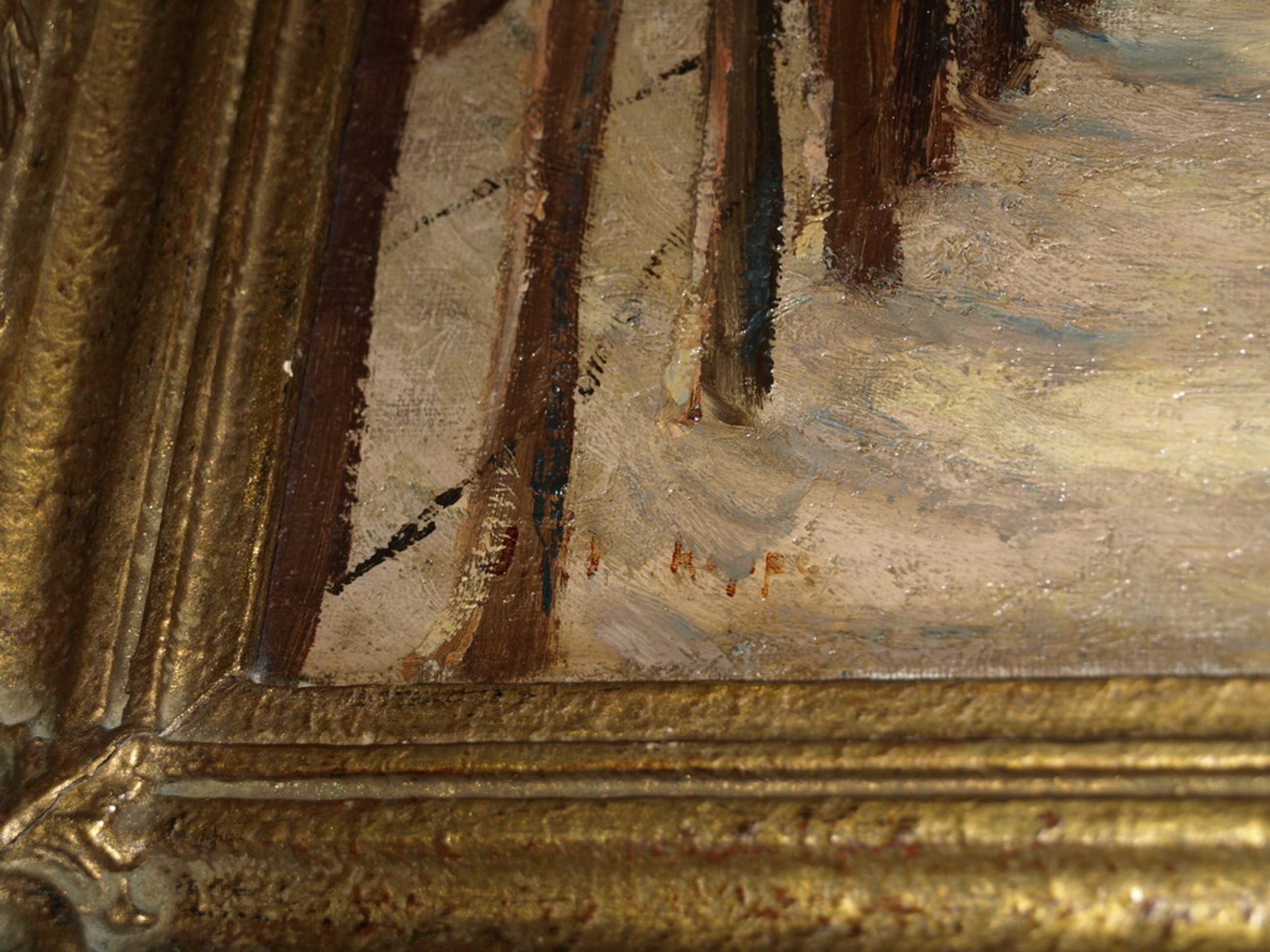 Gesigneerd in de linkerbenedenhoek. Helaas is de signatuur niet meer goed leesbaar t.g.v een restauratie en hebben wij geen verdere informatie over de kunstenaar.